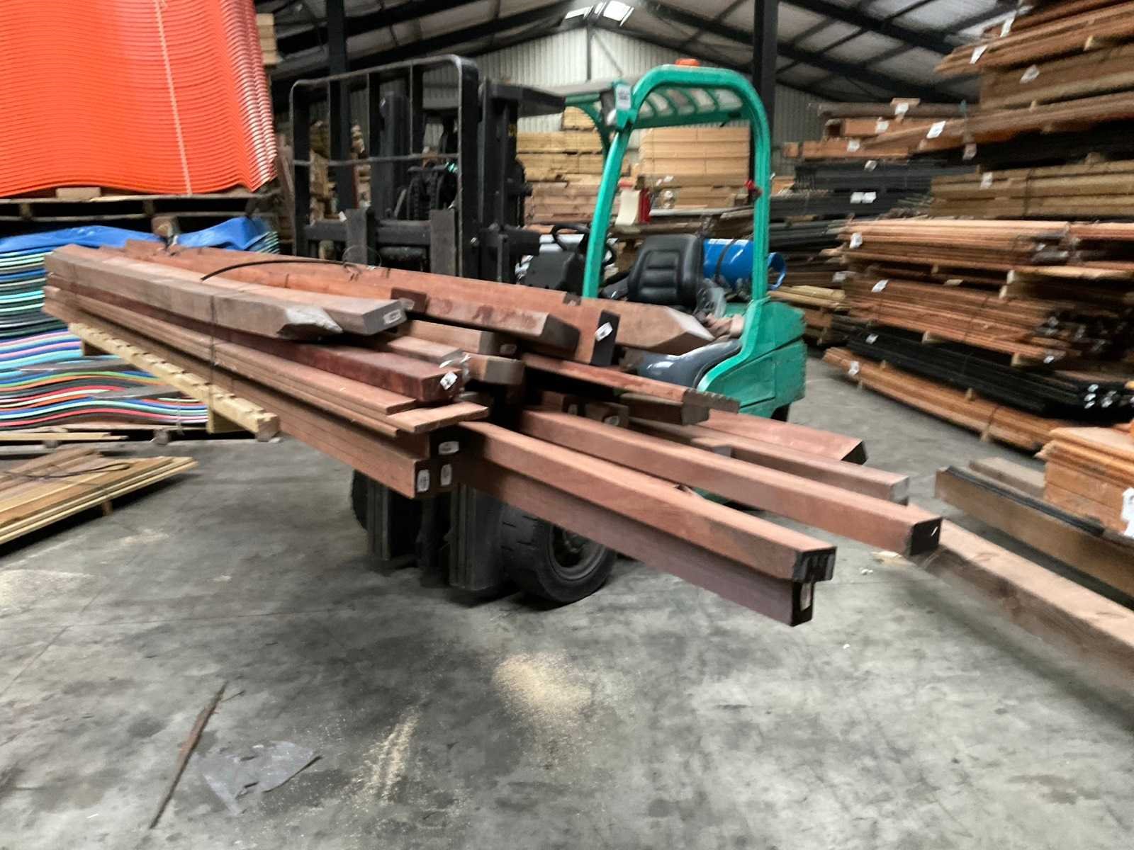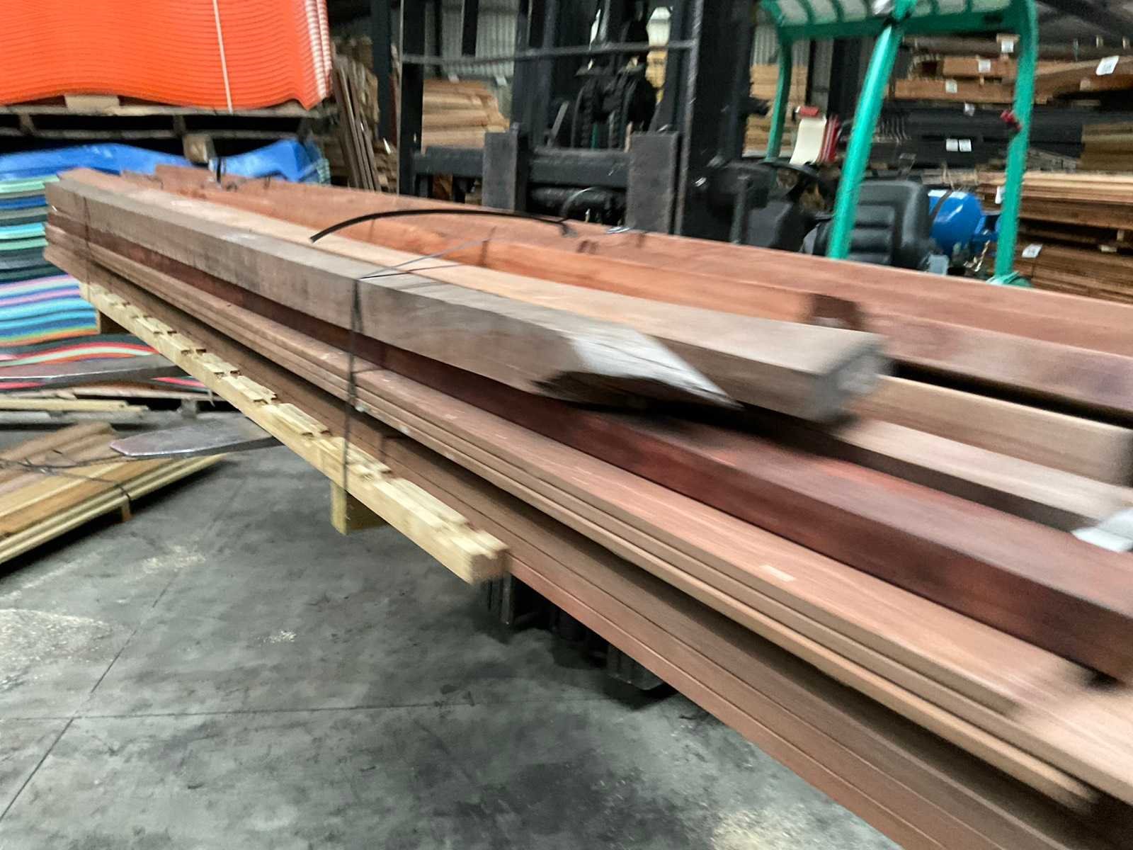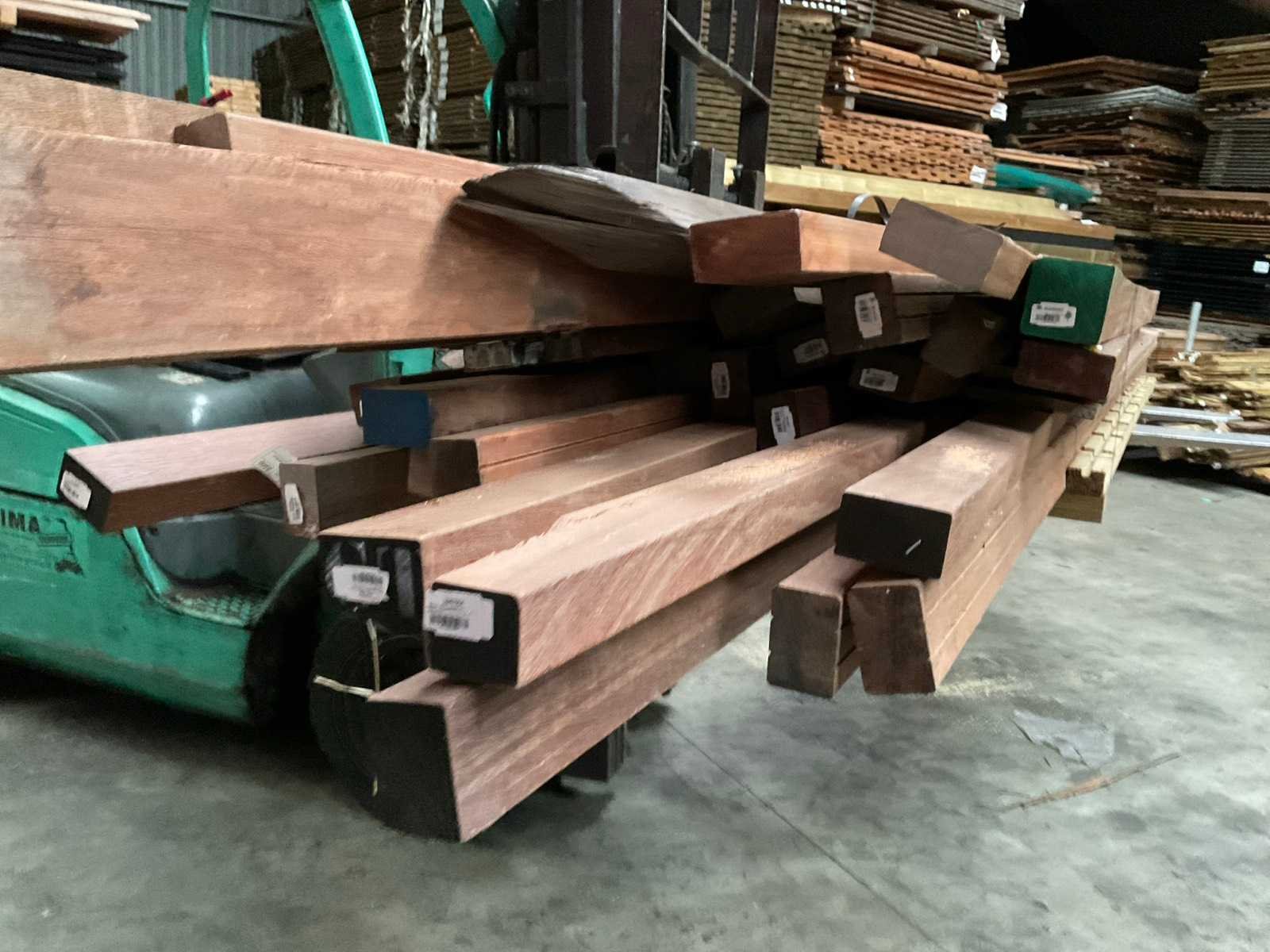 Partij Azobé hardhout met diverse beschadigingen en verkleuringen. Verschillende modellen en verschillende kopmaten aanwezig. Zie foto’s voor alle details en specificaties. Houtsoort: Azobé hardhout Lengte: 500cm Gewicht: 900kg