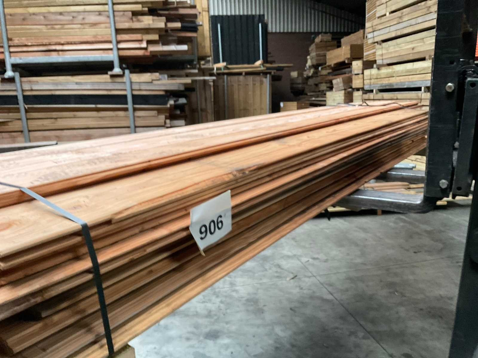 Douglas blokhutprofielen 300–400×18,5×2,8 cm Partij Douglas blokhutprofielen met lichte beschadigingen en verkleuringen (diverse modellen). Inhoud partij: 12 stuks van 400 cm 23 stuks van 300 cm Ideaal voor schutting-, gevel- of tuinhuisprojecten waar cosmetische imperfecties geen probleem zijn. Zie foto's voor details. Houtsoort: Douglas Lengte: 300-400cm Breedte: 185mm Hoogte: 28mm Kopmaat: 28x185 Gewicht: 450kg