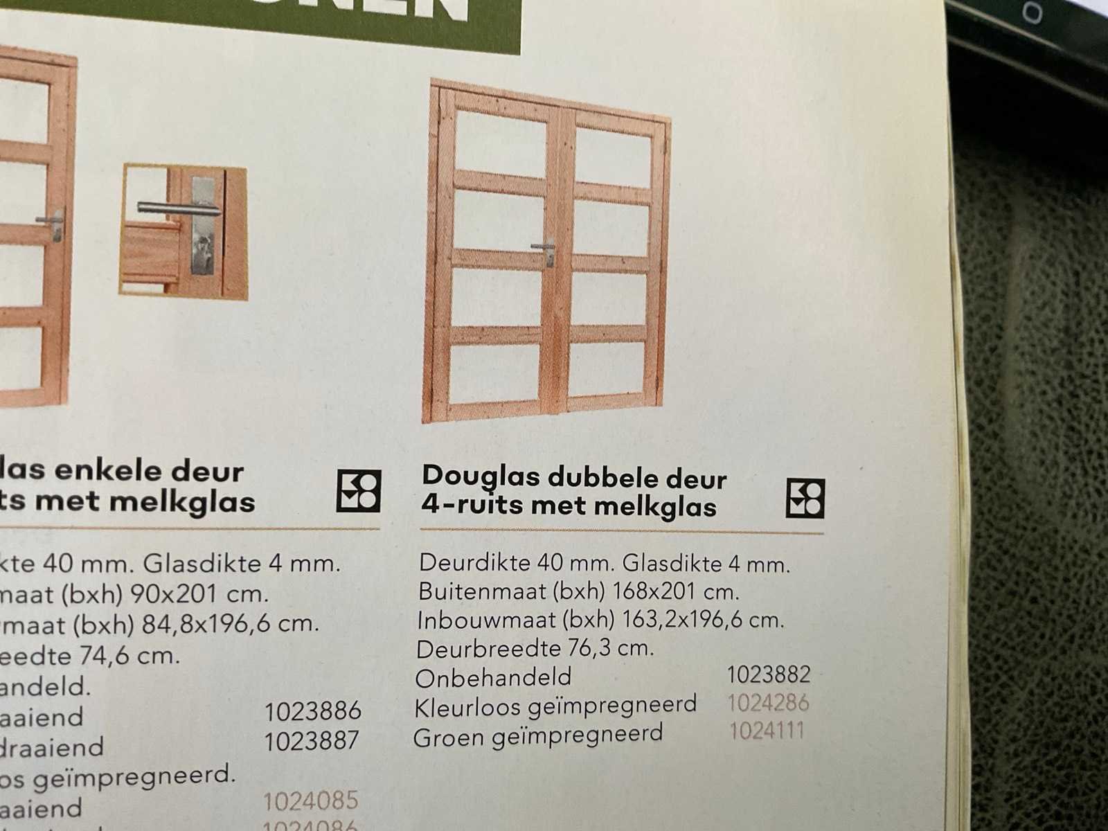 Dubbele deur in kozijn 202x169 cm