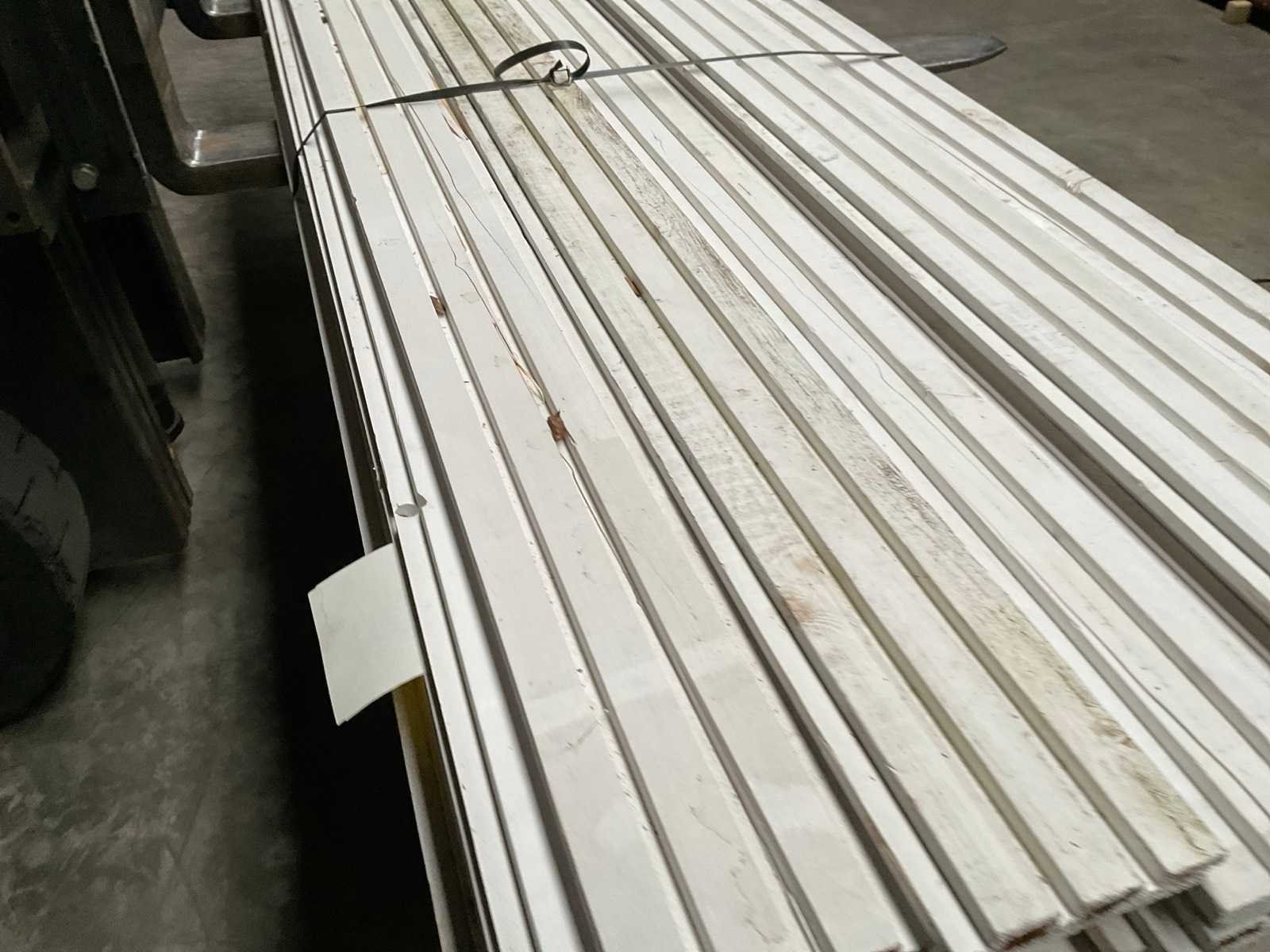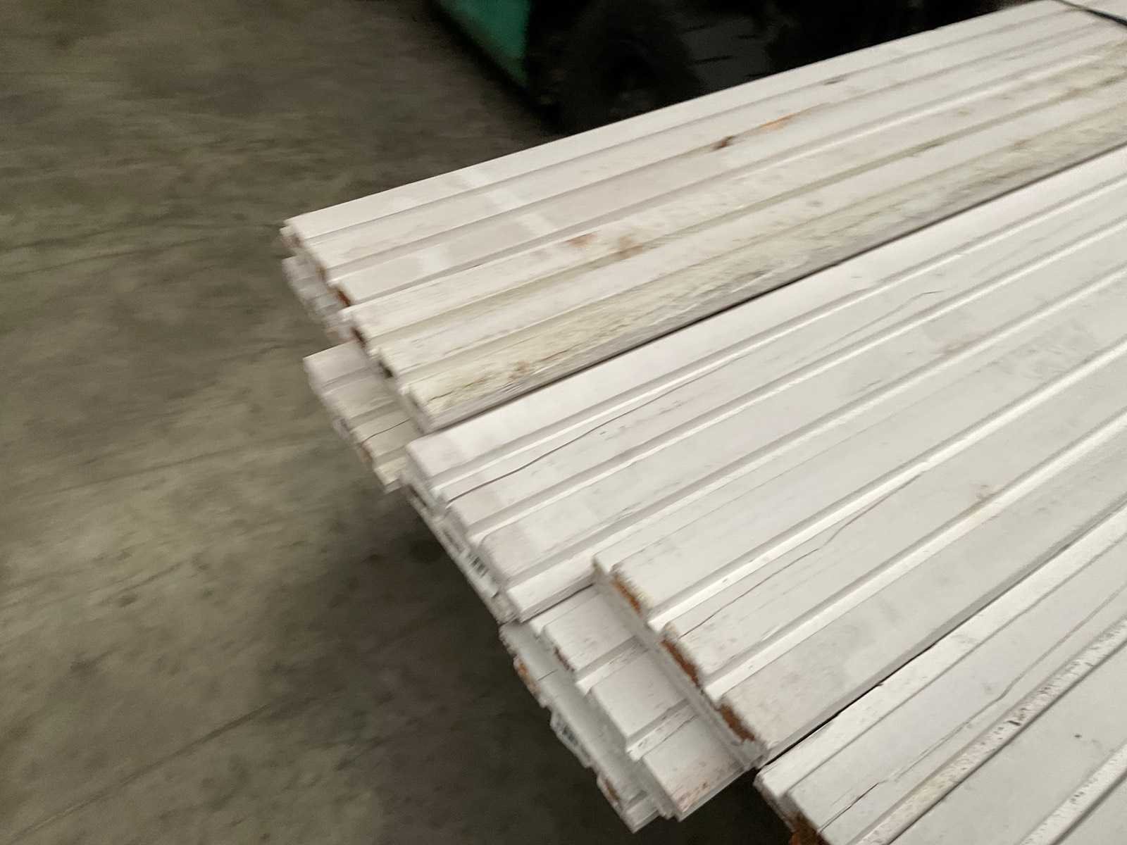 Douglas dubbel rhombusprofiel wit 300x14,5x2,1 cm. Kleine beschadigingen. Houtsoort: Douglas Lengte: 300cm Kopmaat: 21x145 Kleur: Wit gespoten Gewicht: 300kg