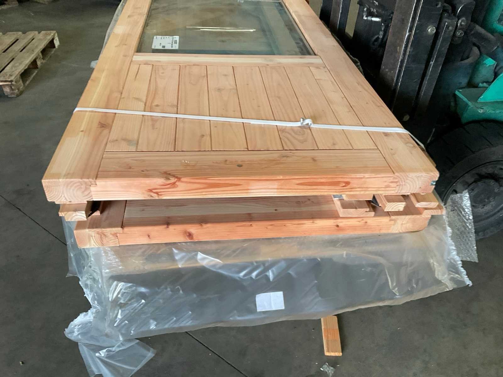Hillhout deur in kozijn 186x202 cm, inclusief hang en sluitwerk. Zie de foto's voor meer details. Merk: Hillhout Gewicht: 50kg Buitendeur: true Stomp: true Afmeting h: 2020mm Afmeting b: 186mm Hout: true Dikte: 63mm