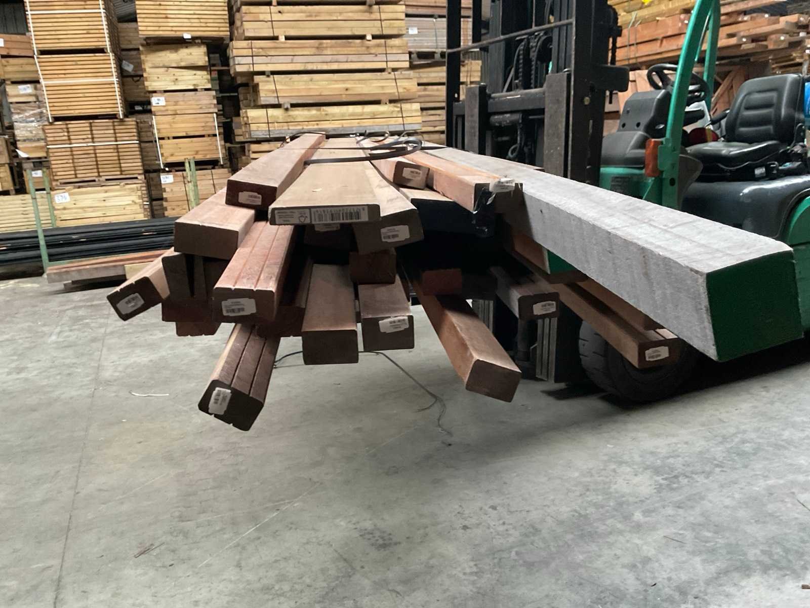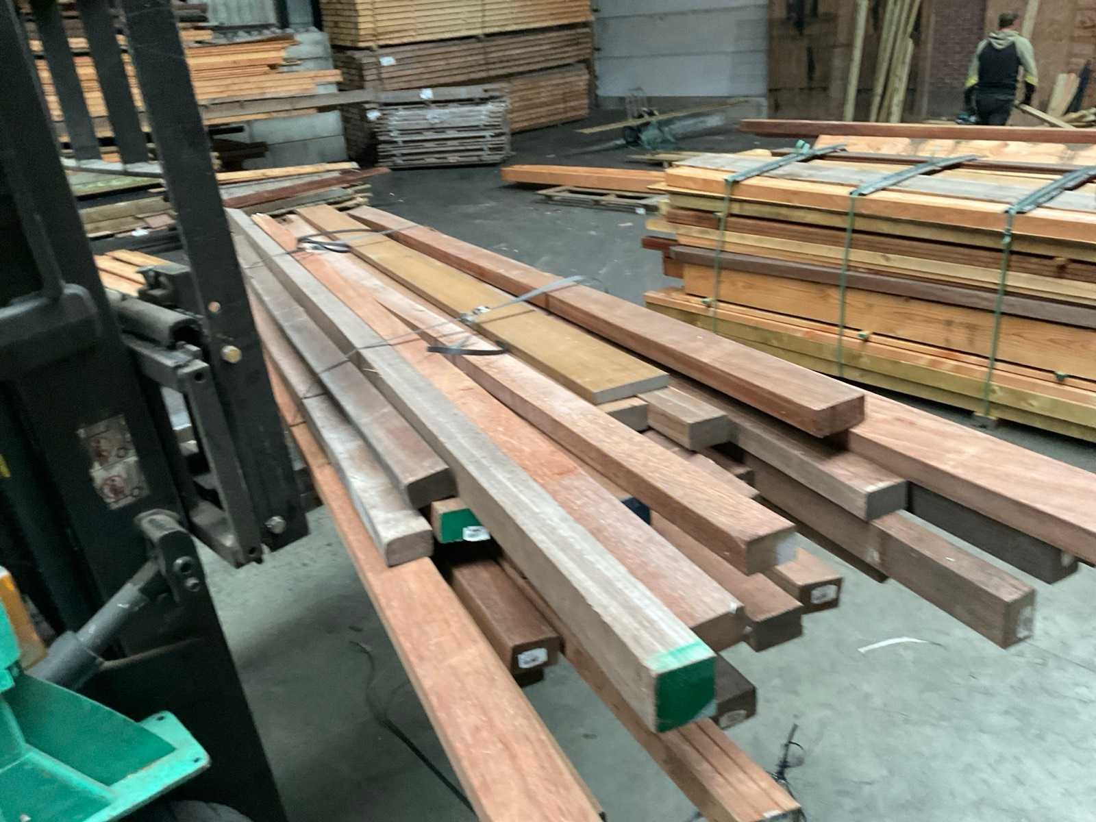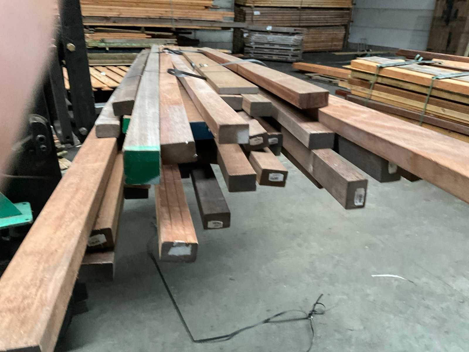Diverse Asobe balken (35x), zie de foto's voor details. Houtsoort: Asobe Lengte: 300cm Kopmaat: DIV Gewicht: 700kg