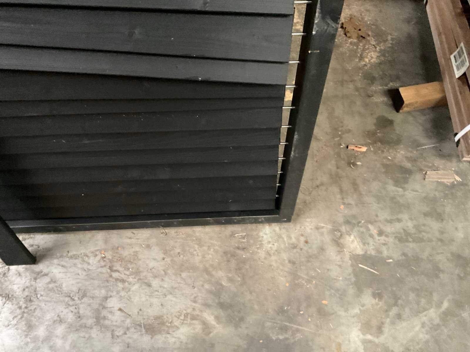 Douglas zwart gespoten Shutterscherm 120x225 cm (2x). Merk: Hillhout Model: Verstelbare schutter lamelle Gewicht: 100kg Breedte: 120cm Hoogte: 225cm Materiaal: Douglas zwart gespoten