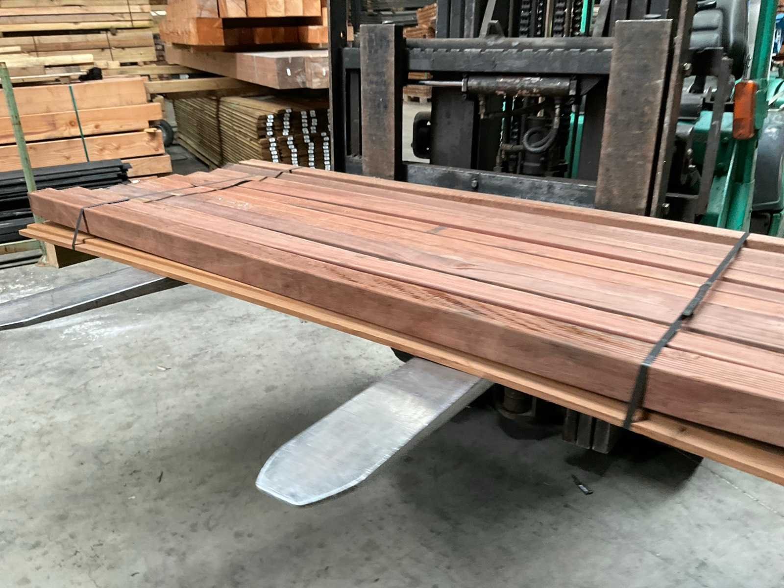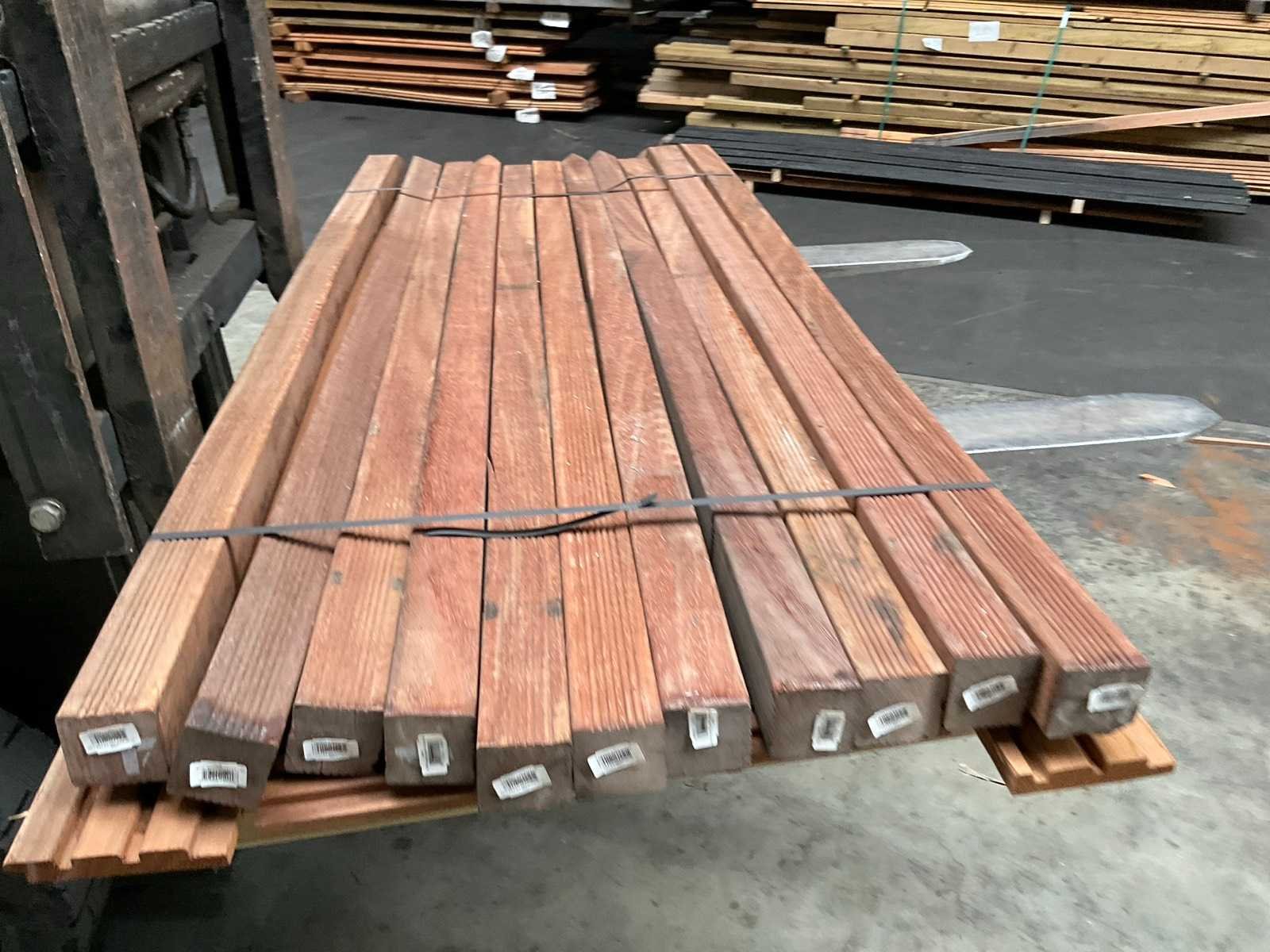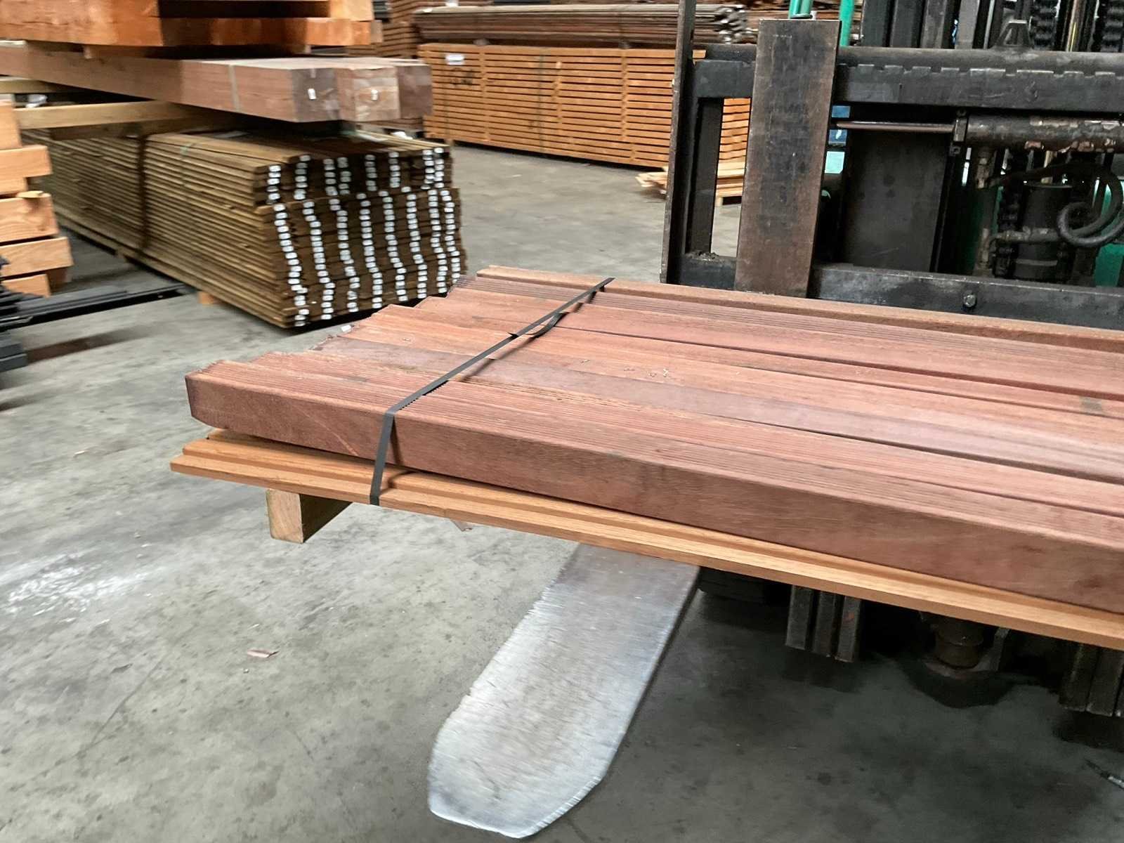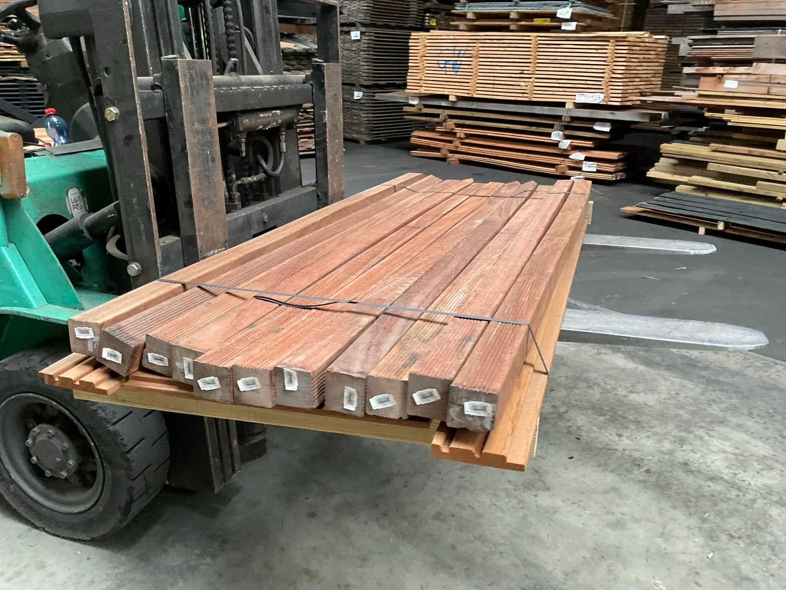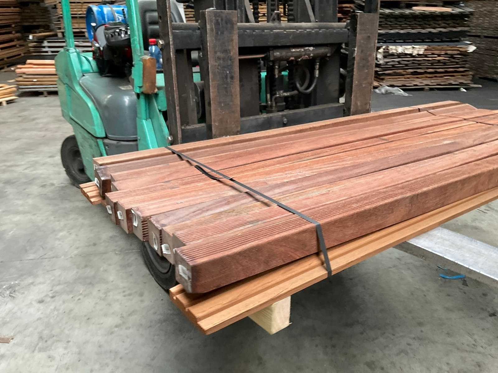Let op: Retour goed, zie foto's voor details. Houtsoort: Azobé Materiaal: Hardhout Kopmaat: 65x65 Gewicht: 125kg Totale afmeting Breedte: 2000mm