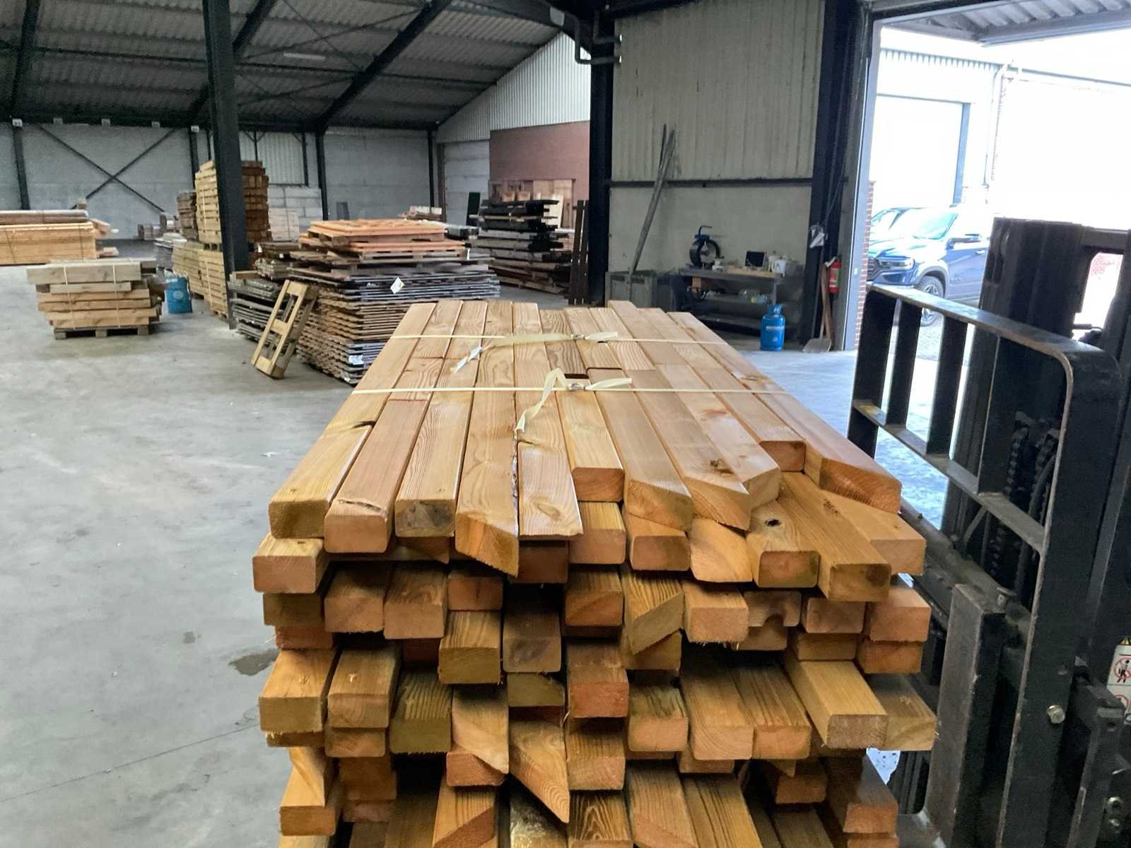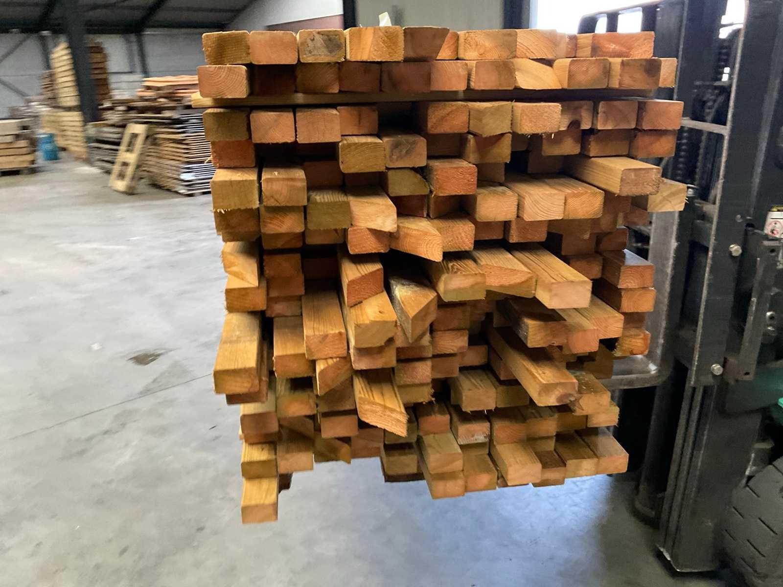 Partij grenen geïmpregneerde balken 80-180x6,5x4,5 cm. Bestaat uit diverse lengtes 80-180cm, in totaal ca. 250 lopende meter. Zie foto's voor details. Houtsoort: Grenenhout geimperneerd Kopmaat: 45x65 Gewicht: 400kg