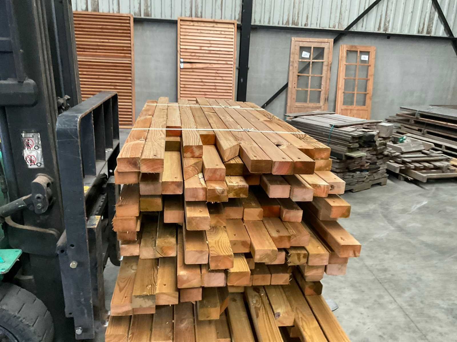 Partij grenen geïmpregneerde balken 80-180x6,5x4,5 cm. Bestaat uit diverse lengtes 80-180cm, in totaal ca. 250 lopende meter. Zie foto's voor details. Houtsoort: Grenenhout geimperneerd Kopmaat: 45x65 Gewicht: 400kg