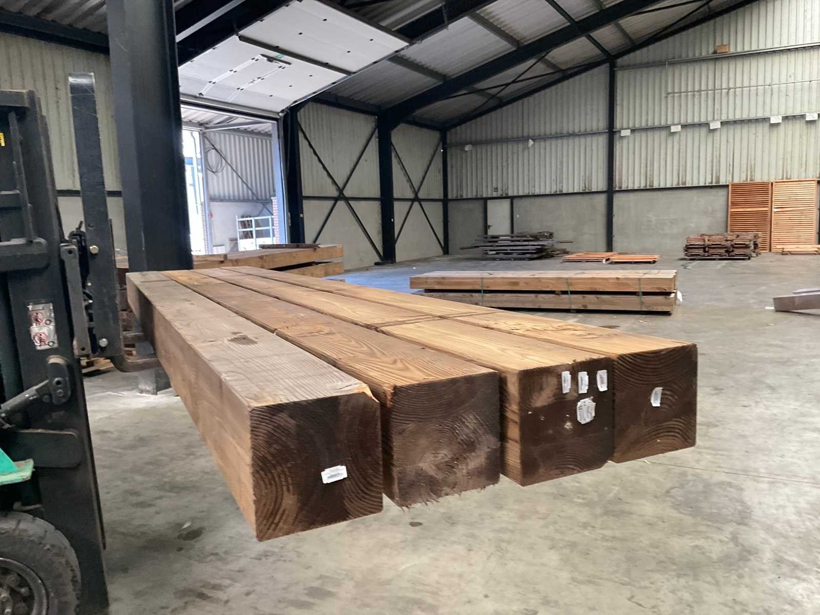 Douglas tuinpaal 400x20x20 cm, zie foto's voor details. Houtsoort: Douglas geïmpregneerd Materiaal: Tripelverlijmt Breedte: 200mm Hoogte: 200mm Kopmaat: 200x200 Gewicht: 300kg Totale afmeting Breedte: 400mm