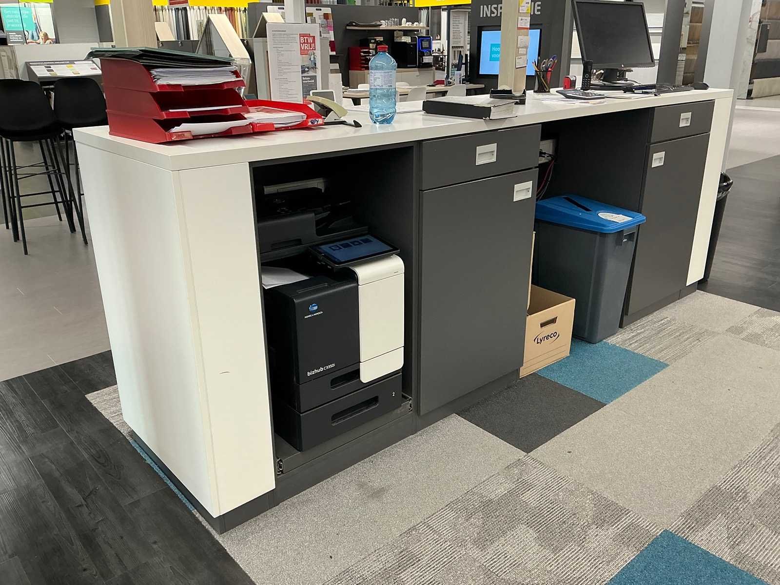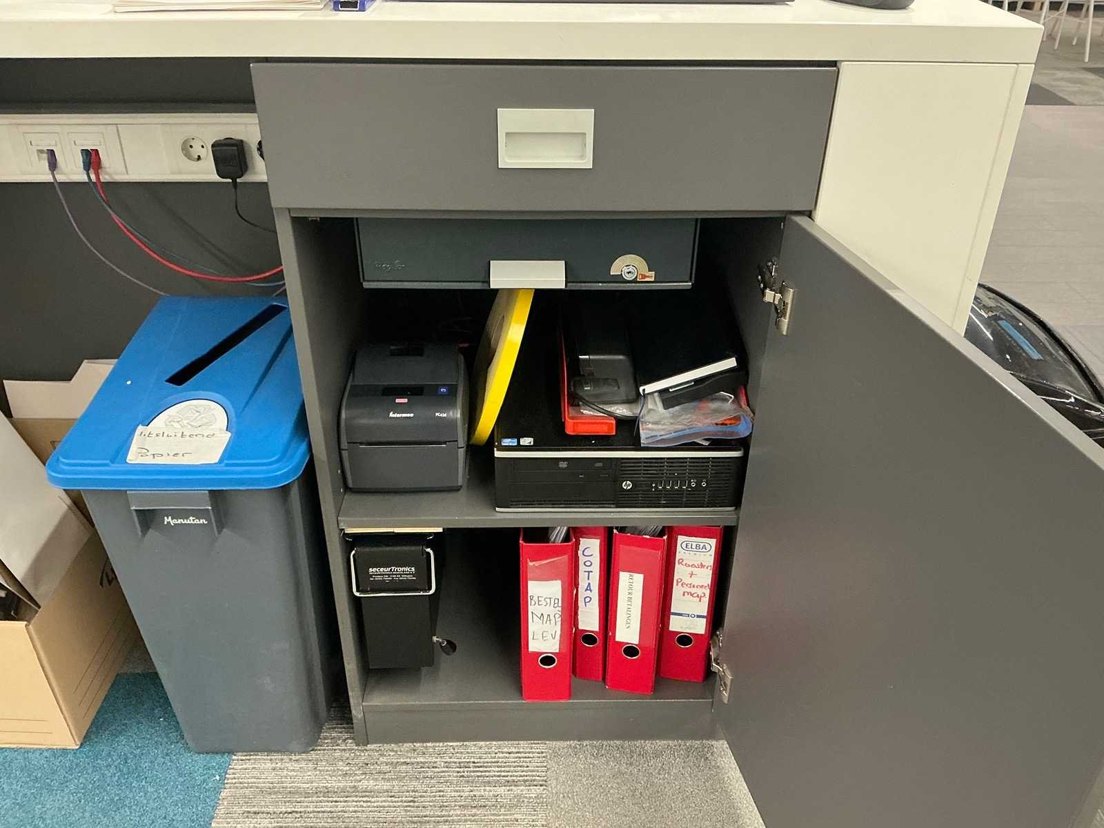 Dit kavel dient door de koper professioneel gedemonteerd te worden. Inclusief inhoud. Eventuele administratie en ICT horen niet bij het kavel. Exclusief printer. Totale afmeting L: 3000mm Totale afmeting Breedte: 800mm Totale afmeting Hoogte: 2800mm