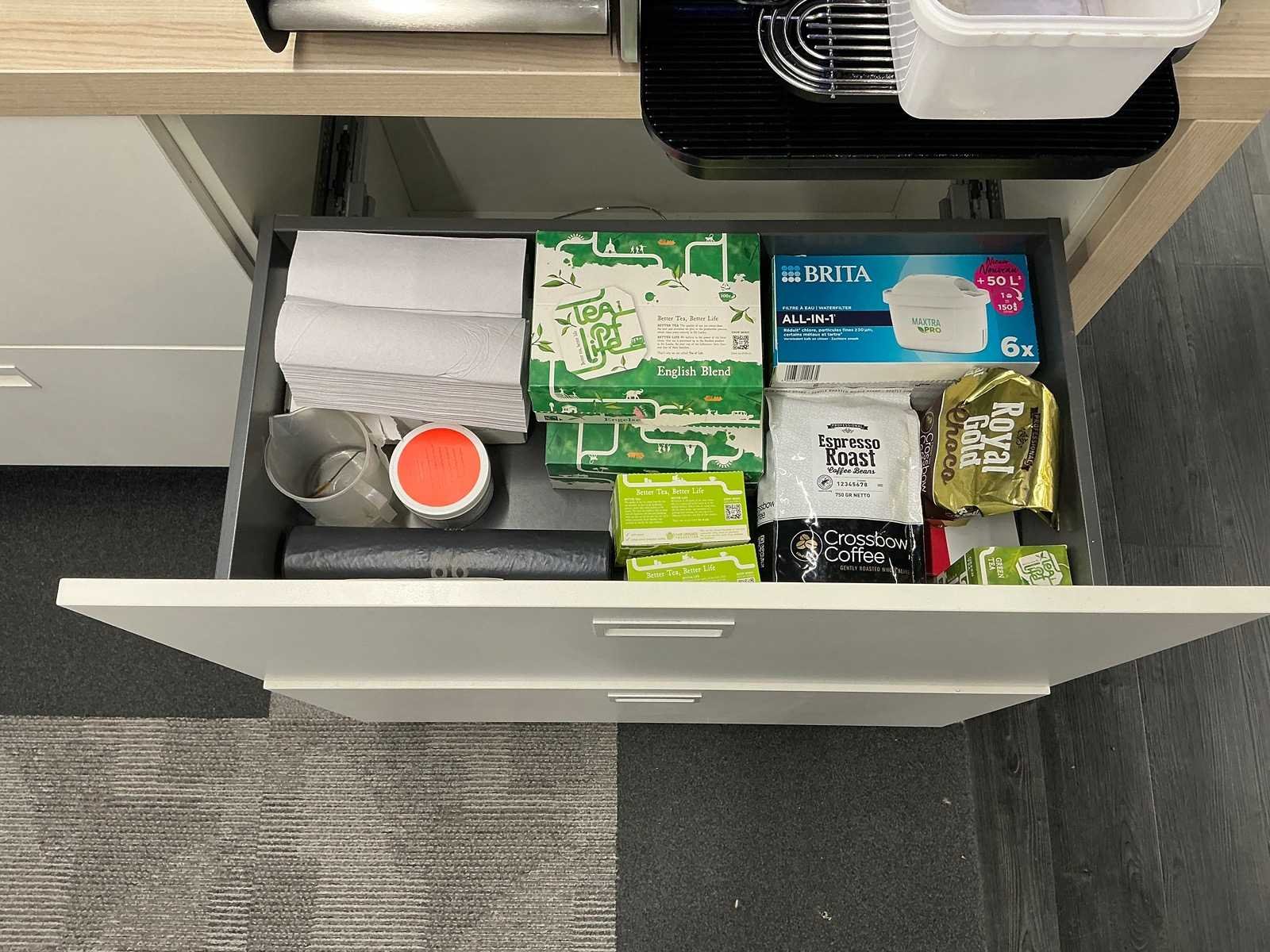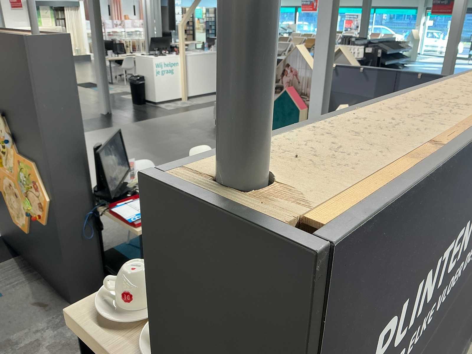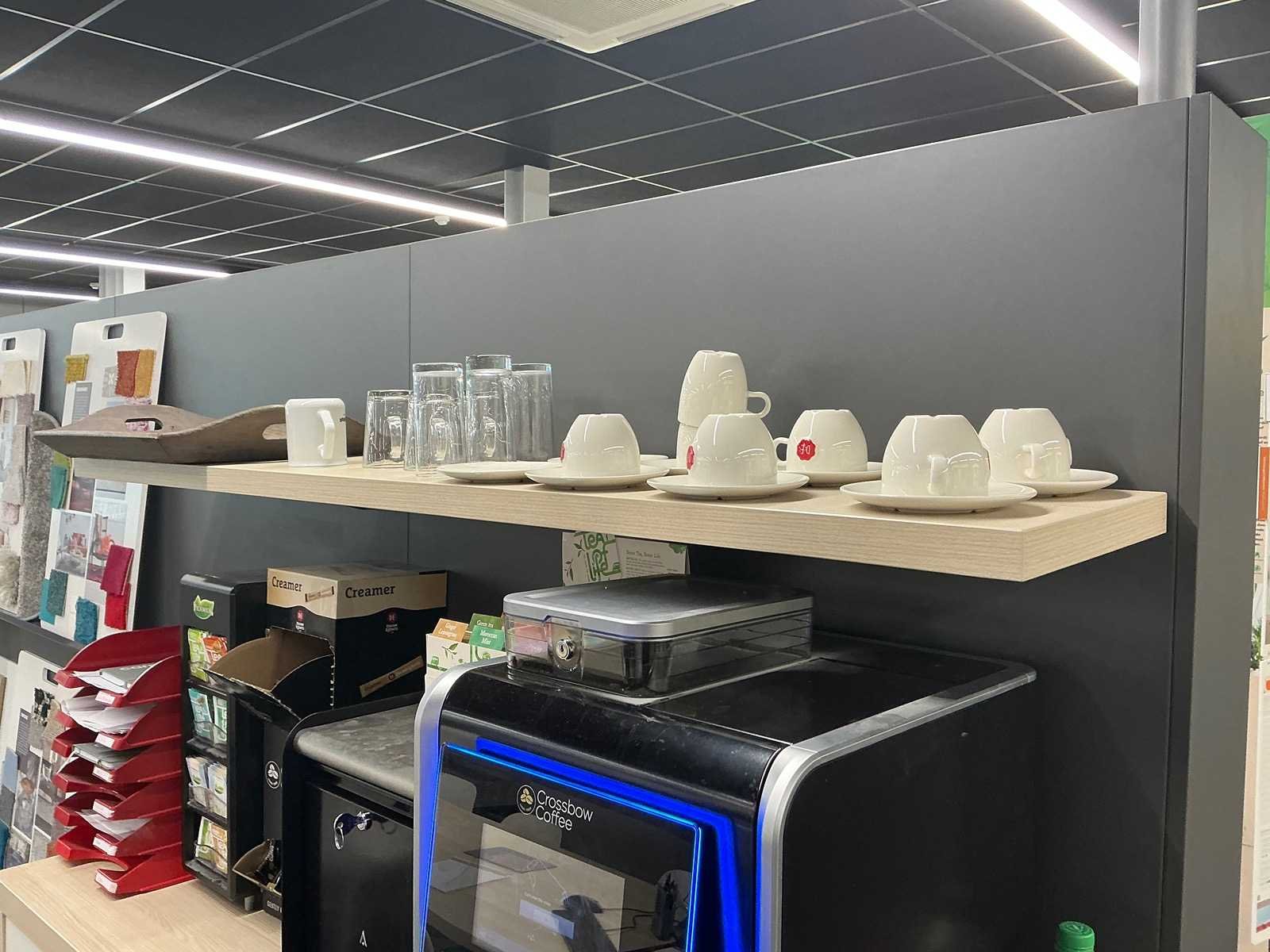 Inclusief inhoud Exclusief koffiemachine en samples. Totale afmeting L: 3500mm Totale afmeting Breedte: 600mm Totale afmeting Hoogte: 2050mm