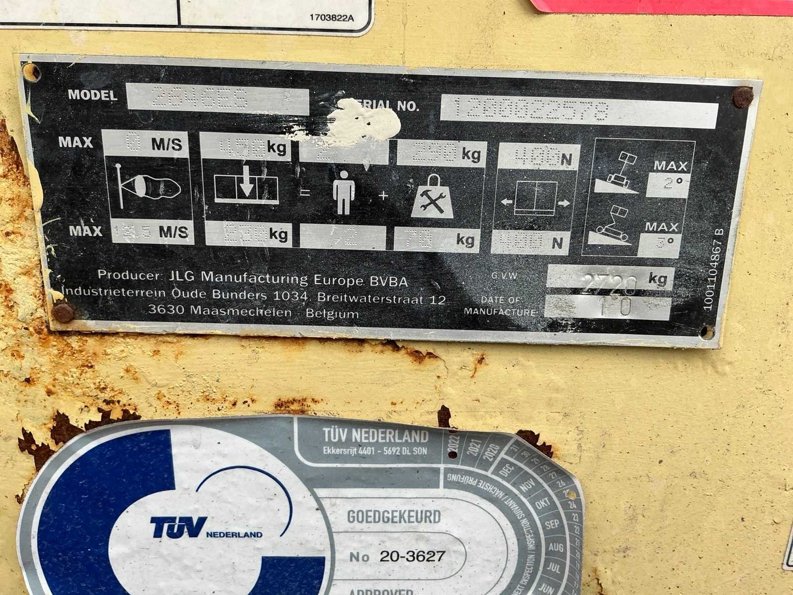 Ingebouwde lader, uitschuifbaar platform 1250mm, max hefhoogte 9900mm, max hefvermogen 230kg Merk: JLG Type: 2646 ES Bouwjaar: 2010 Serienummer: 1200022578 Elektrisch: true Schaarhoogwerker: true Werkhoogte: 9900mm Horizontale rijkwijdte: 1250mm Plateau afm. l: 2500mm Plateau afm. b: 1100mm Platform capaciteit: 230kg Afgelezen urenstand: 430 Eigen gewicht: 2720kg Totale afmeting L: 2500mm Totale afmeting Breedte: 1100mm Totale afmeting Hoogte: 2400mm