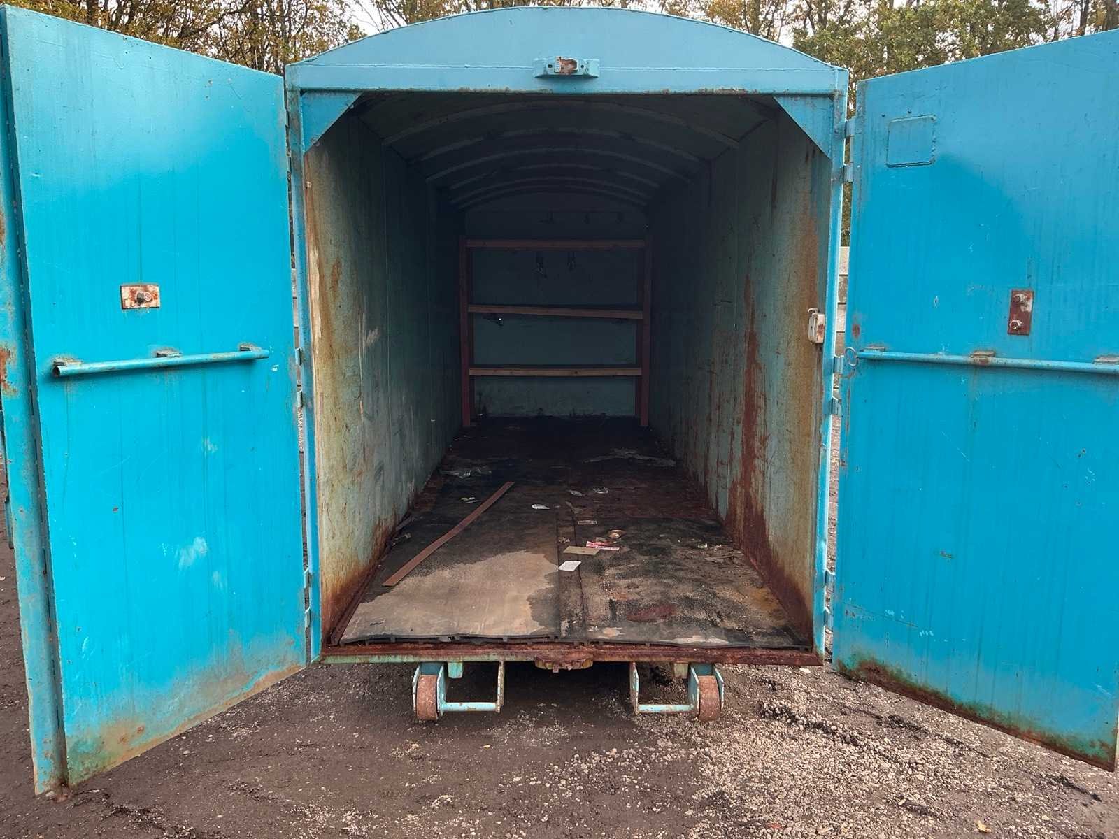 Afstand tussen slede 910mm, binnenwerks 5900x1740x1970mm, afsluitbaar maar geen sleutel, Merk: Gesloten container Opslagcontainer: true Totale afmeting L: 6350mm Totale afmeting Breedte: 1830mm Totale afmeting Hoogte: 2350mm