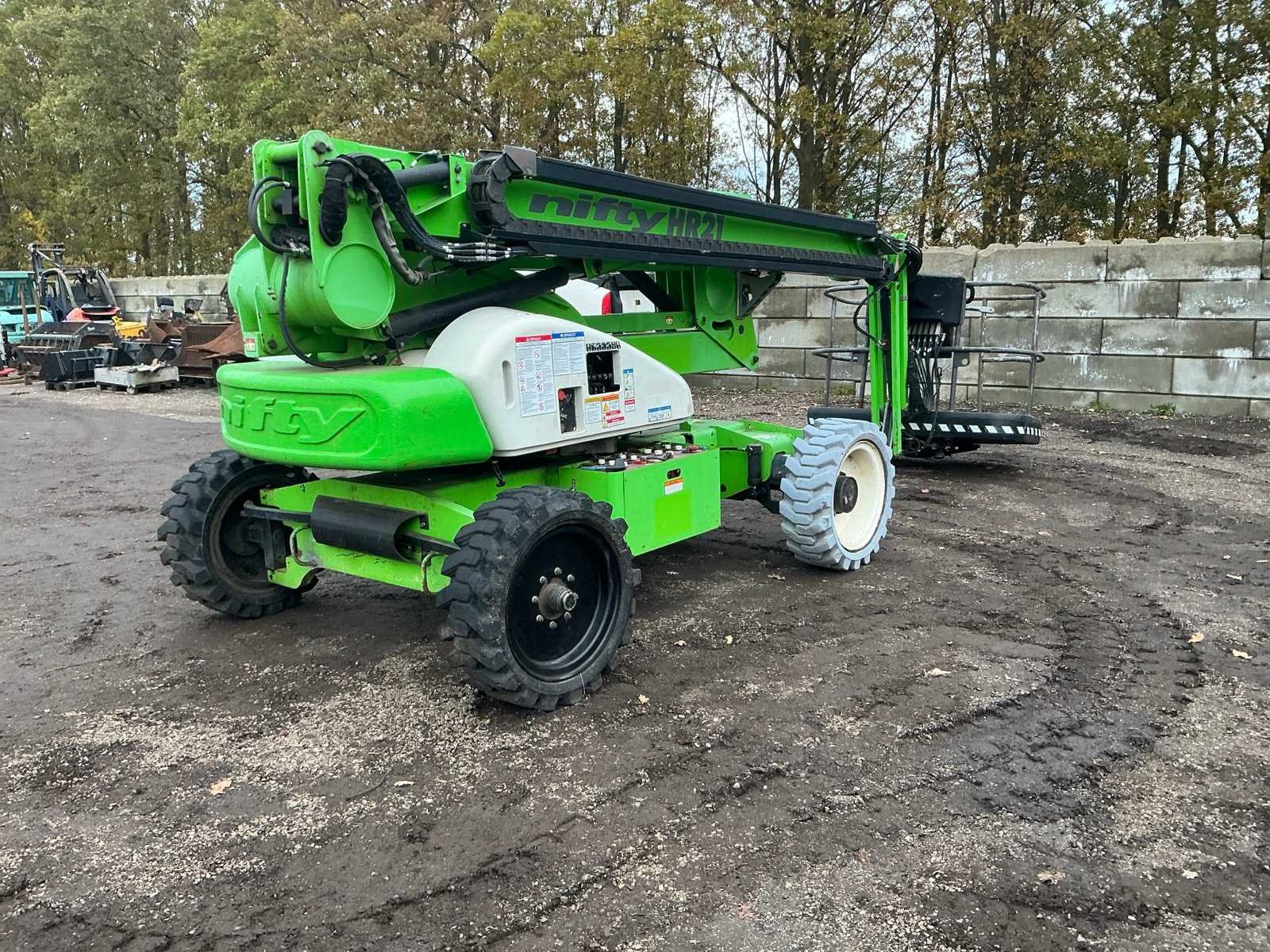 Let op; rijdt niet, zwenkt niet, alle hef functie doen het wel, as stabilisatie, roterende opbouw, roterende werkbak, 3 delige telescoop mast, max hefhoogte 20800mm, max hefvermogen 225kg Merk: Nifty Type: HR 21 hybride Bouwjaar: 2010 Serienummer: 21 19971 Elektrisch: true Knikarm hoogwerker: true Werkhoogte: 20800mm Horizontale rijkwijdte: 13000mm Plateau afm. l: 850mm Plateau afm. b: 1760mm Platform capaciteit: 225kg Accu lader: true Eigen gewicht: 6300kg Totale afmeting L: 6350mm Totale afmeting Breedte: 2270mm Totale afmeting Hoogte: 2200mm