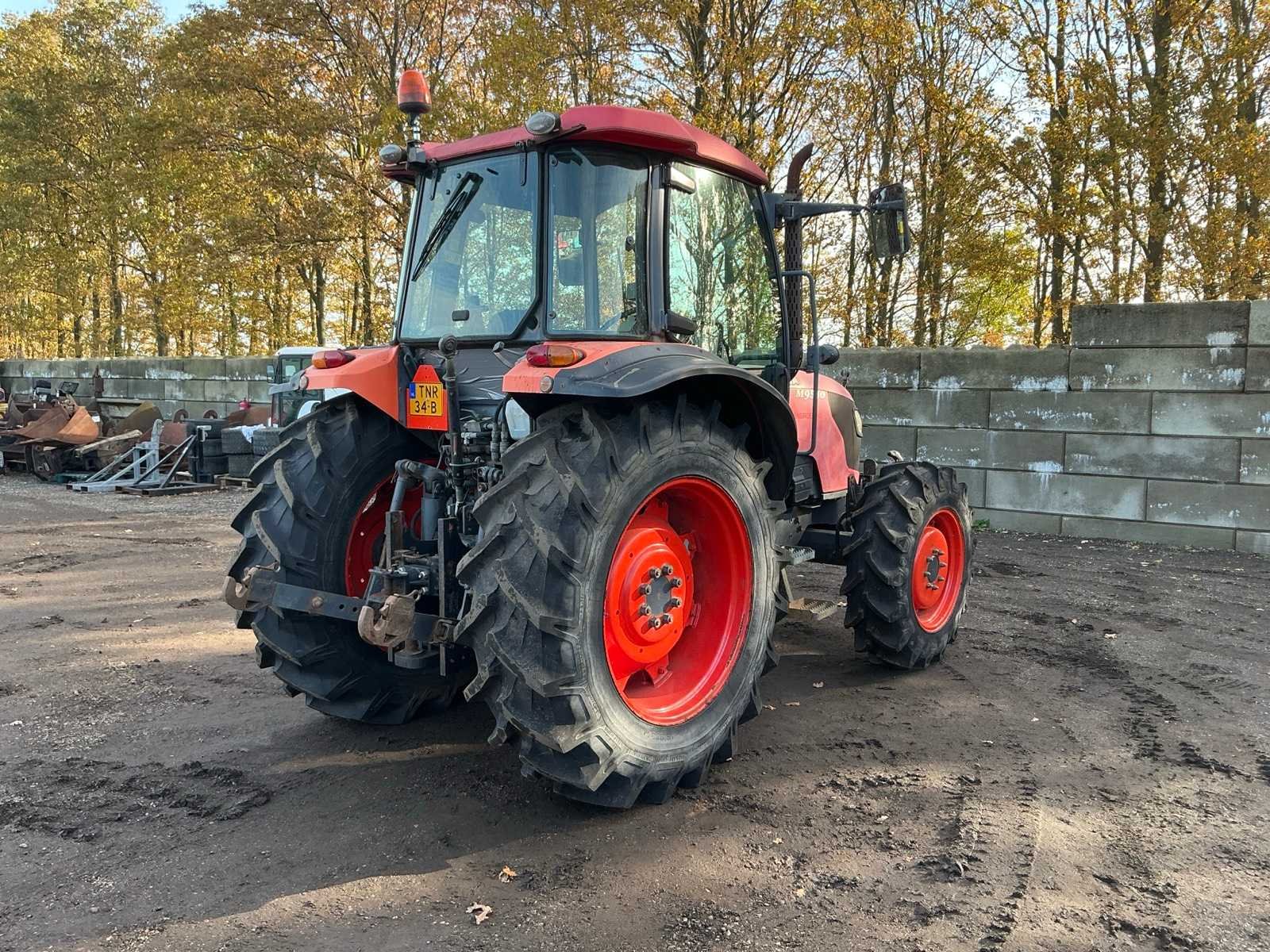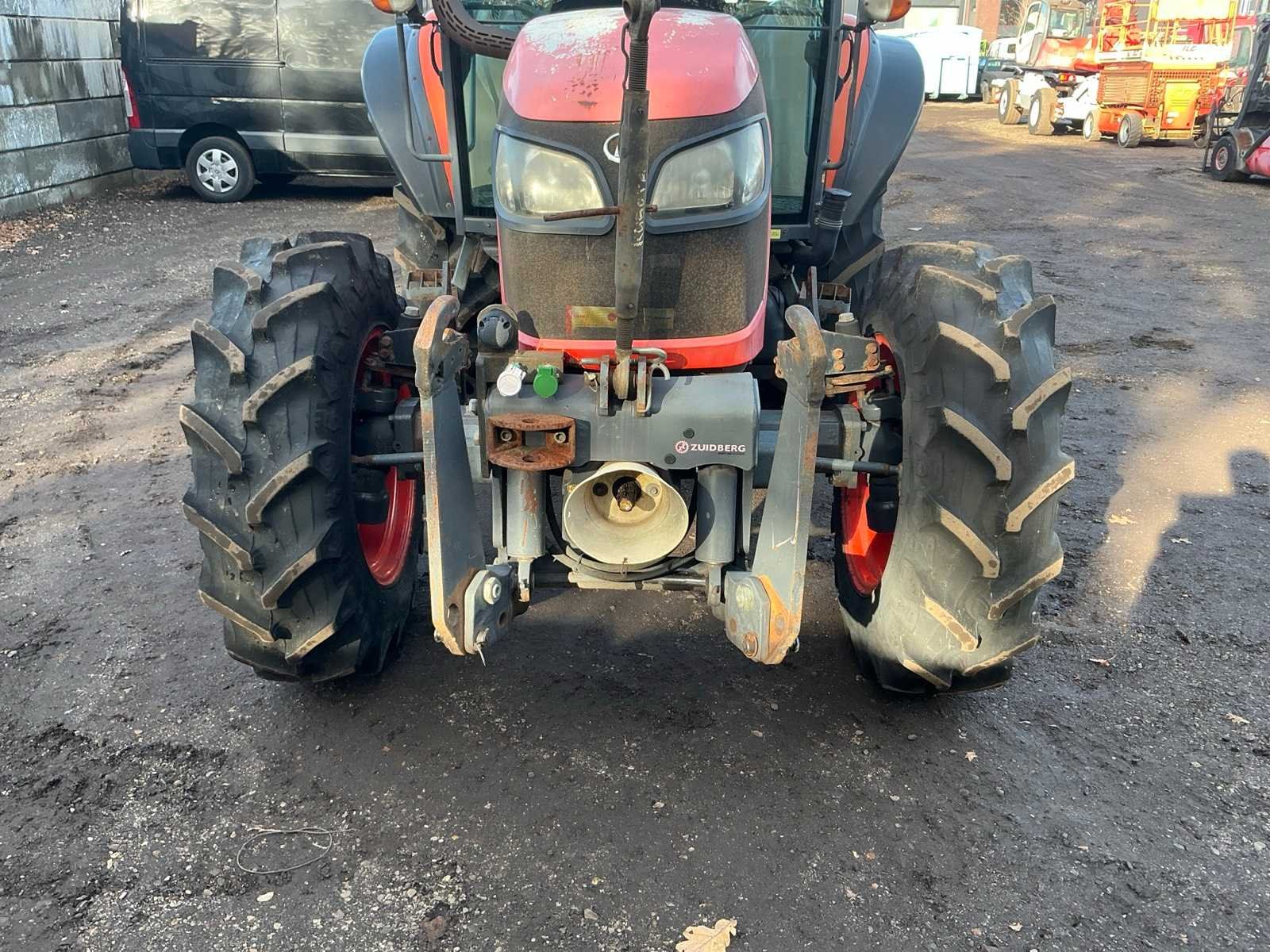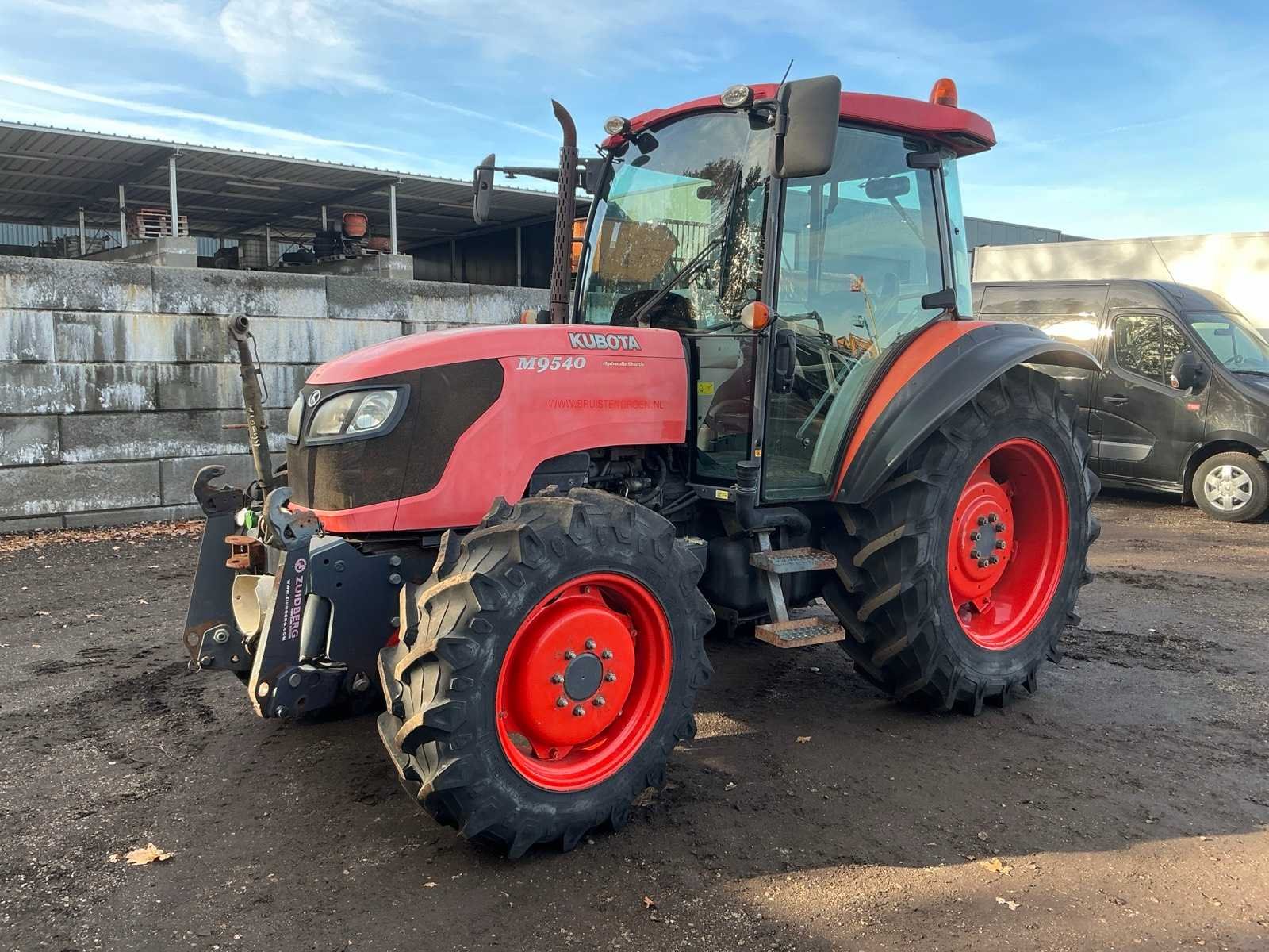 Let op; accu slecht, dient opgestart te worden, 4WD,Front hef, front aftakas, 2x EW ventiel, 7 polige stekker, stuurbekrachtiging, achter; hef, verstelbare trekhaak, 4x DW ventiel 1x EW ventiel, vrije retour, 7 polige stekker, computer stekker, radio, verwarming, airco, Merk: Kubota Type: M9540H-C Bouwjaar: 2008 Serienummer: M9540D 81207 Kenteken: TNR-34-B Motorvermogen (kW): 62kW Afgelezen urenstand: 7173 Versnellingsbaktype: Handgeschakeld Aftakastoerental: 540rpm Aantal hydraulische ventielen voor: 2 Aantal hydraulische ventielen achter: 10 Bandenmaat voor: 12.4 R24 Bandenmaat achter: 16.9 R34 Fronthefinrichting: true Frontaftakas: true Cabine: true Luchtgeveerde stoel: true Eigen gewicht: 6800kg Totale afmeting L: 4200mm Totale afmeting Breedte: 2100mm Totale afmeting Hoogte: 2850mm Datum eerste toelating: 2008-06-30 Nationaliteit documenten: Nederland