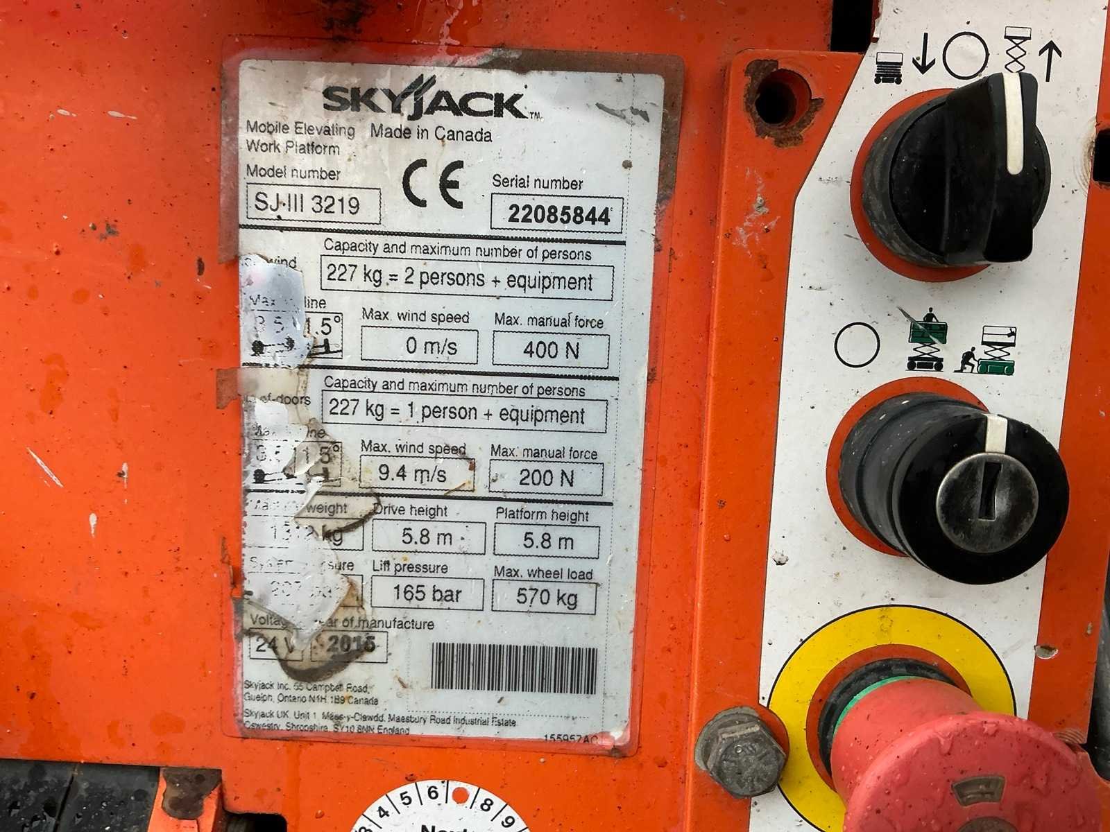 Nieuwe afstandsbediening, Ingebouwde lader, Max hefhoogte 5800mm, max hefvermogen 227kg, uitschuifbaar platform 900mm, 230v stekker, massa schakelaar Merk: Skyjack Type: SJ 111 3219 Bouwjaar: 2015 Serienummer: 22085844 Elektrisch: true Schaarhoogwerker: true Werkhoogte: 5800mm Plateau afm. l: 1600mm Plateau afm. b: 700mm Platform capaciteit: 227kg Afgelezen urenstand: 239 Eigen gewicht: 1170kg Totale afmeting L: 1800mm Totale afmeting Breedte: 800mm Totale afmeting Hoogte: 2150mm