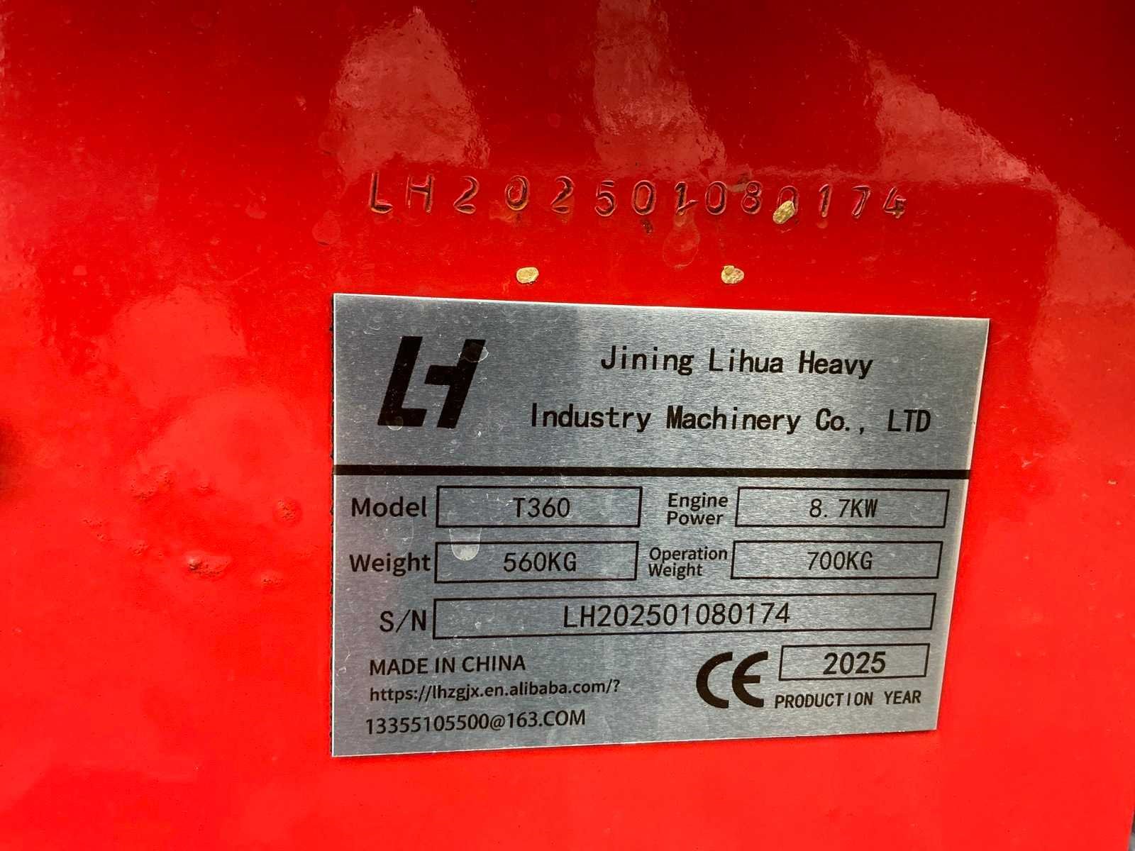 Dichte bak 1010mm, mechanische wissel, 3e functie, olie koeler, opklapbare meerijdt trede, led werkverlichting, Merk: Lihue Type: T360 Bouwjaar: 2025 Serienummer: LH202501080174 Motorvermogen (kW): 8.7kW Aantal cilinders: 1 Brandstof: Benzine Bedrijfsgewicht: 700kg Graafbak afm. b: 1010mm Afgelezen urenstand: 0.5 Eigen gewicht: 700kg Totale afmeting L: 2000mm Totale afmeting Breedte: 1010mm Totale afmeting Hoogte: 1300mm
