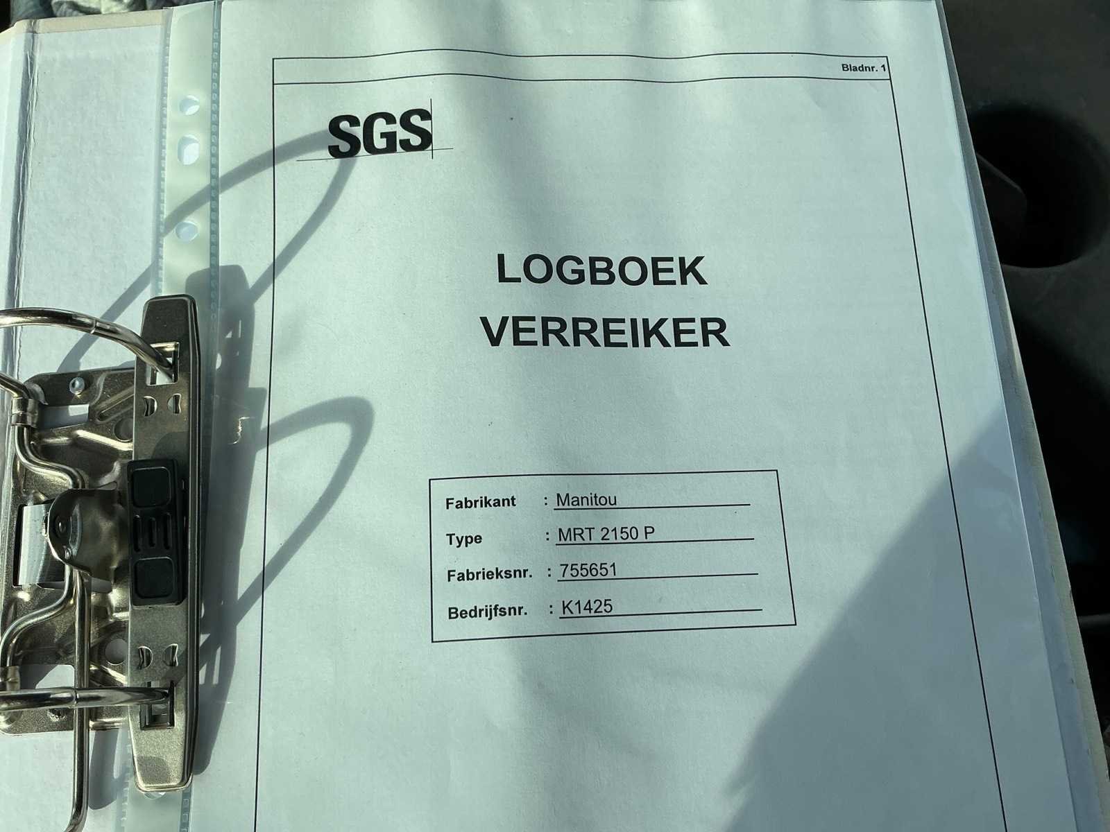 Let op; deur gaat niet van buiten open, 4x4x4, asstabilisatie, stempelpoten, mechanische wissel, extra functie voorbereid, 4 delige telescoop mast, werkverlichting, trekoog achter, 7 polige stekker, standverwarming, digitale display, 2 rijsnelheden, brandblusser, Merk: Manitou Type: MRT 2150 Privelege Bouwjaar: 2007 Serienummer: 755651 Motorvermogen (kW): 110kW Hefvermogen: 5000kg Hefhoogte: 21000mm Cabine: true Vierwielaandrijving 4x4: true Luchtbanden: true Afgelezen urenstand: 9618 Eigen gewicht: 16570kg Totale afmeting L: 6900mm Totale afmeting Breedte: 2500mm Totale afmeting Hoogte: 3100mm