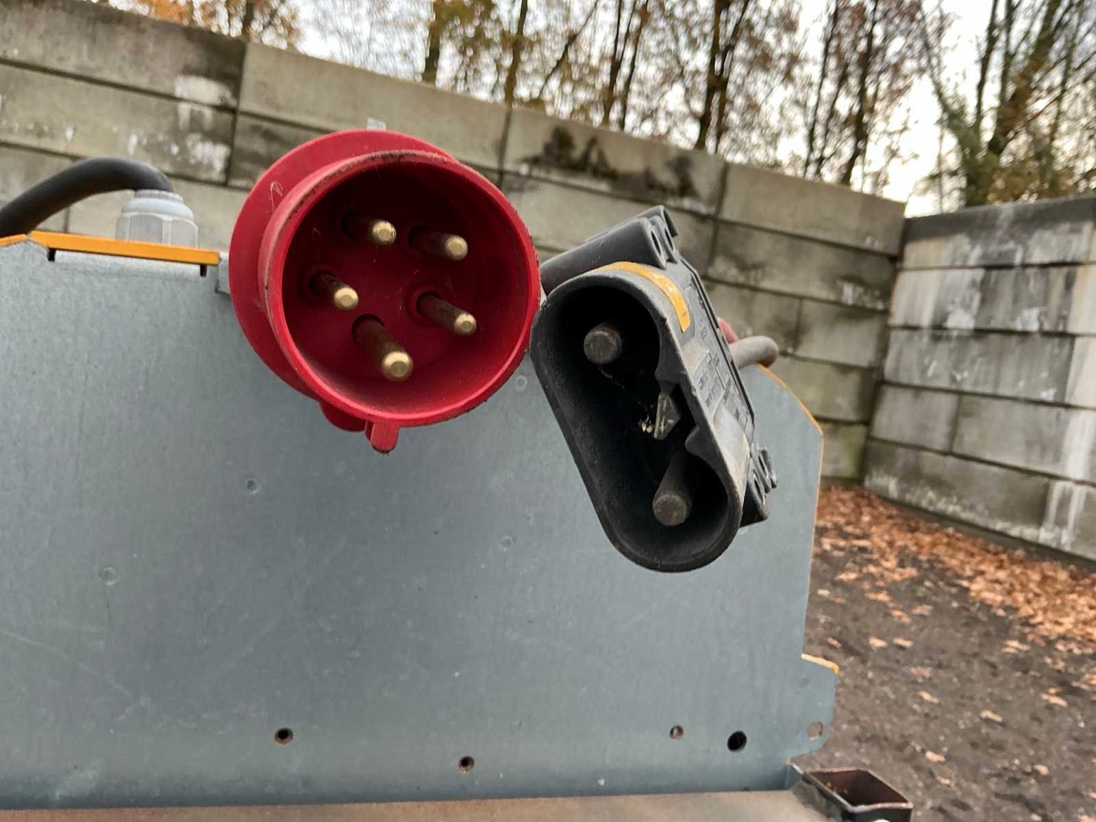 400V 5 polige stekker 32A, 80V laadstroom, gemonteerd op statief, Merk: Hawker Type: Life is Serienummer: MLZ19901 Spanning: 400V Laadstroom: 80A Aansluiting: 400V Eigen gewicht: 25kg Totale afmeting L: 450mm Totale afmeting Breedte: 500mm Totale afmeting Hoogte: 900mm