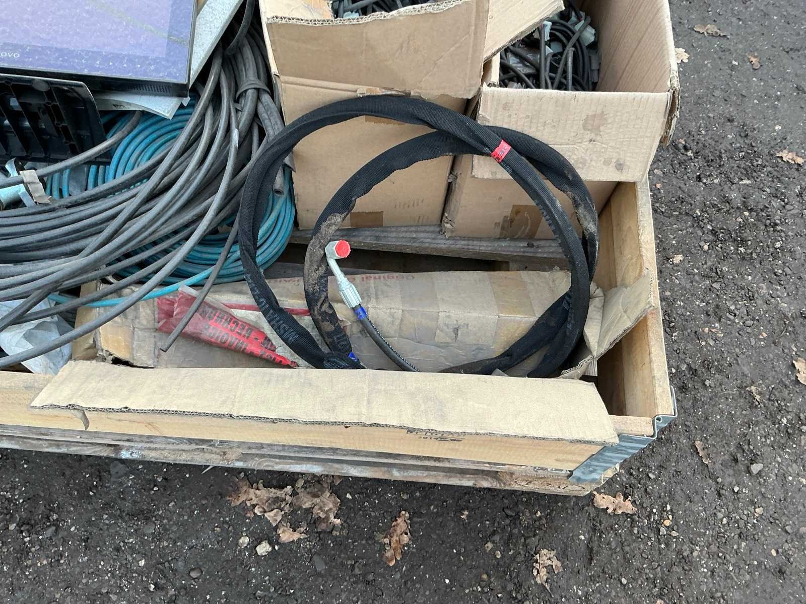 Krat met diverse leidingen en stekkers overige gereedschappen