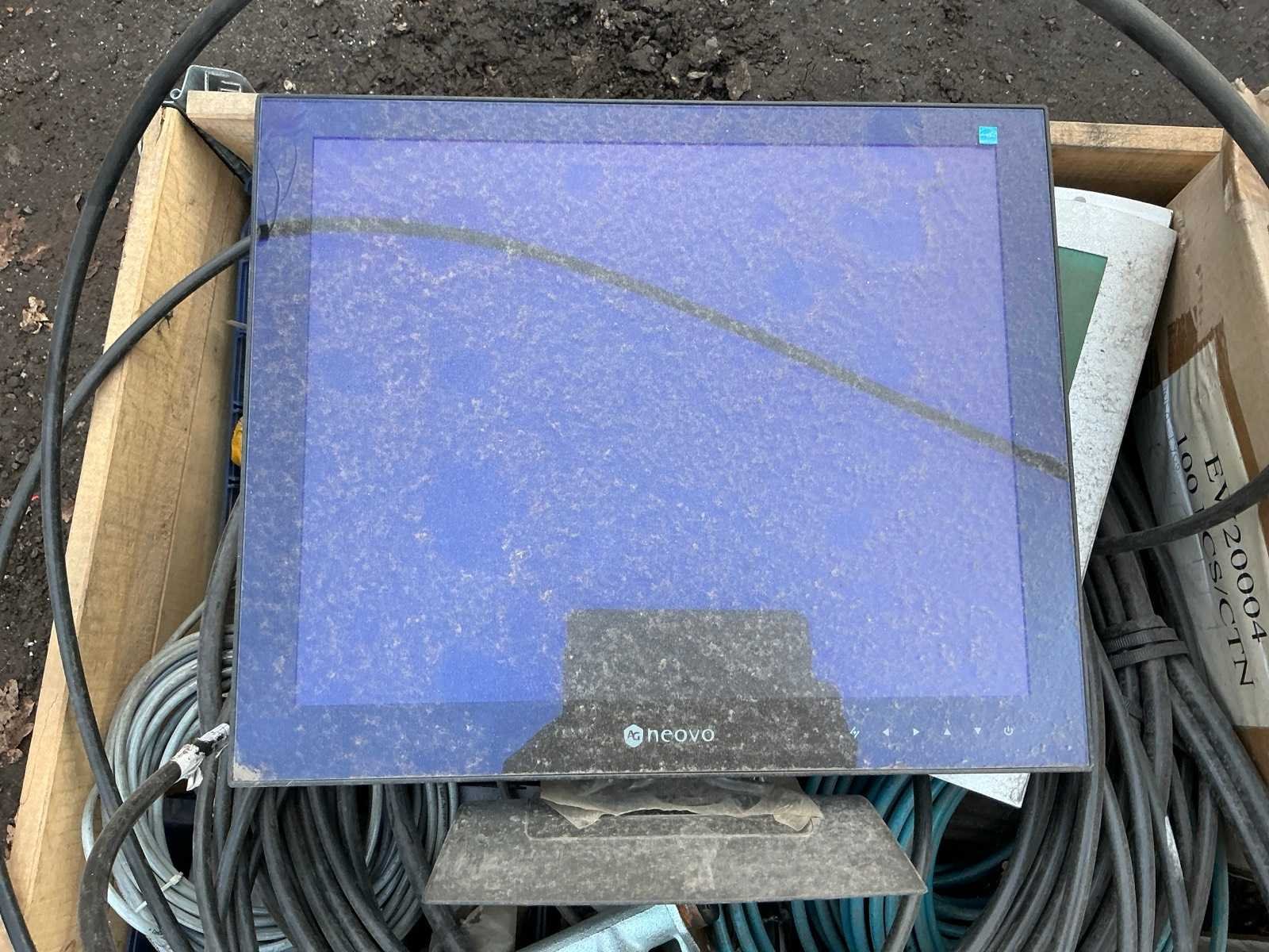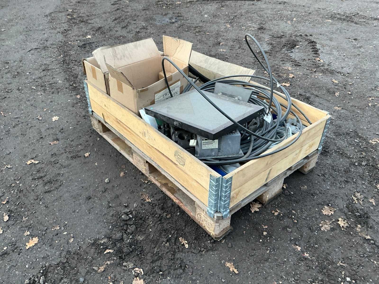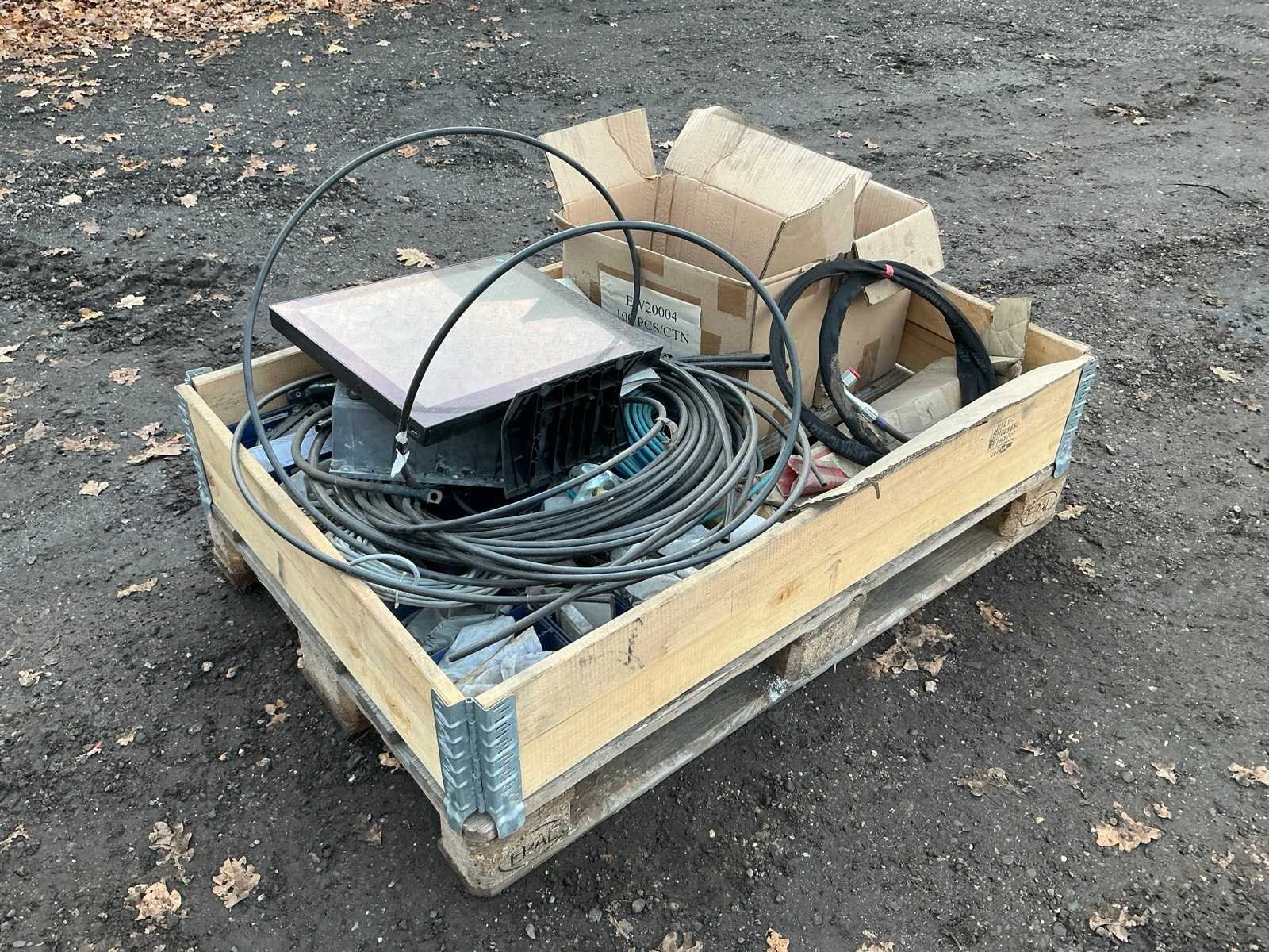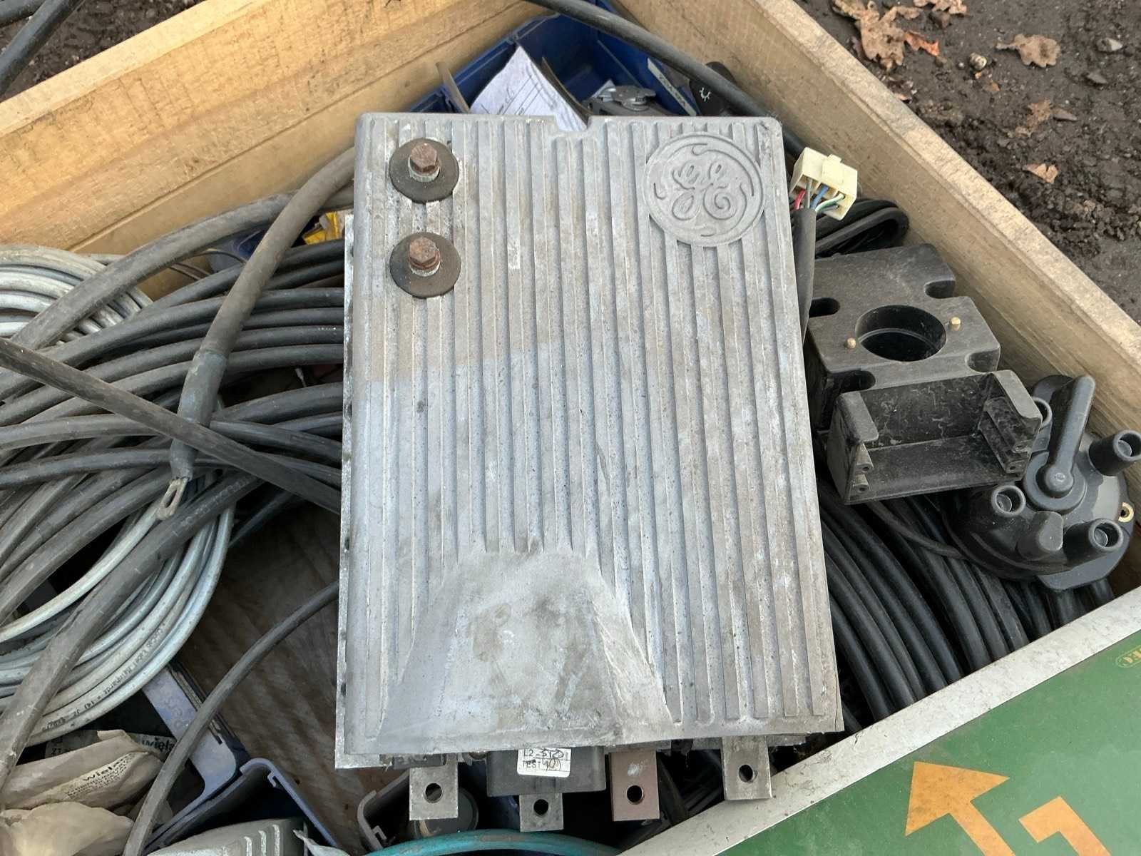 Krat met diverse leidingen, stekkers , computer scherm, regelkast, Merk: Krat met diverse leidingen en stekkers Totale afmeting L: 1200mm Totale afmeting Breedte: 800mm Totale afmeting Hoogte: 500mm