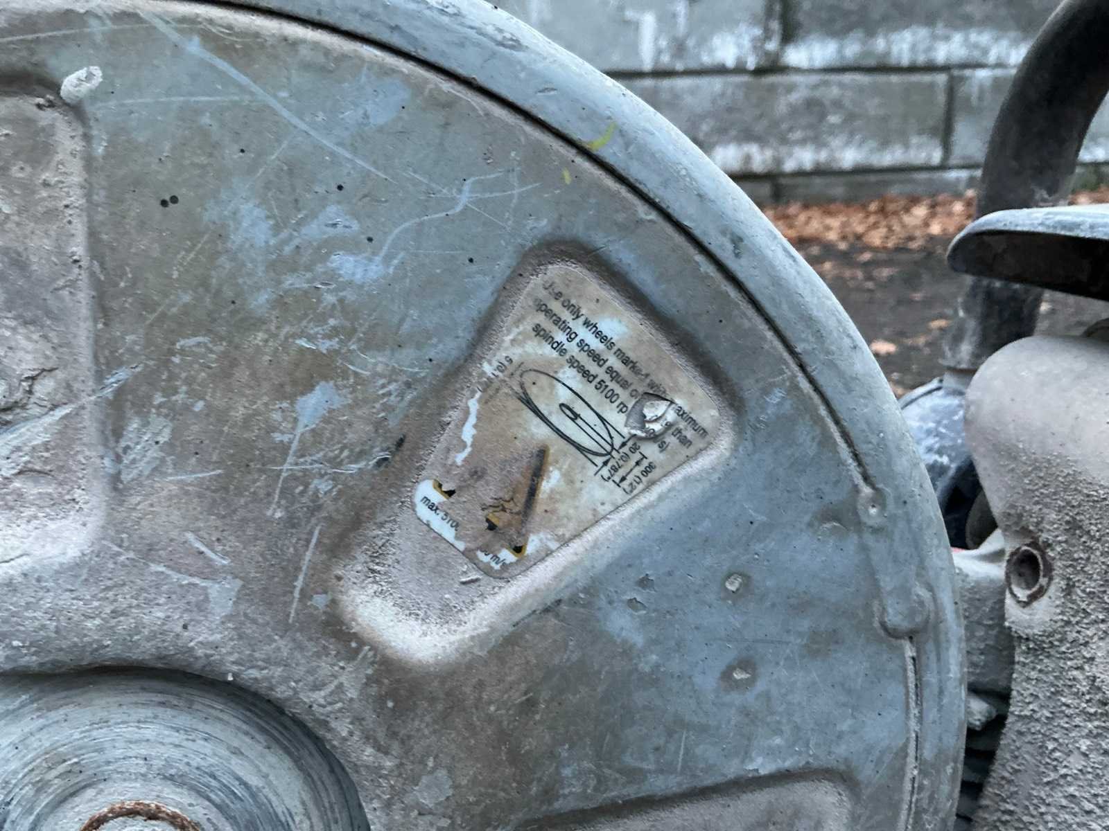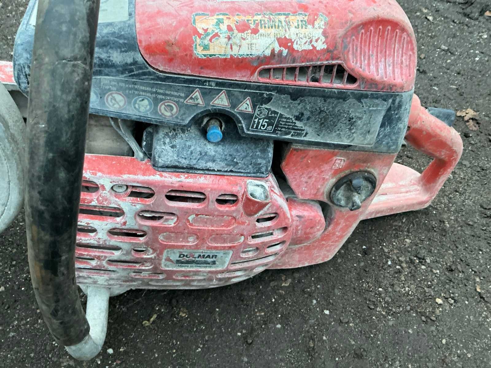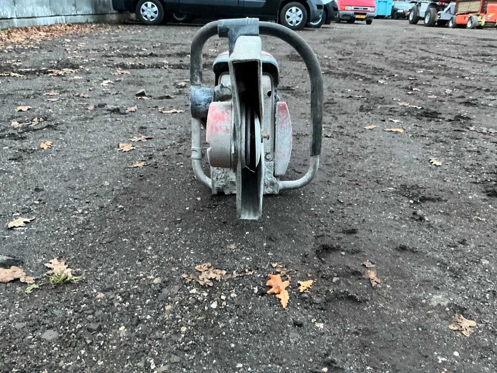 Startkoord ontbreekt, geschikt voor schijven 300mm, as 20mm, water aansluiting Merk: Sachs Dolmar Type: PC-6412 S Slijpbereik: 300mm Machinegewicht: 6kg Afmeting l: 750mm Afmeting b: 300mm Afmeting h: 360mm