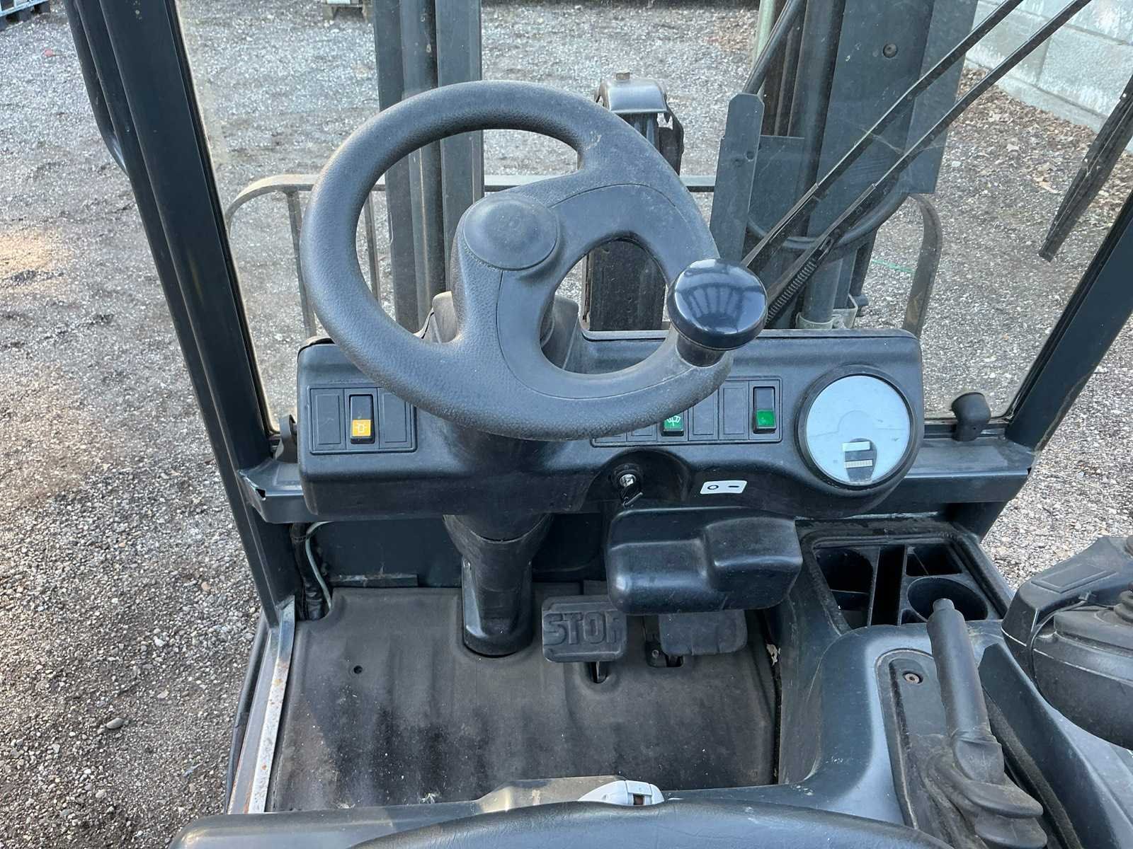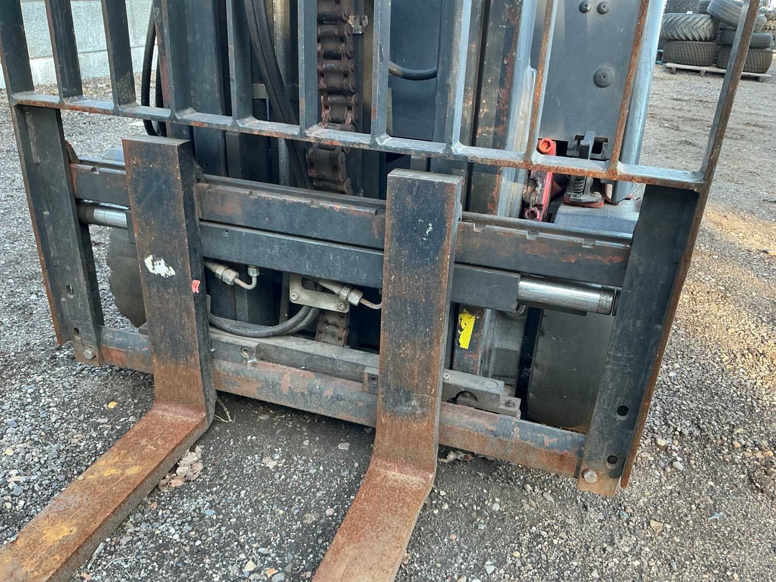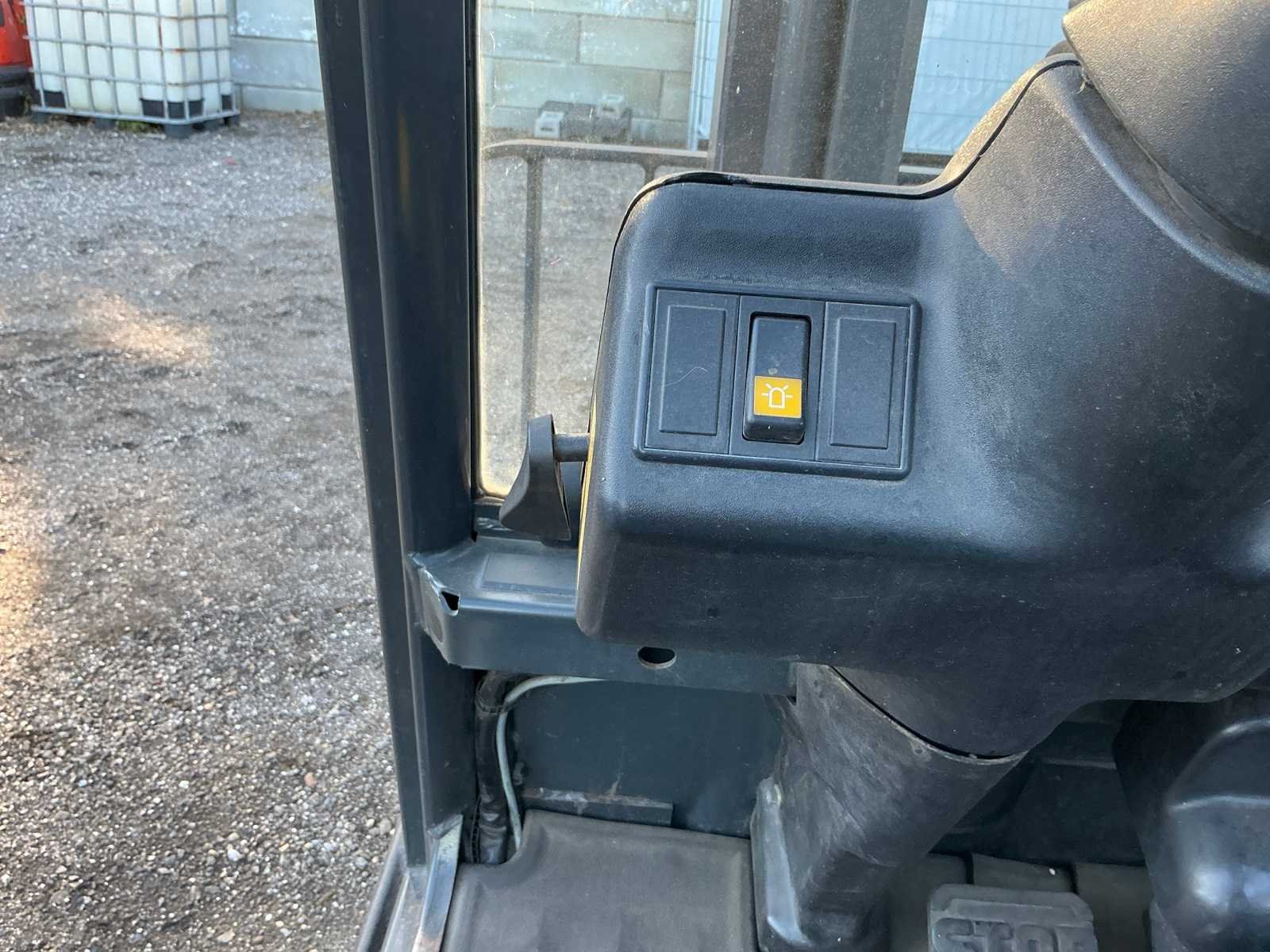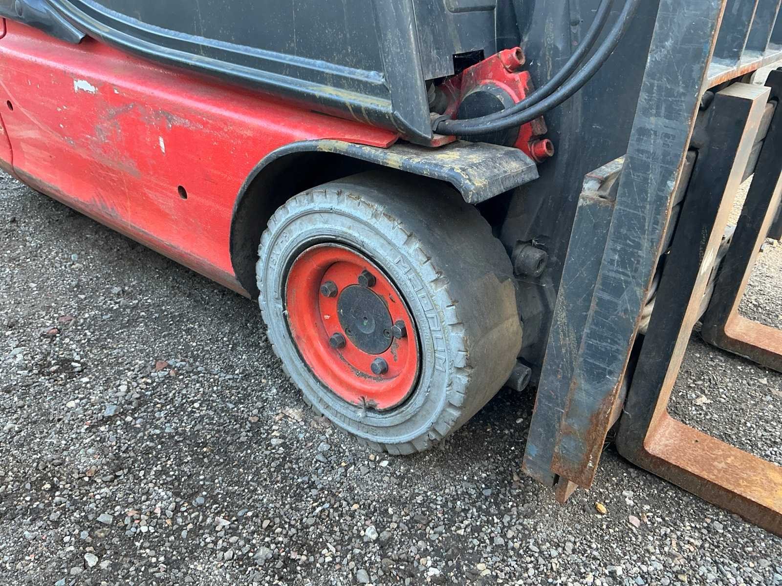 Lastrek,led werkverlichting, trekpin, geen lader, accu leeg, 48 volt accupakket, cabine zit vast in de vergrendeling Merk: Linde Type: E16 C02 Bouwjaar: 2003 Serienummer: H2X335P01229 Brandstof: Elektrisch Mast: Triple Soort band: Volrubber banden Aantal wielen: 4 Free-lift: true Side-shift: true Triple mast: true Eigen gewicht: 2350kg Hefvermogen: 1600kg Lepellengte: 1100mm Hefhoogte: 4770mm Vol rubber banden: true Totale afmeting L: 3000mm Totale afmeting Breedte: 1080mm Totale afmeting Hoogte: 2200mm