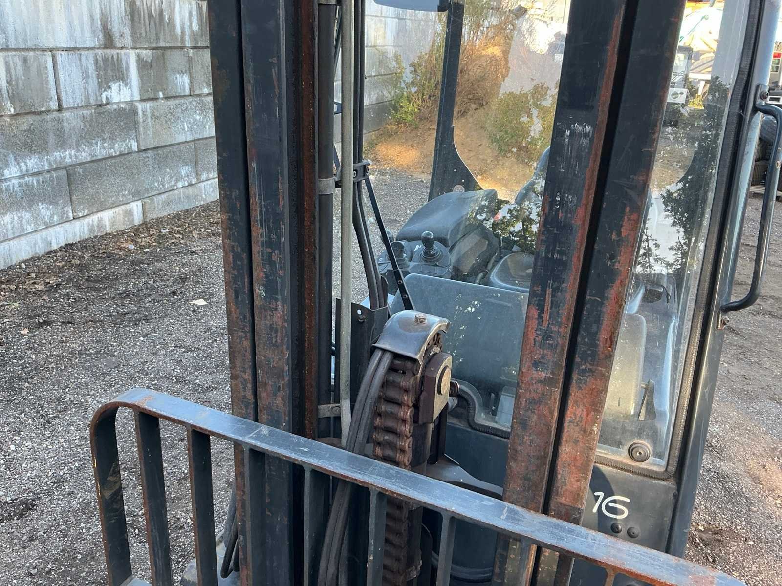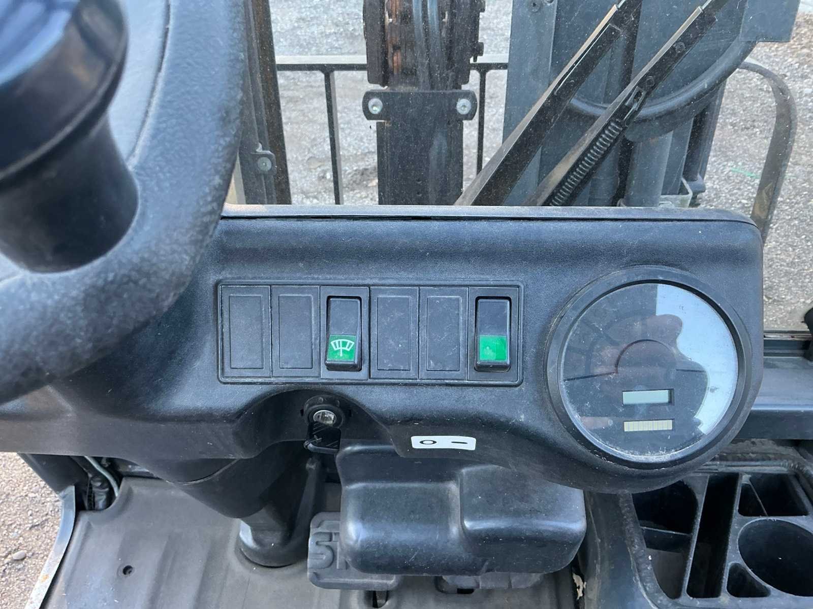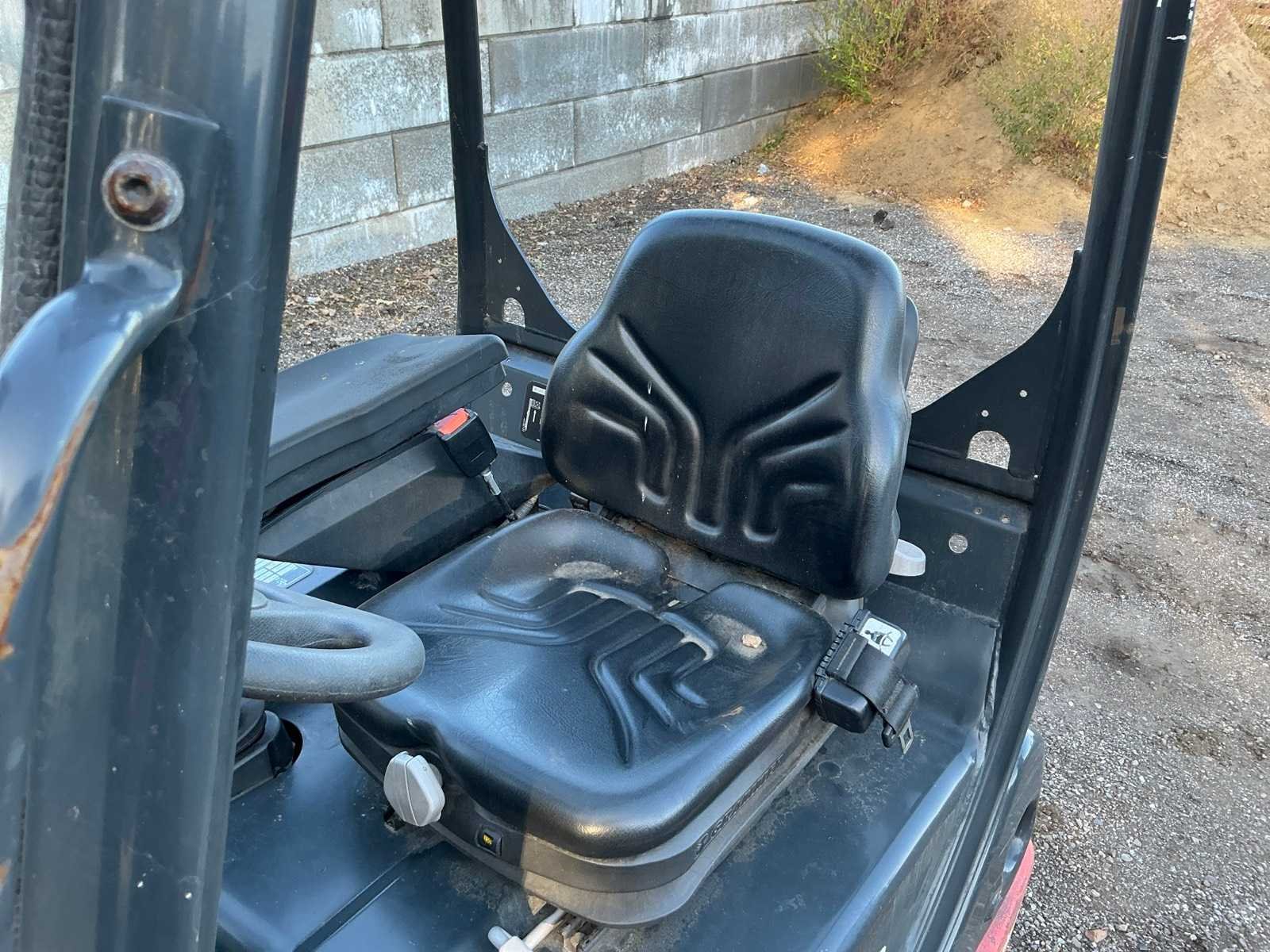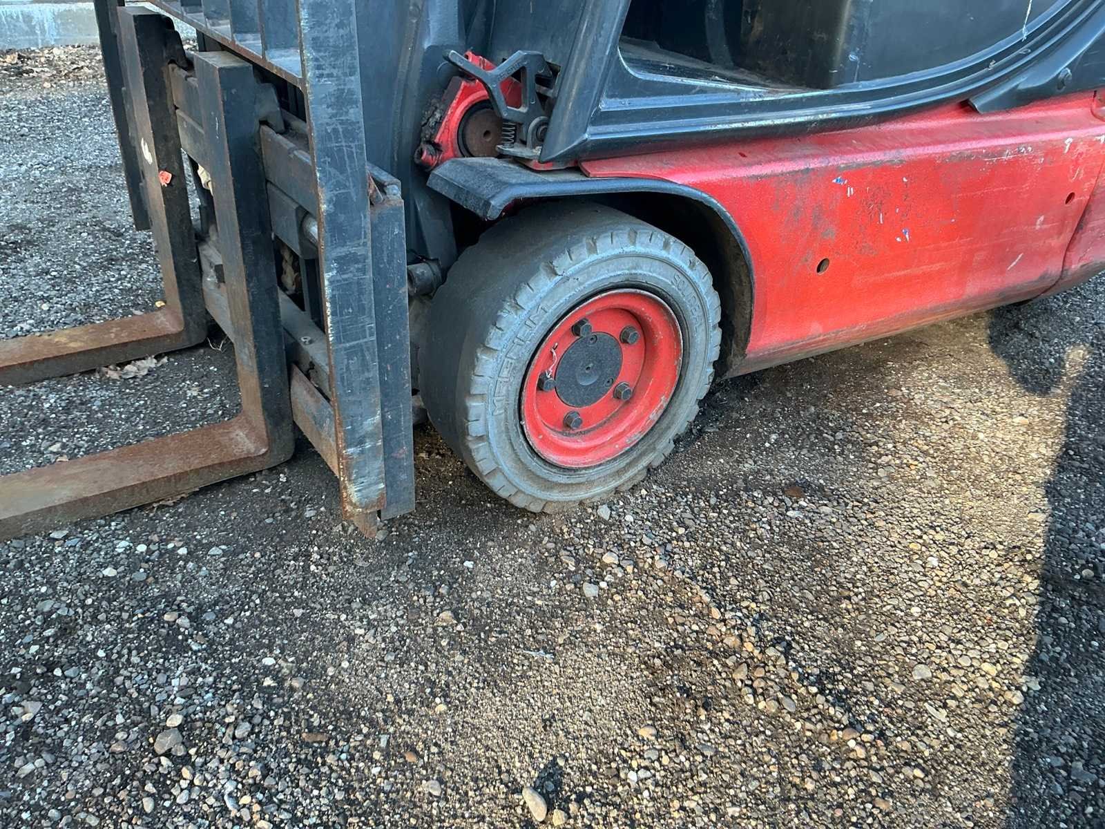 Lastrek,led werkverlichting, trekpin, geen lader, accu leeg, 48 volt accupakket, cabine zit vast in de vergrendeling Merk: Linde Type: E16 C02 Bouwjaar: 2003 Serienummer: H2X335P01229 Brandstof: Elektrisch Mast: Triple Soort band: Volrubber banden Aantal wielen: 4 Free-lift: true Side-shift: true Triple mast: true Eigen gewicht: 2350kg Hefvermogen: 1600kg Lepellengte: 1100mm Hefhoogte: 4770mm Vol rubber banden: true Totale afmeting L: 3000mm Totale afmeting Breedte: 1080mm Totale afmeting Hoogte: 2200mm