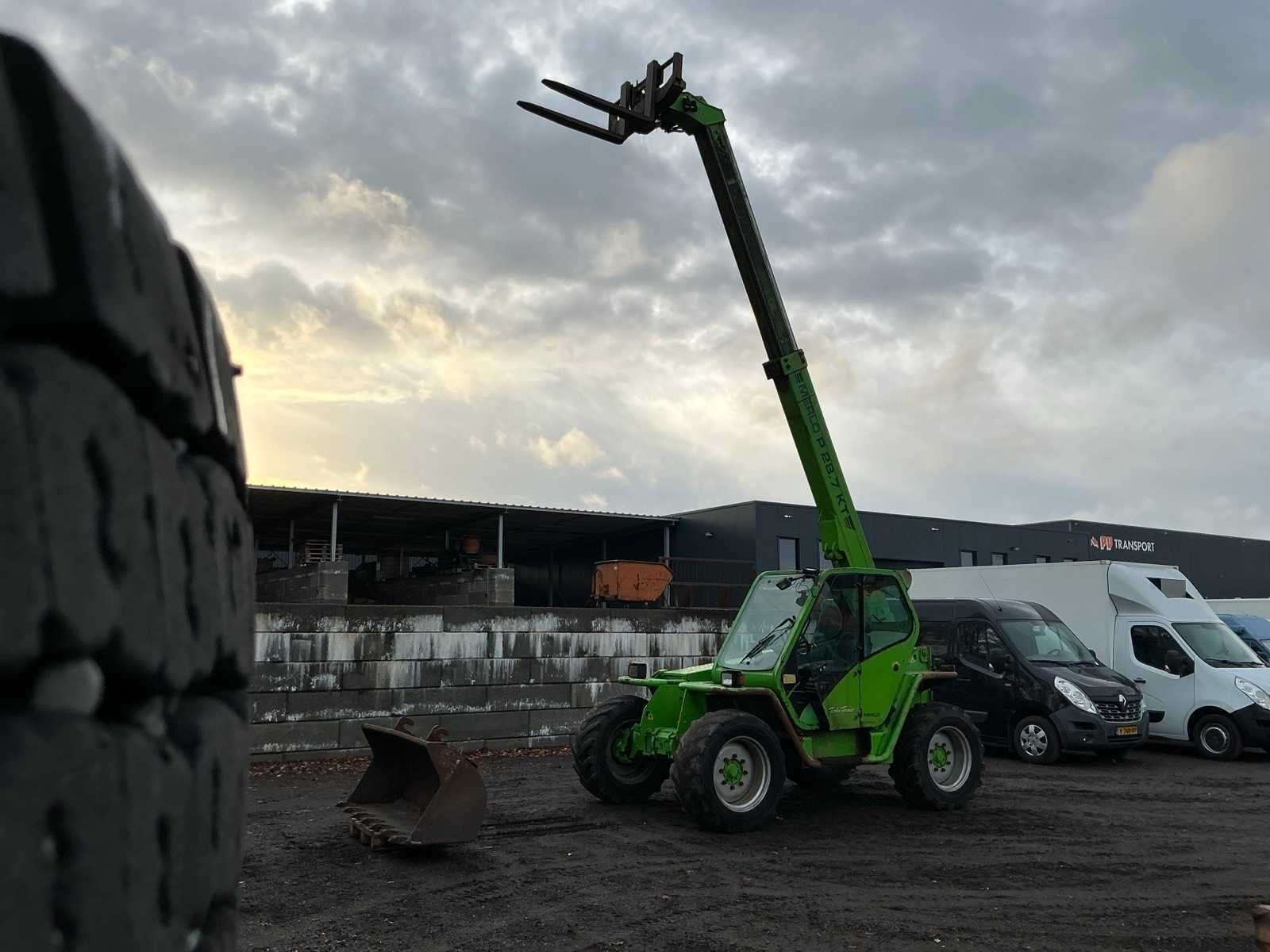 4x4x4, Lepels 1200mm, lepelbord 1200mm, 3e Functie, telescopische mast, 1x DW ventiel achter, 7 polige stekker, digitale display, Merk: Merlo Type: P28.7KT Bouwjaar: 2001 Serienummer: B119436 Hefvermogen: 2800kg Hefhoogte: 7000mm Cabine: true Vierwielaandrijving 4x4: true Lepellengte: 1200mm Luchtbanden: true Eigen gewicht: 6400kg Totale afmeting L: 5700mm Totale afmeting Breedte: 2300mm Totale afmeting Hoogte: 2400mm