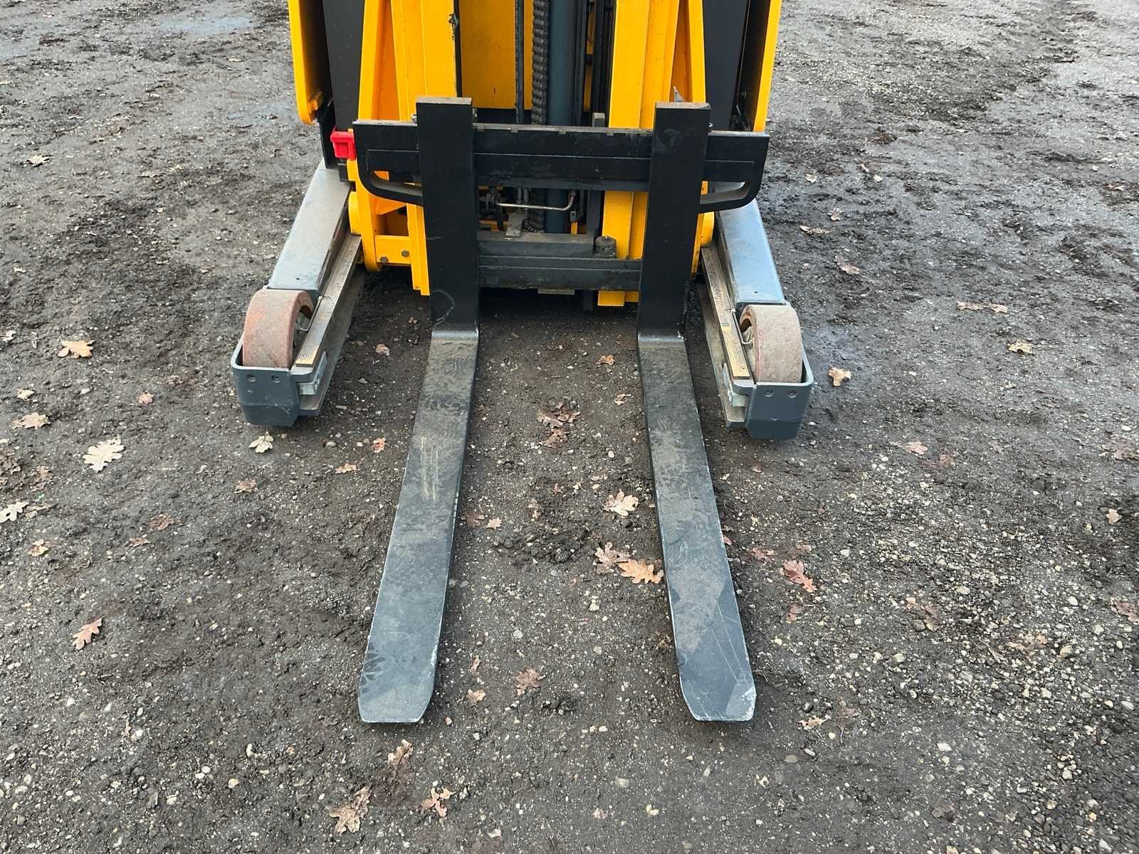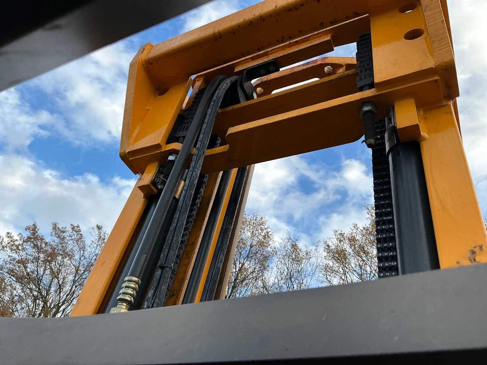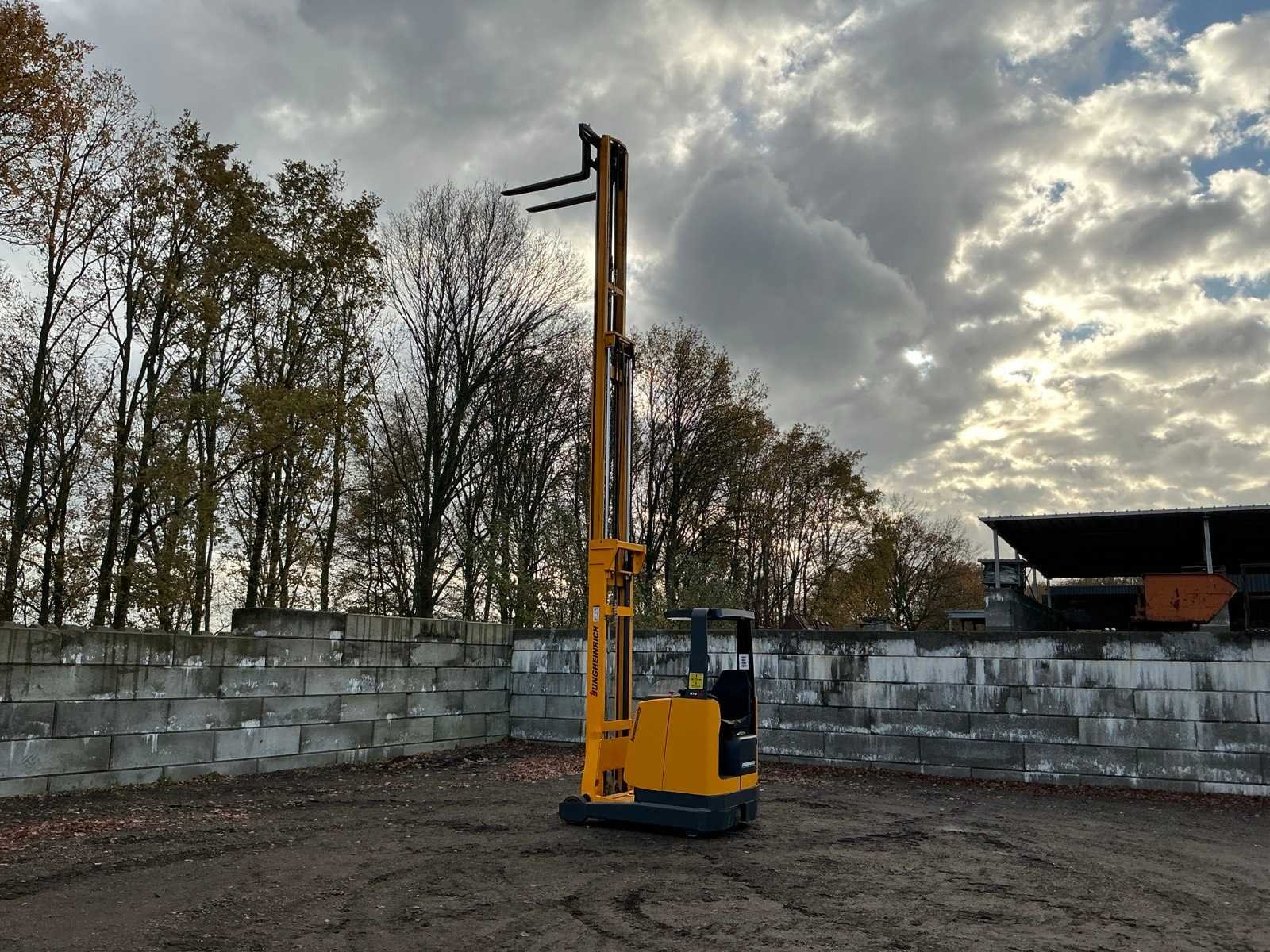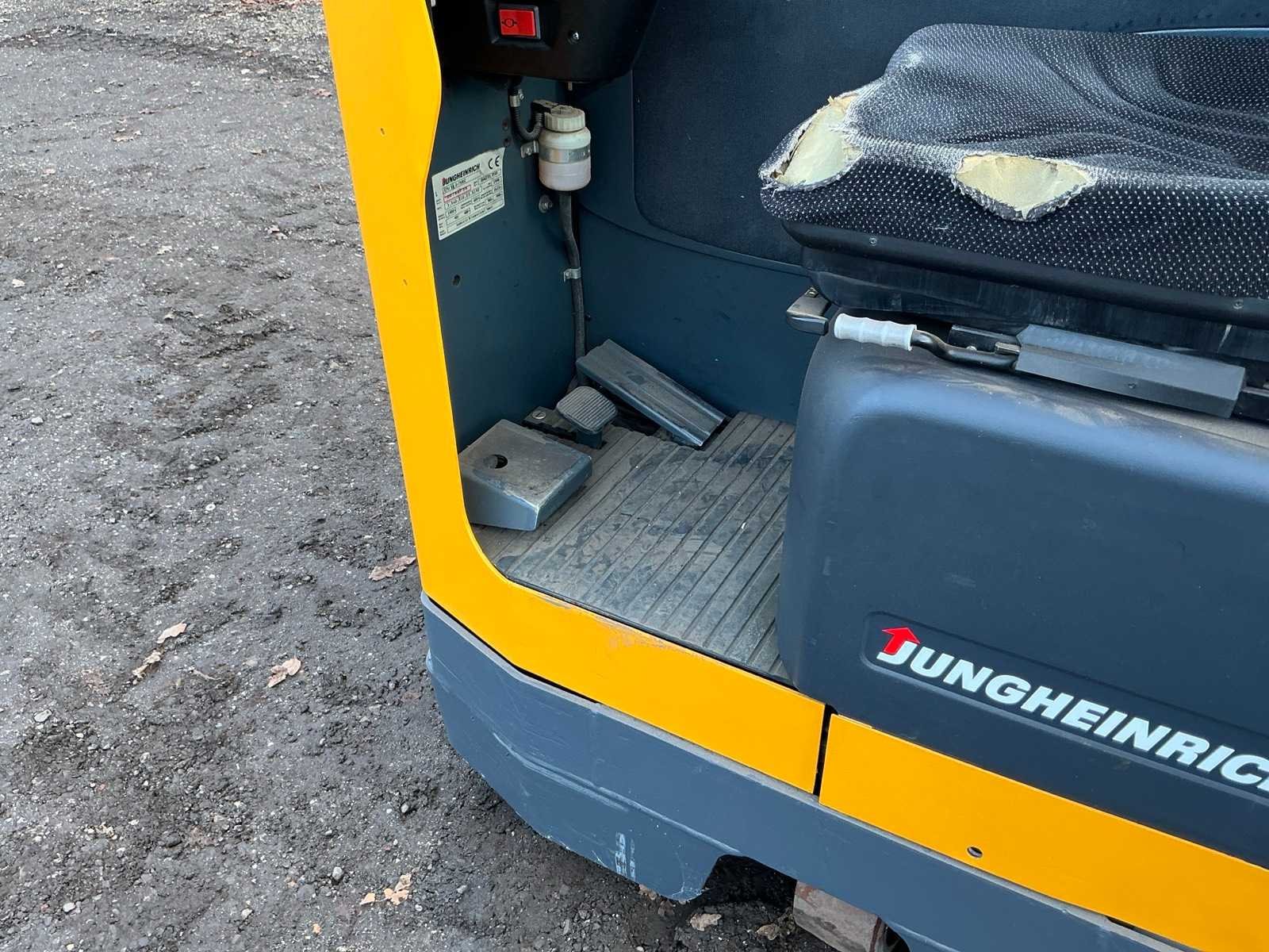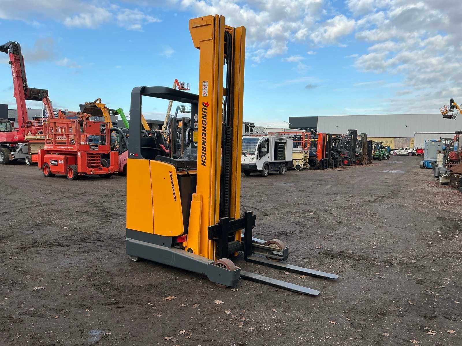 Lepels 1150mm, lepelbord 940mm, free lift, ergo joystick, 48V accupakket, Merk: Jungheinrich Type: ETV14 G-710DZ Bouwjaar: 1998 Serienummer: 80766738 Brandstof: Elektrisch Mast: Triplex Soort band: Vol rubber Aantal wielen: 3 Afgelezen urenstand: 8922 Free-lift: true Triple mast: true Eigen gewicht: 3610kg Hefvermogen: 1400kg Lepellengte: 1150mm Hefhoogte: 7100mm Minimale doorrijhoogte: 3000mm Totale afmeting L: 2500mm Totale afmeting Breedte: 1240mm Totale afmeting Hoogte: 2950mm Elektrisch: true Vol rubber banden: true