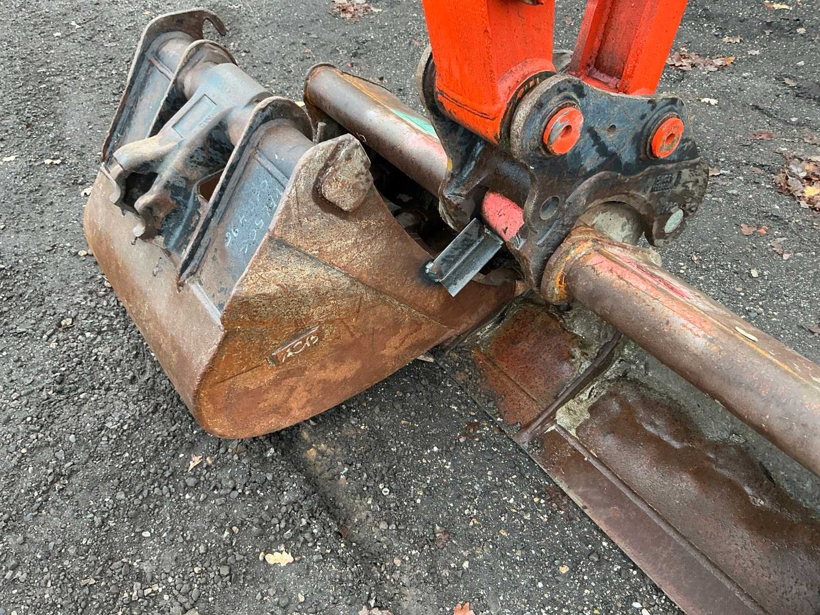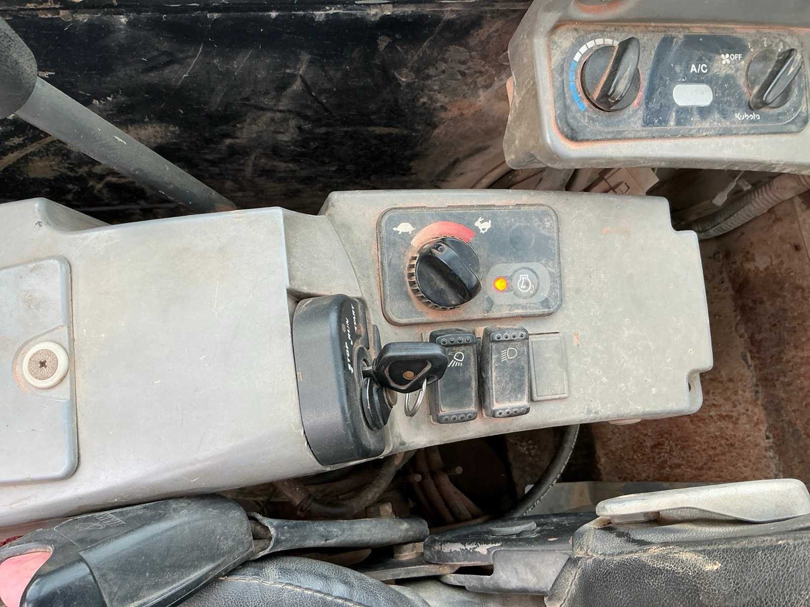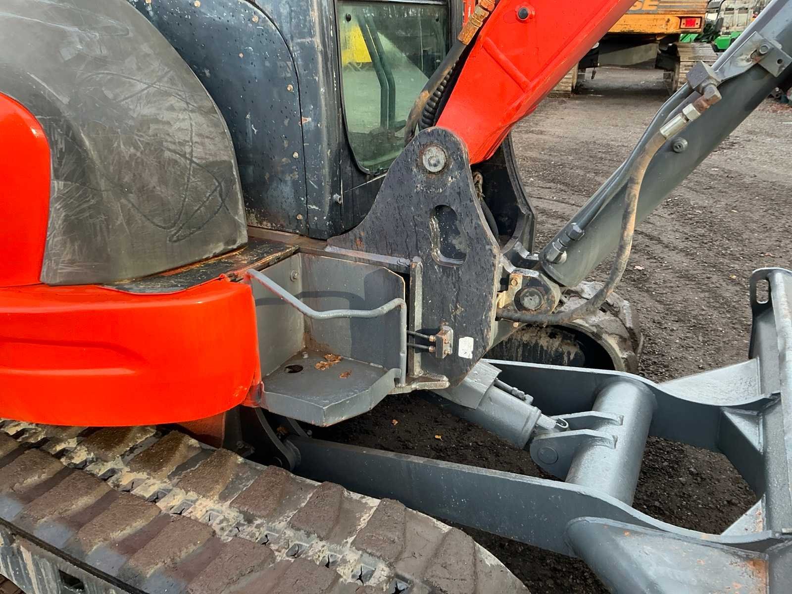 Slotenbak 1400mm, dieplepel 550mm, wissel, 3e functie voorbereid, led werkverlichting, blad 1950mm, auto idle, verwarming, airco, radio, Merk: Kubota Type: KX165-5 Bouwjaar: 2016 Serienummer: 61118 Merk motor: Kubota Motorvermogen (kW): 35.5kW Aantal cilinders: 4 Brandstof: Diesel Bedrijfsgewicht: 5890kg Gieklengte: 2300mm Graafbak afm. b: 1400mm Rups breedte: 390mm Afgelezen urenstand: 3489 Eigen gewicht: 5890kg Totale afmeting L: 5400mm Totale afmeting Breedte: 1950mm Totale afmeting Hoogte: 2500mm