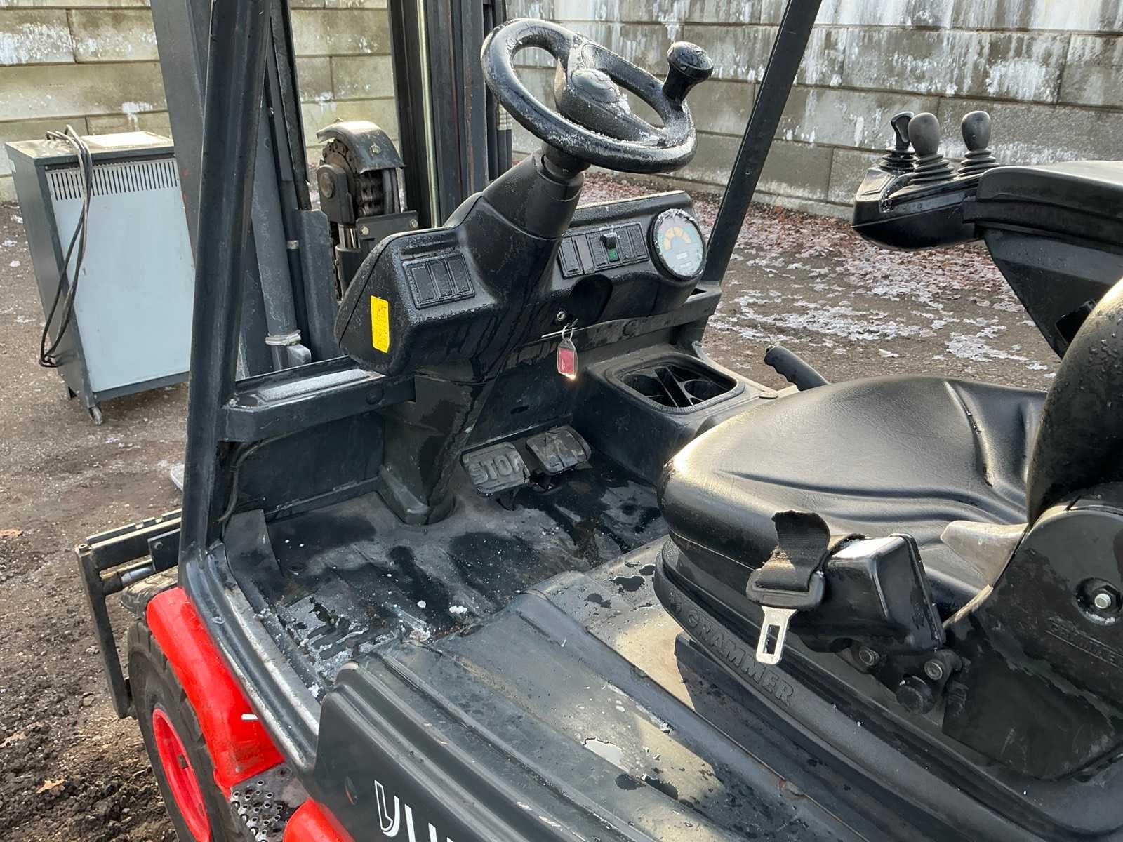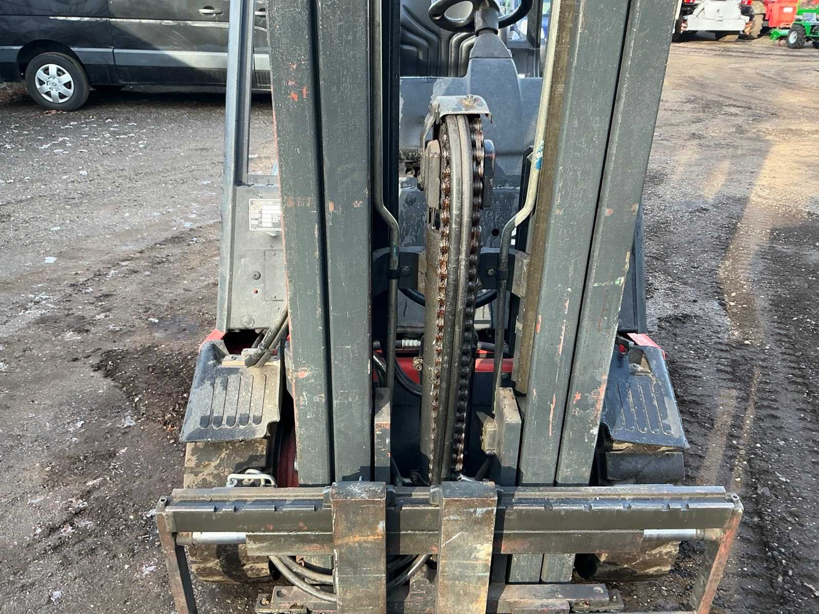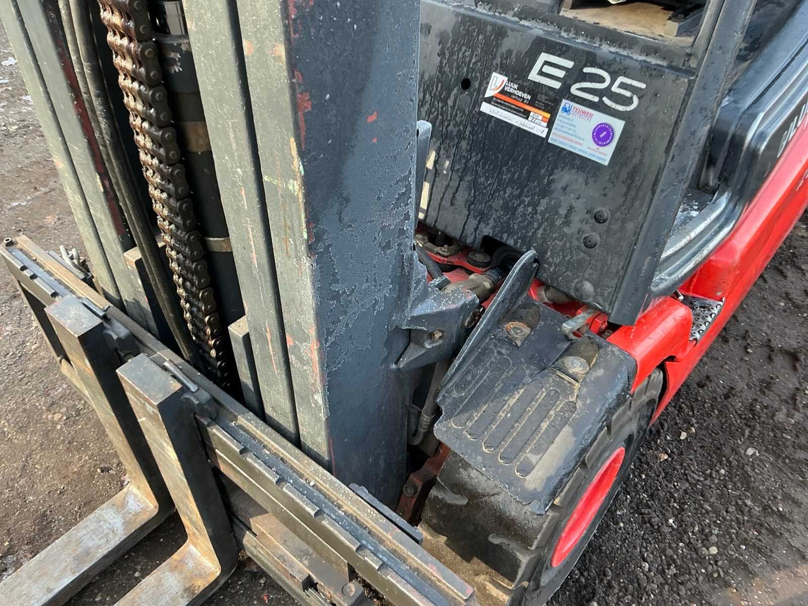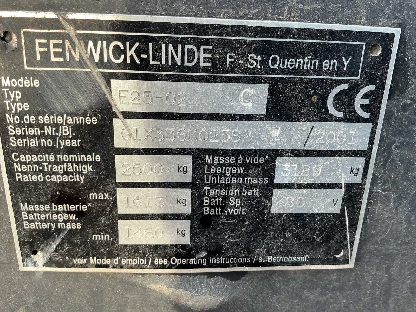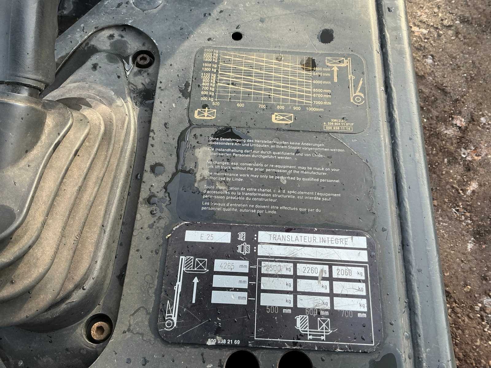 Inclusief lader 80V met 380V stekker 16A, lepels 1200mm, lepelbord 1150mm, Side shift, free lift, triplex mast, 80V accupakket, Merk: Linde Type: E25-02 Bouwjaar: 2001 Serienummer: G1X336M02582 Brandstof: Elektrisch Mast: Triple Soort band: Volrubber banden Aantal wielen: 4 Afgelezen urenstand: 28706 Accu lader: true Free-lift: true Side-shift: true Triple mast: true Eigen gewicht: 4700kg Hefvermogen: 2500kg Lepellengte: 1200mm Max. hefhoogte: 4265mm Vol rubber banden: true Minimale doorrijhoogte: 2200mm Totale afmeting L: 3600mm Totale afmeting Breedte: 1150mm Totale afmeting Hoogte: 2100mm