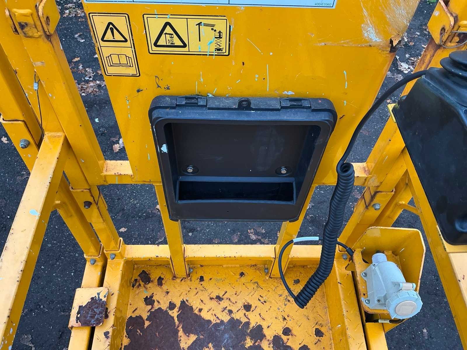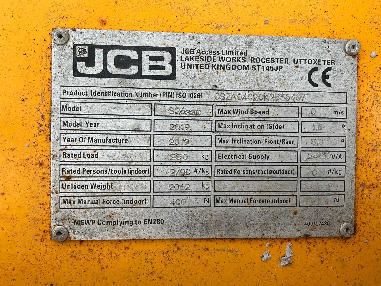 Ingebouwde lader, uitschuifbaar platform 900mm, 3 polige stekker, max hefhoogte 10100mm, max hefvermogen 250kg Merk: JCB Type: S2632E Bouwjaar: 2019 Serienummer: 536407 Elektrisch: true Schaarhoogwerker: true Werkhoogte: 10100mm Horizontale rijkwijdte: 900mm Plateau afm. l: 2250mm Plateau afm. b: 800mm Platform capaciteit: 250kg Accu lader: true Afgelezen urenstand: 113.8 Eigen gewicht: 2062kg Totale afmeting L: 2400mm Totale afmeting Breedte: 800mm Totale afmeting Hoogte: 2400mm