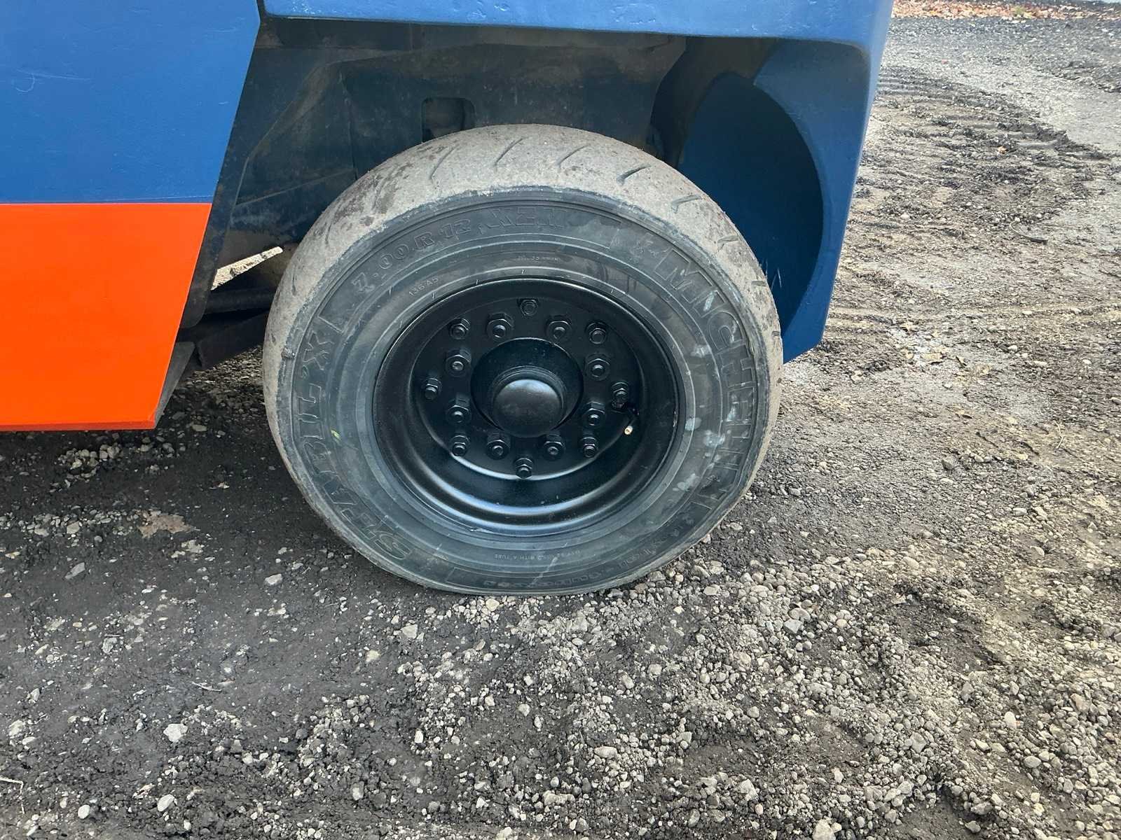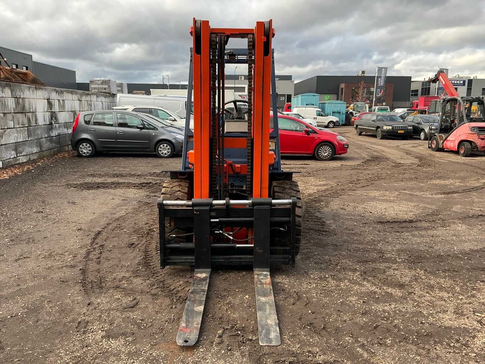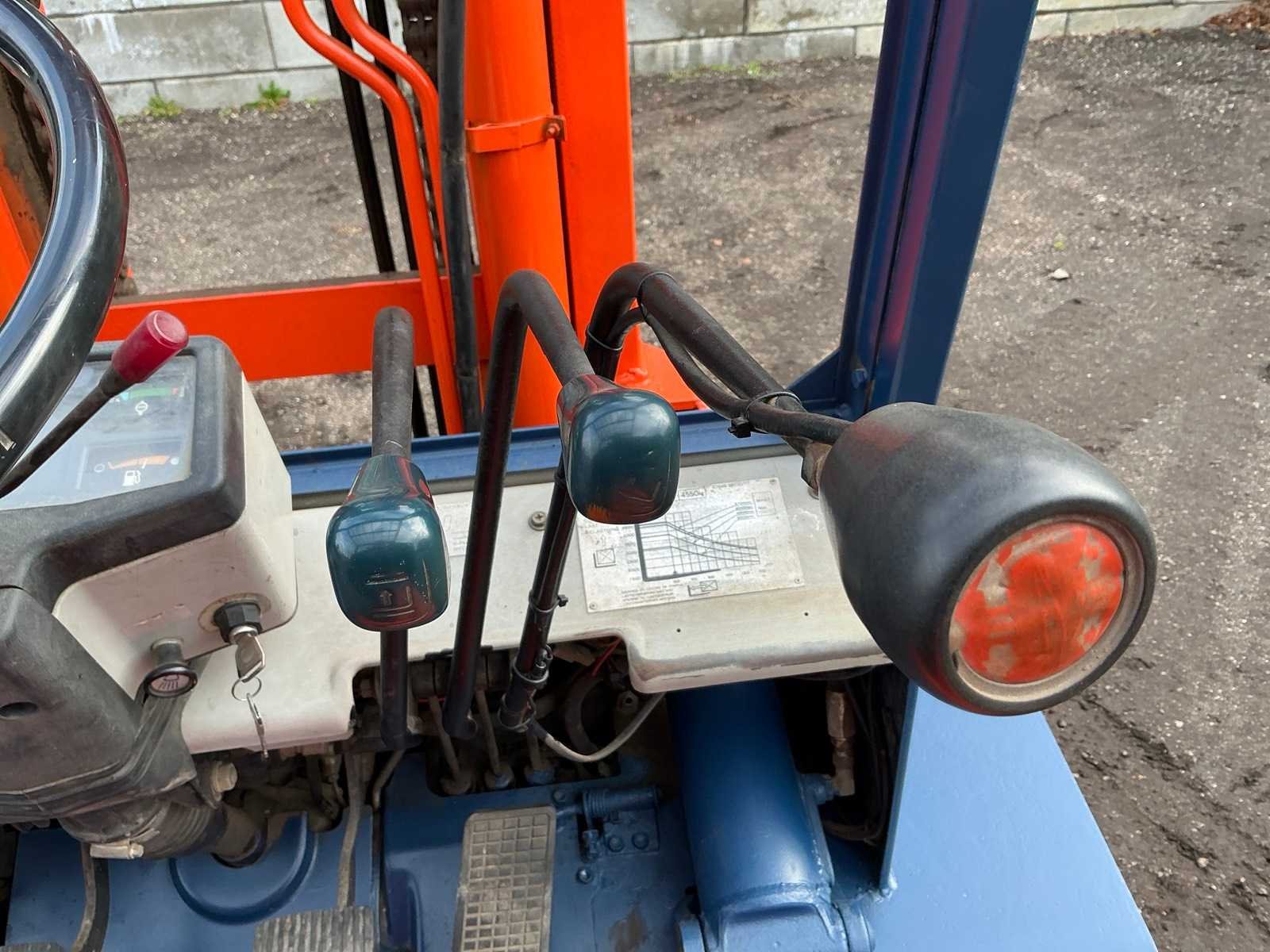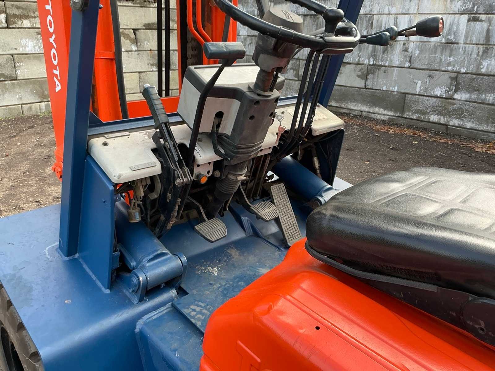 2 Rijsnelheden vooruit, Lepels 1200mm, lepelbord 1300mm, lepel spreider, duplex mast, trekoog achter, max hefhoogte 3700mm, max hefvermogen 4500kg Merk: Toyota Type: 02-5FG045 Bouwjaar: 1989 Serienummer: 5FG451023 Brandstof: LPG Mast: Duplex Soort band: Luchtbanden Aantal wielen: 4 Afgelezen urenstand: 15404 Eigen gewicht: 6880kg Hefvermogen: 4500kg Lepellengte: 1200mm Max. hefhoogte: 3700mm Luchtbanden: true Minimale doorrijhoogte: 2500mm Totale afmeting L: 4400mm Totale afmeting Breedte: 1430mm Totale afmeting Hoogte: 2450mm