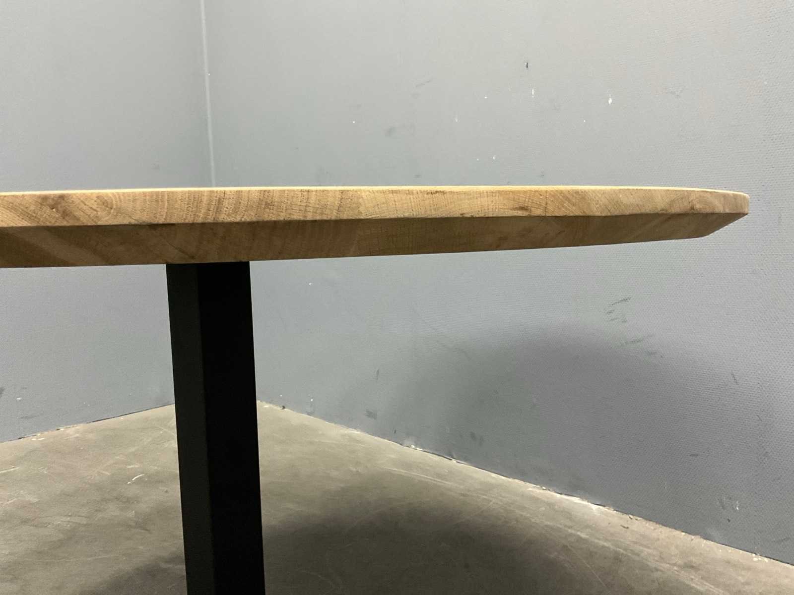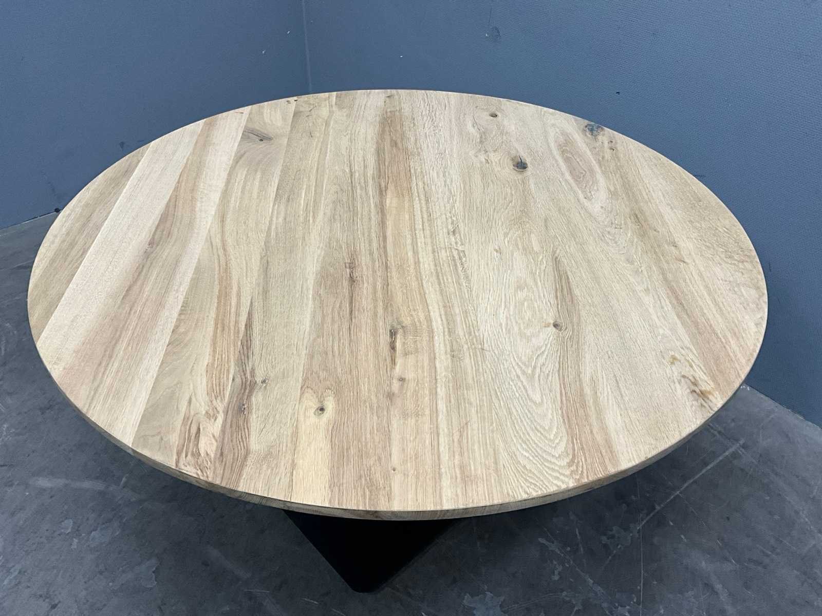 Met zwart metalen tafelpoten Model: Ronde Product type: Eiken Lengte: 120cm Hoogte: 76cm