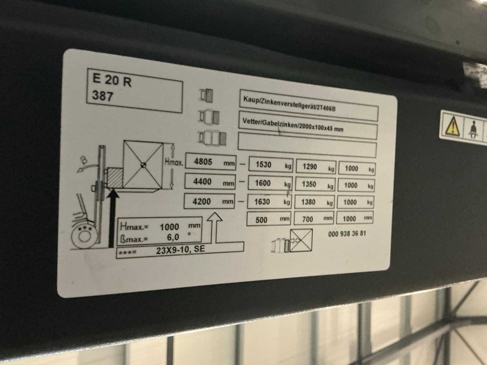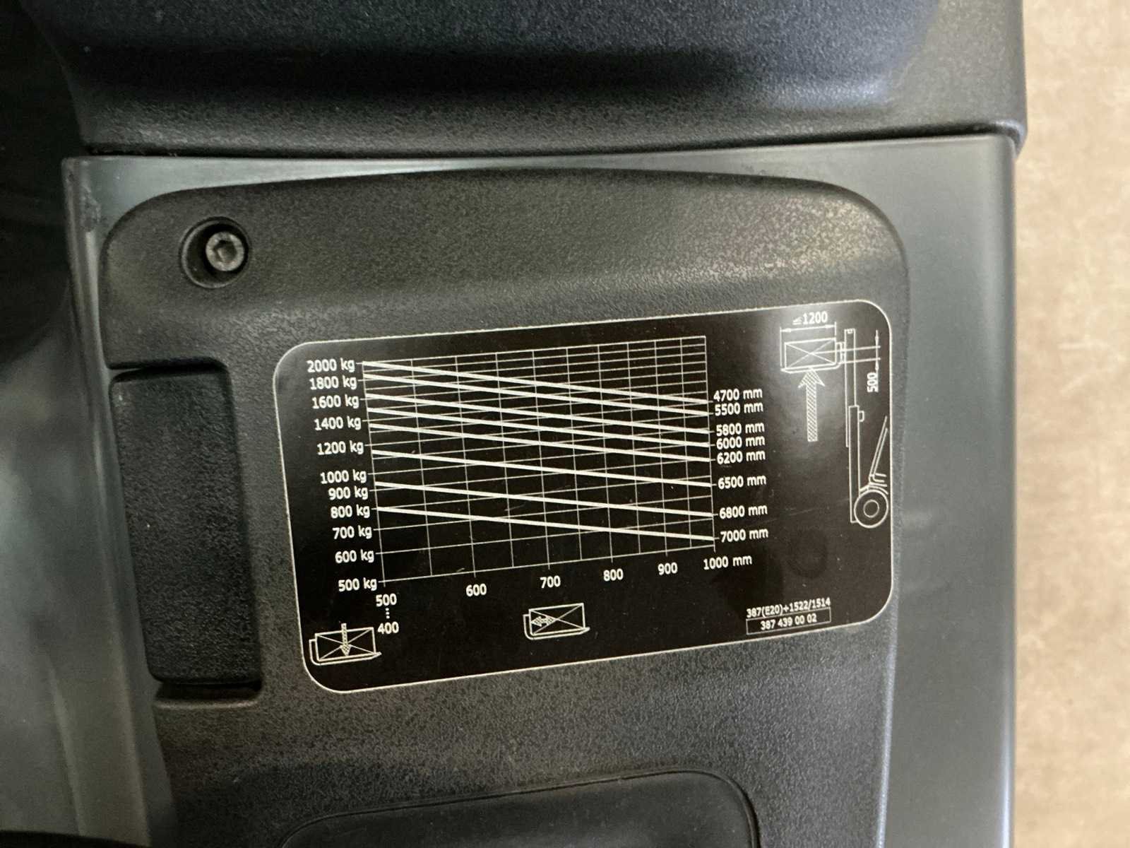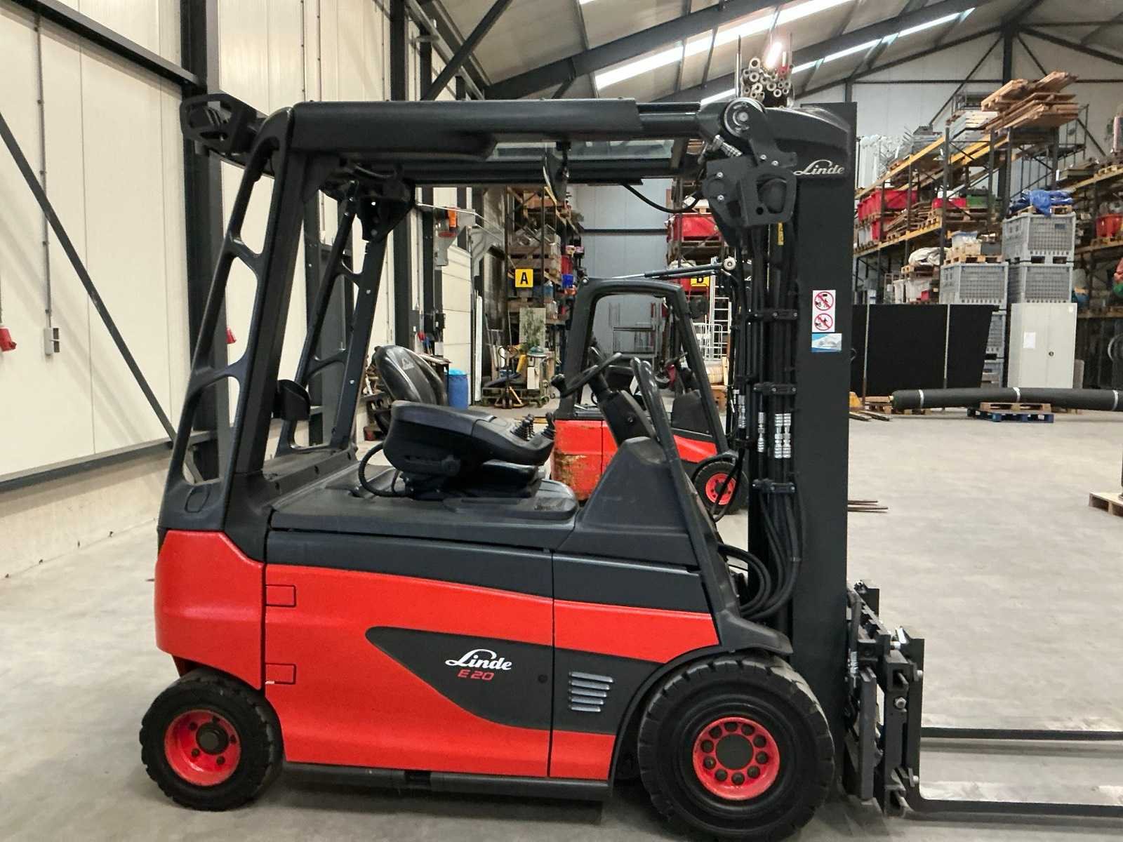 Merk: Linde Type: E20 Roadster Bouwjaar: 2020 Serienummer: H2X387X00515 Brandstof: Elektrisch Soort band: Volrubber banden Aantal wielen: 4 Afgelezen urenstand: 7617 Accu lader: true Free-lift: true Side-shift: true Hydraulisch verstelbare lepels: true Triple mast: true Eigen gewicht: 3050kg Hefvermogen: 2000kg Lepellengte: 1200mm Max. hefhoogte: 4800mm Totale afmeting L: 3650mm Totale afmeting Breedte: 1200mm Totale afmeting Hoogte: 2170mm