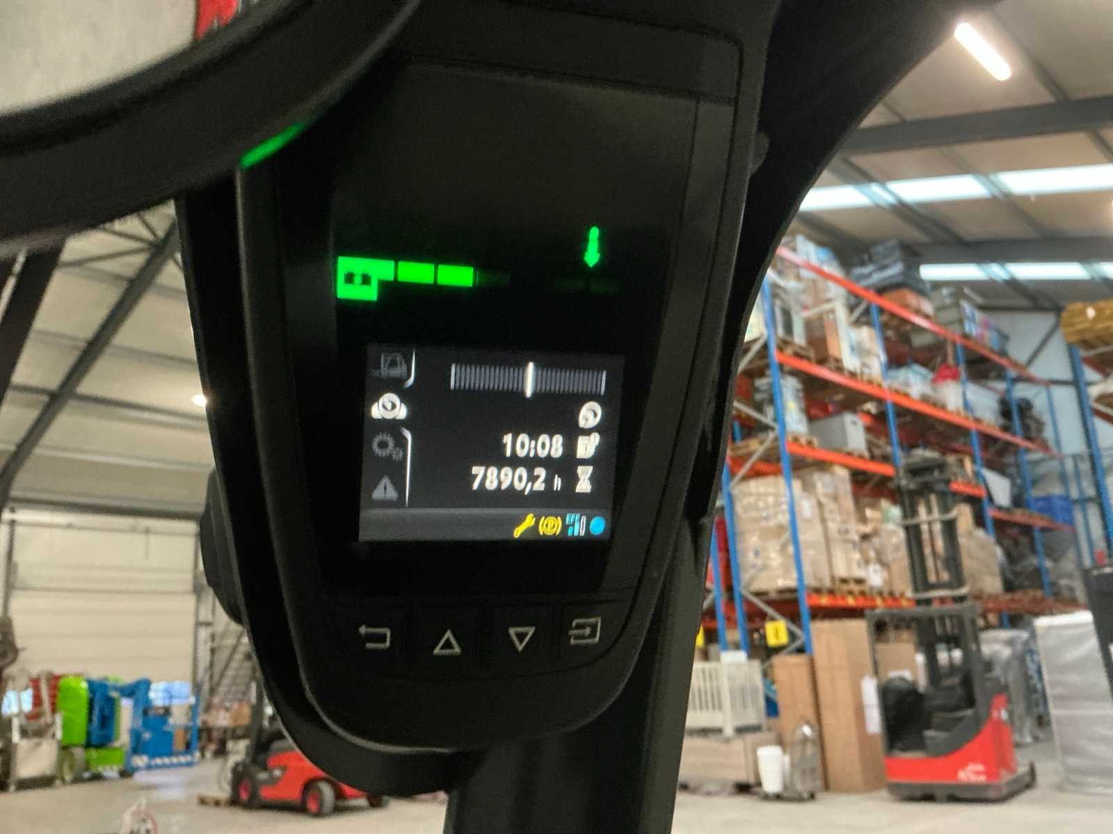 Nieuwe achterbanden; werkverlichting; bluespot Merk: Linde Type: E14-02 Bouwjaar: 2018 Serienummer: H2X386J11531 Brandstof: Elektrisch Mast: Triple Soort band: Volrubber banden Aantal wielen: 4 Afgelezen urenstand: 7890 Accu lader: true Side-shift: true Triple mast: true Eigen gewicht: 3250kg Lepellengte: 1000mm Hefhoogte: 4600mm Vol rubber banden: true Minimale doorrijhoogte: 2000mm Totale afmeting L: 2850mm Totale afmeting Breedte: 1100mm Totale afmeting Hoogte: 2000mm
