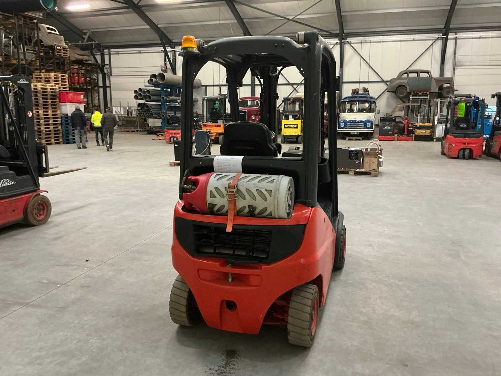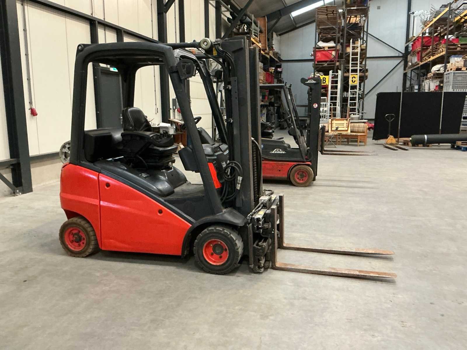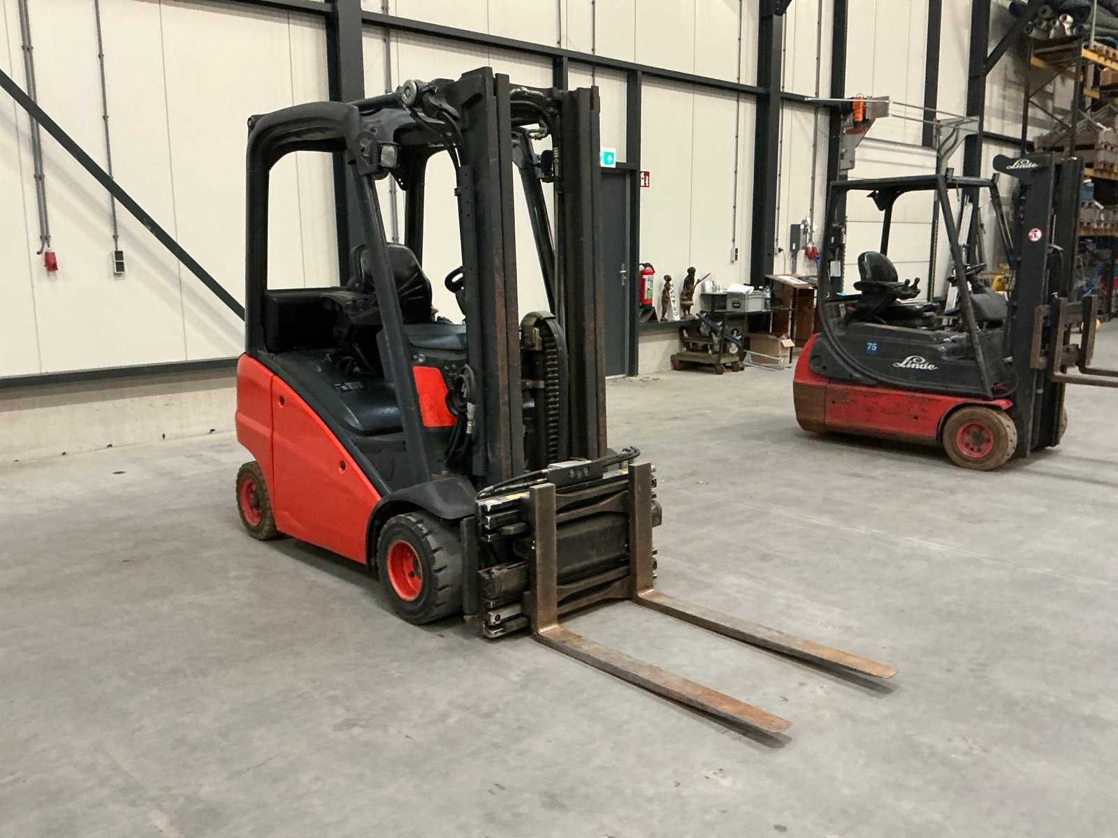 Zonder lpg tank; non marking achterbanden Merk: Linde Type: H16 Bouwjaar: 2007 Serienummer: H2X391U01612 Brandstof: LPG Aantal wielen: 4 Afgelezen urenstand: 7780 Side-shift: true Hydraulisch verstelbare lepels: true Triple mast: true Eigen gewicht: 2860kg Hefvermogen: 1600kg Lepellengte: 1050mm Hefhoogte: 4500mm Vol rubber banden: true Minimale doorrijhoogte: 2150mm Totale afmeting L: 3400mm Totale afmeting Breedte: 1200mm Totale afmeting Hoogte: 2150mm LPG: true