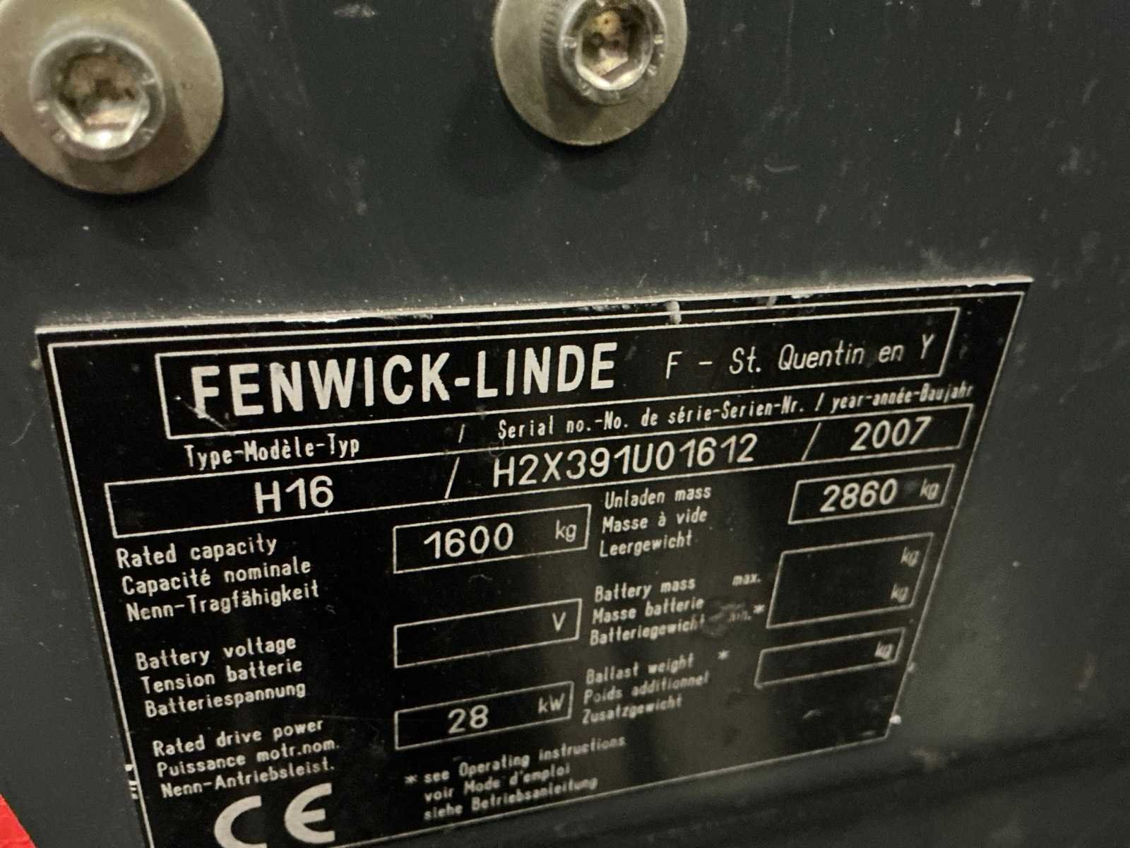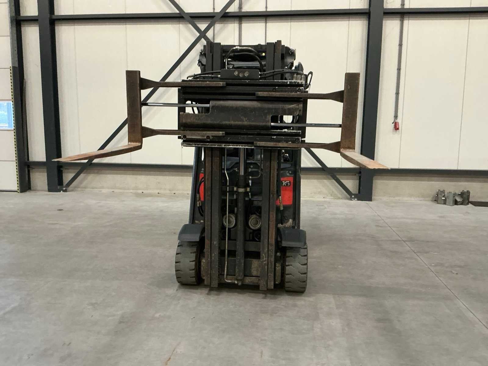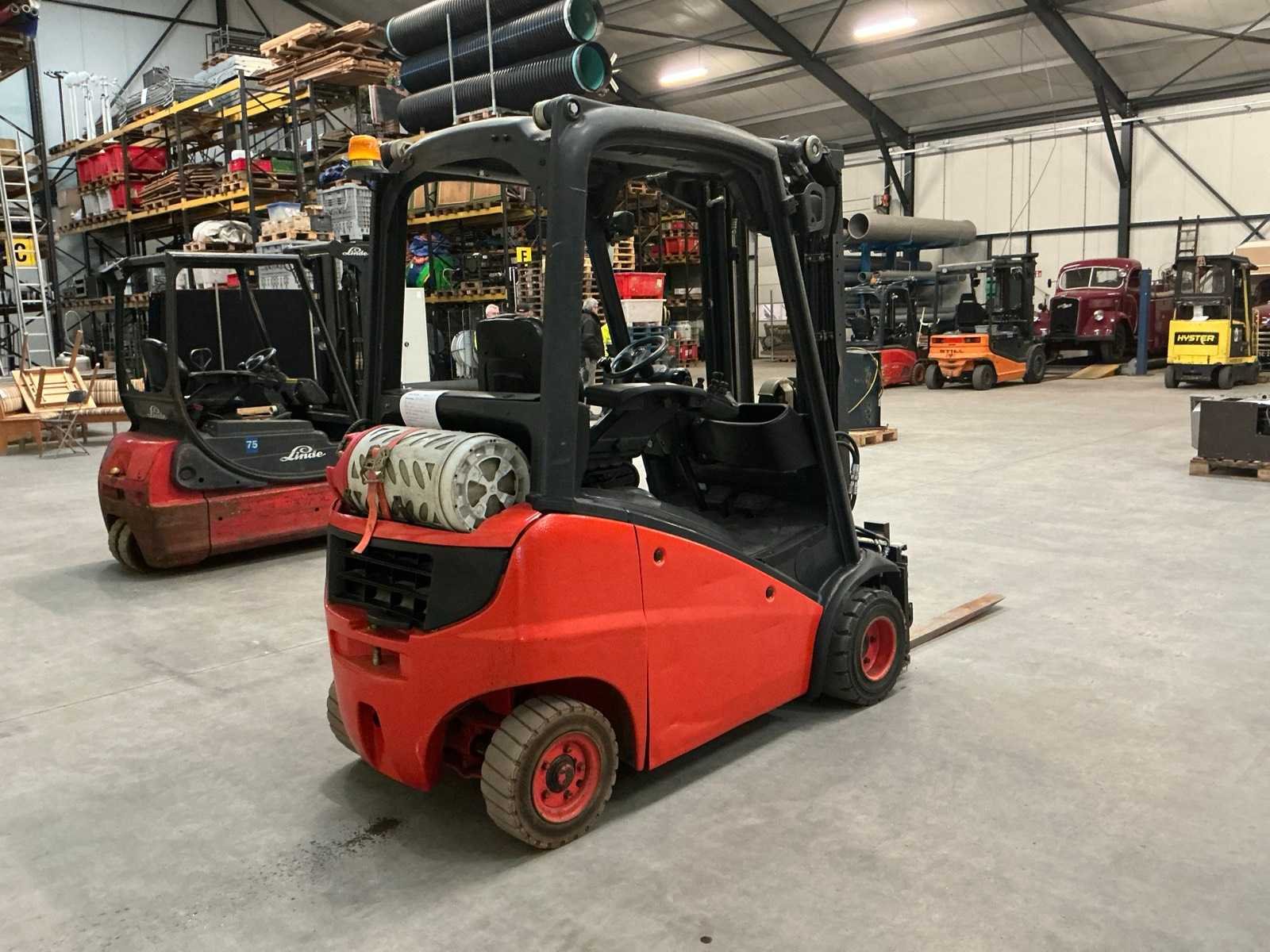 Zonder lpg tank; non marking achterbanden Merk: Linde Type: H16 Bouwjaar: 2007 Serienummer: H2X391U01612 Brandstof: LPG Aantal wielen: 4 Afgelezen urenstand: 7780 Side-shift: true Hydraulisch verstelbare lepels: true Triple mast: true Eigen gewicht: 2860kg Hefvermogen: 1600kg Lepellengte: 1050mm Hefhoogte: 4500mm Vol rubber banden: true Minimale doorrijhoogte: 2150mm Totale afmeting L: 3400mm Totale afmeting Breedte: 1200mm Totale afmeting Hoogte: 2150mm LPG: true