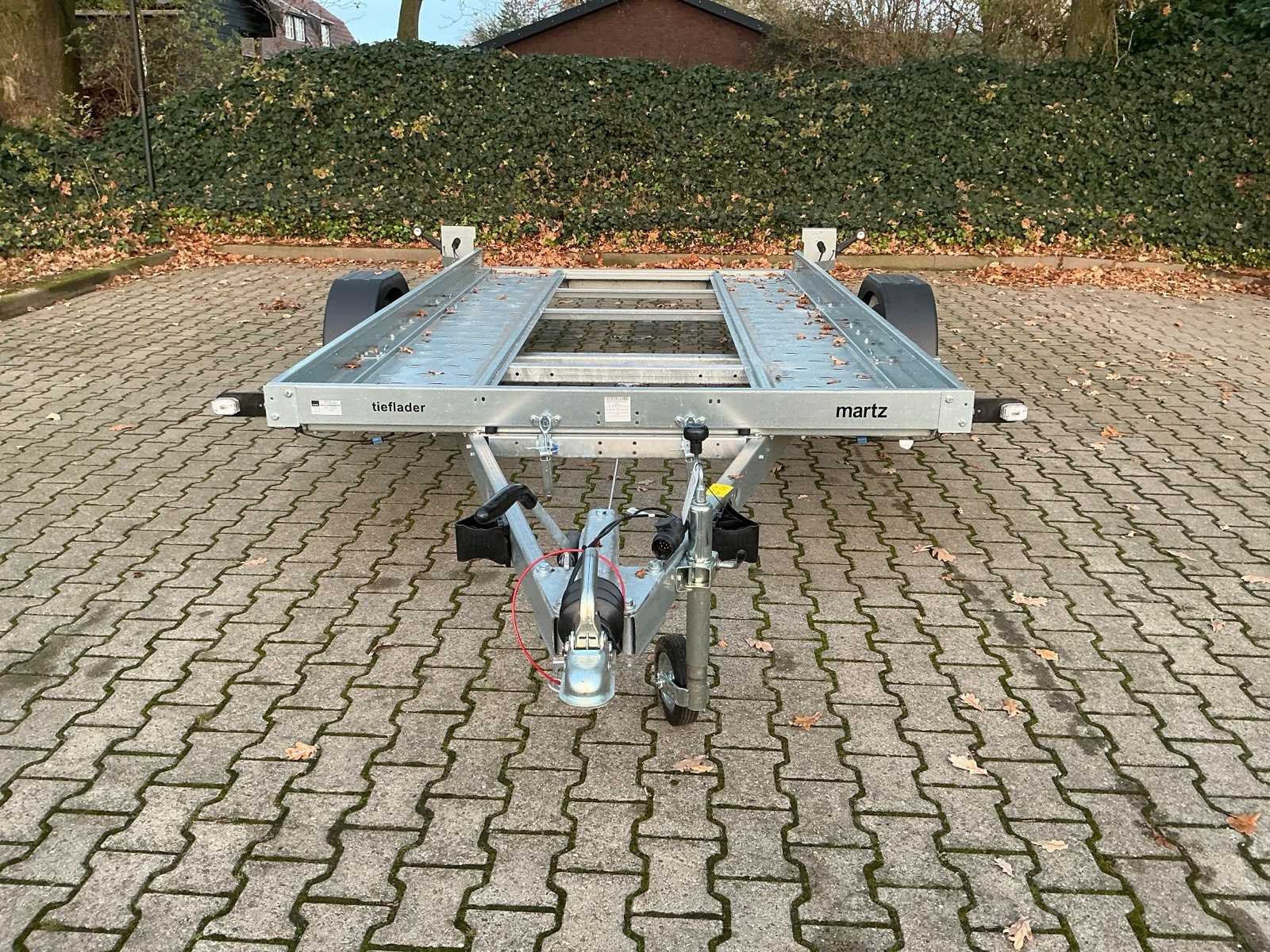 Merk: Martz Type: GT tieflader Bouwjaar: 2025 Chassisnummer: SXX1L23300H452576 Laadbak afmeting l: 353cm Laadbak afmeting b: 184cm Ledig gewicht: 346kg Laadvermogen: 1154kg Kenteken: 51-WNL-2 Lengte: 550cm Breedte: 247cm