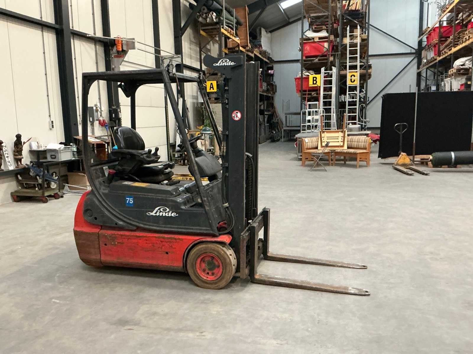 Werkverlichting Merk: Linde Type: E16C-02 Bouwjaar: 2001 Serienummer: H2X335M02351 Brandstof: Elektrisch Soort band: Volrubber banden Aantal wielen: 4 Afgelezen urenstand: 24965 Accu lader: true Side-shift: true Duplex mast: true Eigen gewicht: 3100kg Hefvermogen: 1600kg Lepellengte: 1000mm Hefhoogte: 3000mm Vol rubber banden: true Minimale doorrijhoogte: 2100mm Totale afmeting L: 3000mm Totale afmeting Breedte: 1100mm Totale afmeting Hoogte: 2100mm