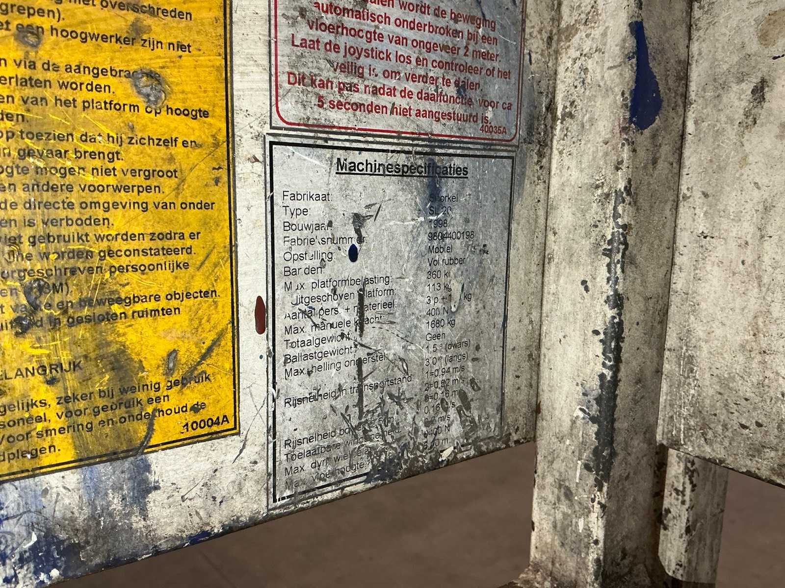 Merk: Snorkel Type: SL20 Bouwjaar: 1998 Elektrisch: true Schaarhoogwerker: true Werkhoogte: 7900mm Plateau afm. l: 2250mm Plateau afm. b: 650mm Platform capaciteit: 360kg Afgelezen urenstand: 957 Eigen gewicht: 1680kg Totale afmeting L: 2400mm Totale afmeting Breedte: 850mm Totale afmeting Hoogte: 2000mm