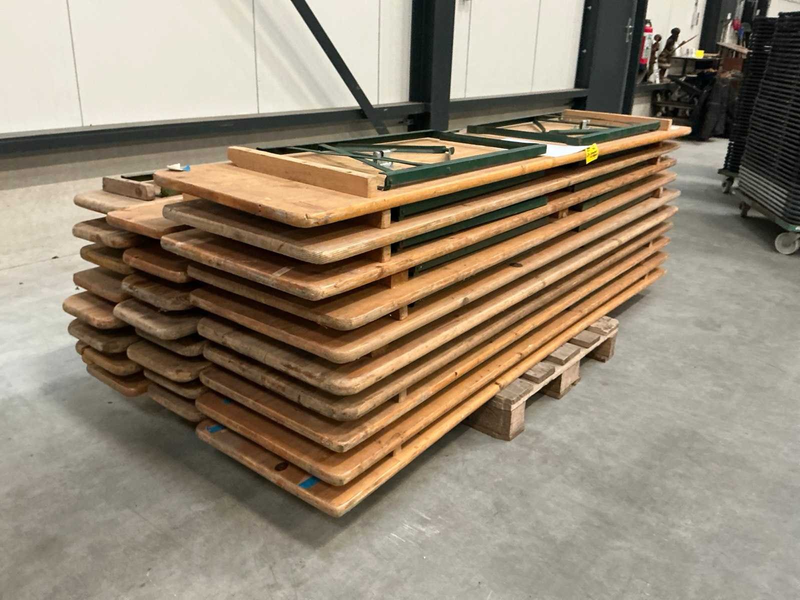 11x biertafel; 16x bank; inklapbaar Lengte: 220cm Breedte: 50cm