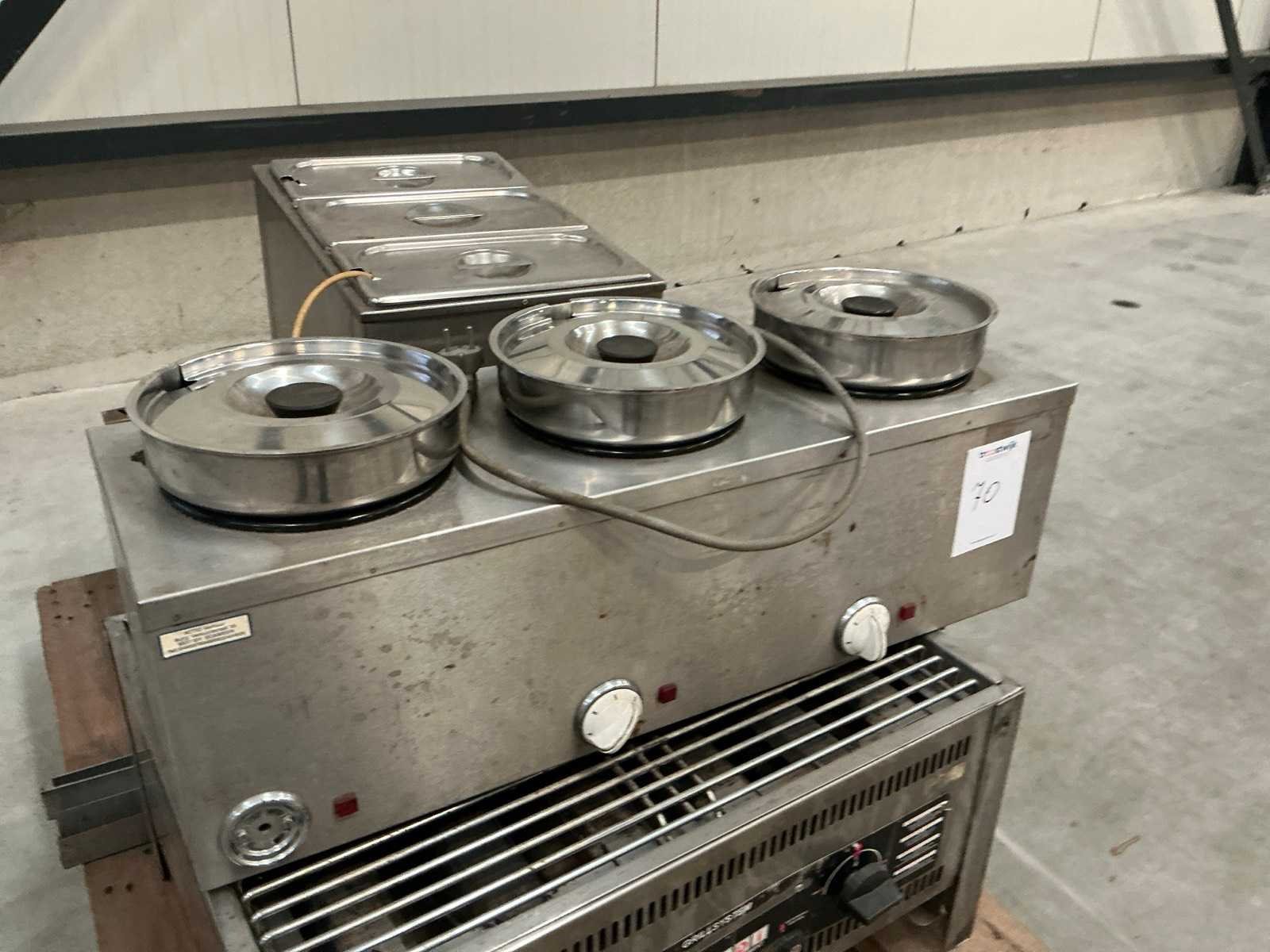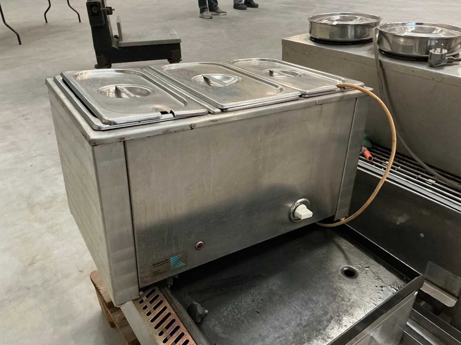 2x diverse au-bain-marie toestellen; 1x Hendi grillplaat (propaan); 1x bakplaat (propaan)