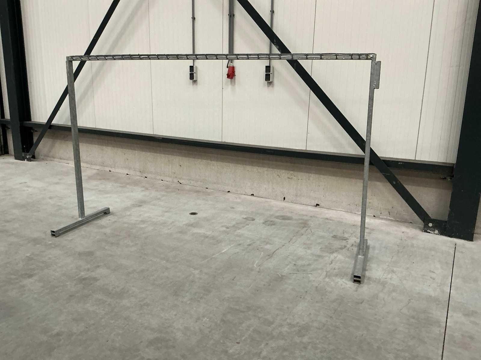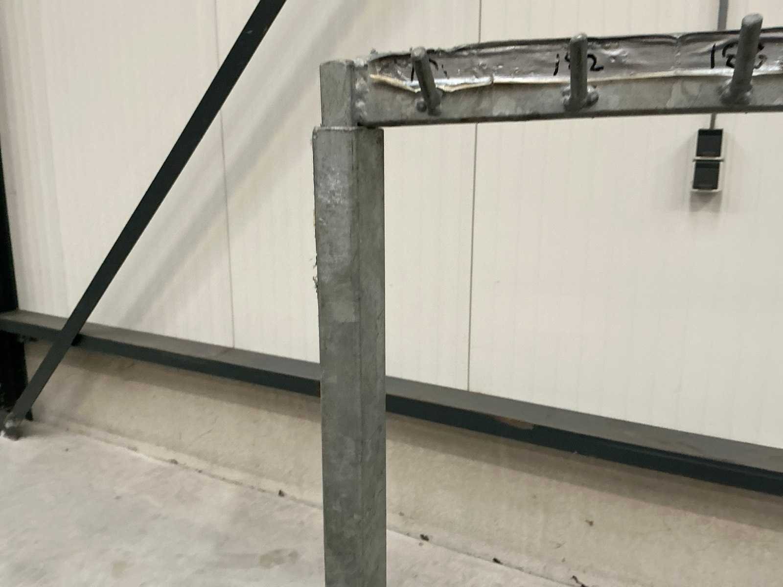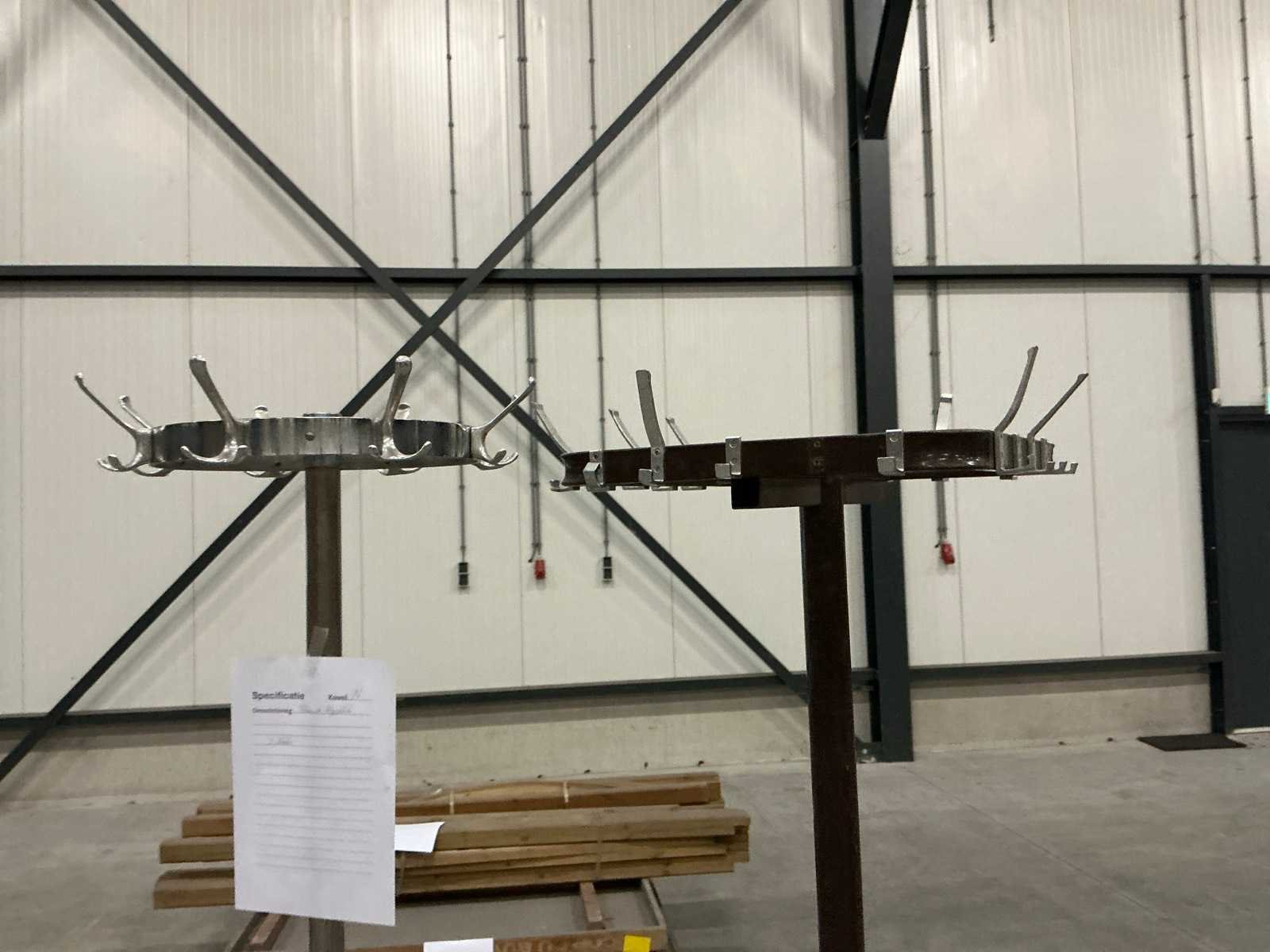 Kavel bestaande uit 10x enkele staander; 13x koppelbare (dubbele) staander; 13x ligger met 60 haken; 9x ligger met 50 haken; alsook 2x diverse kapstokken