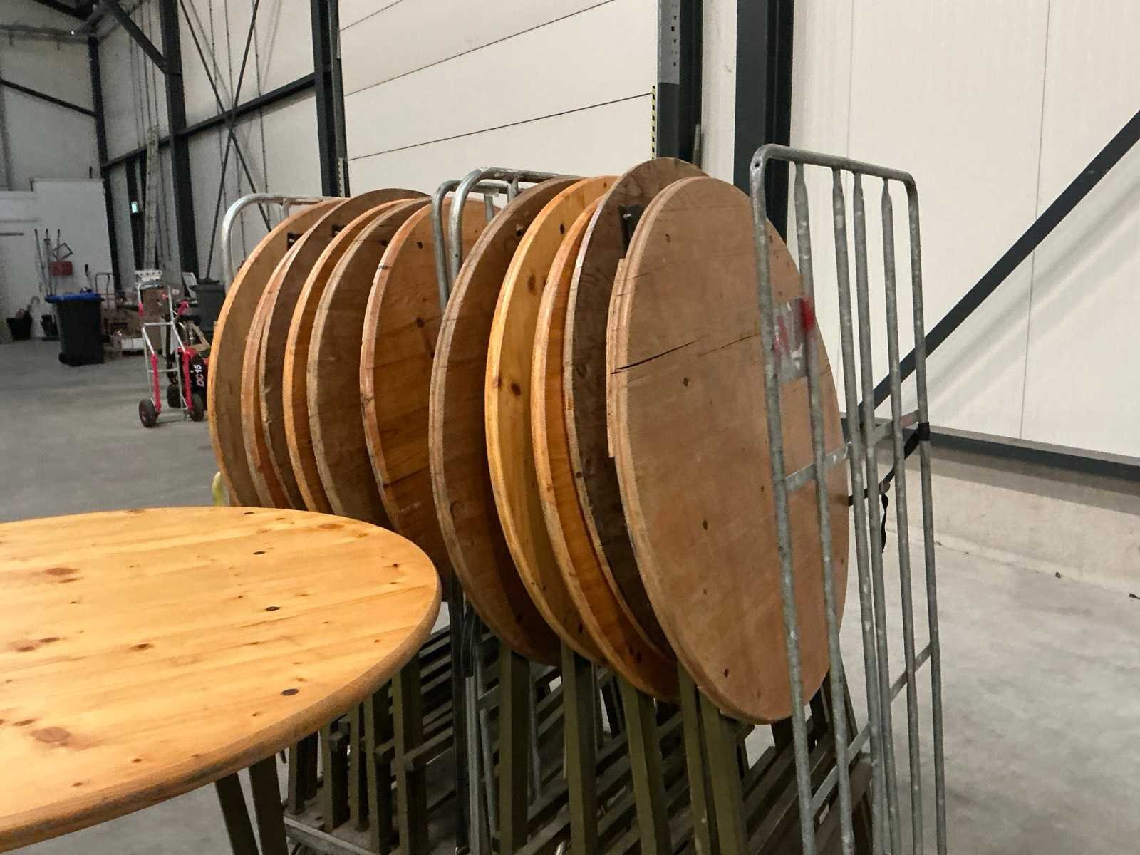Tafelblad ø 98 cm; houten blad; stalen onderstel; met 2x rolcontainer Hoogte: 105cm