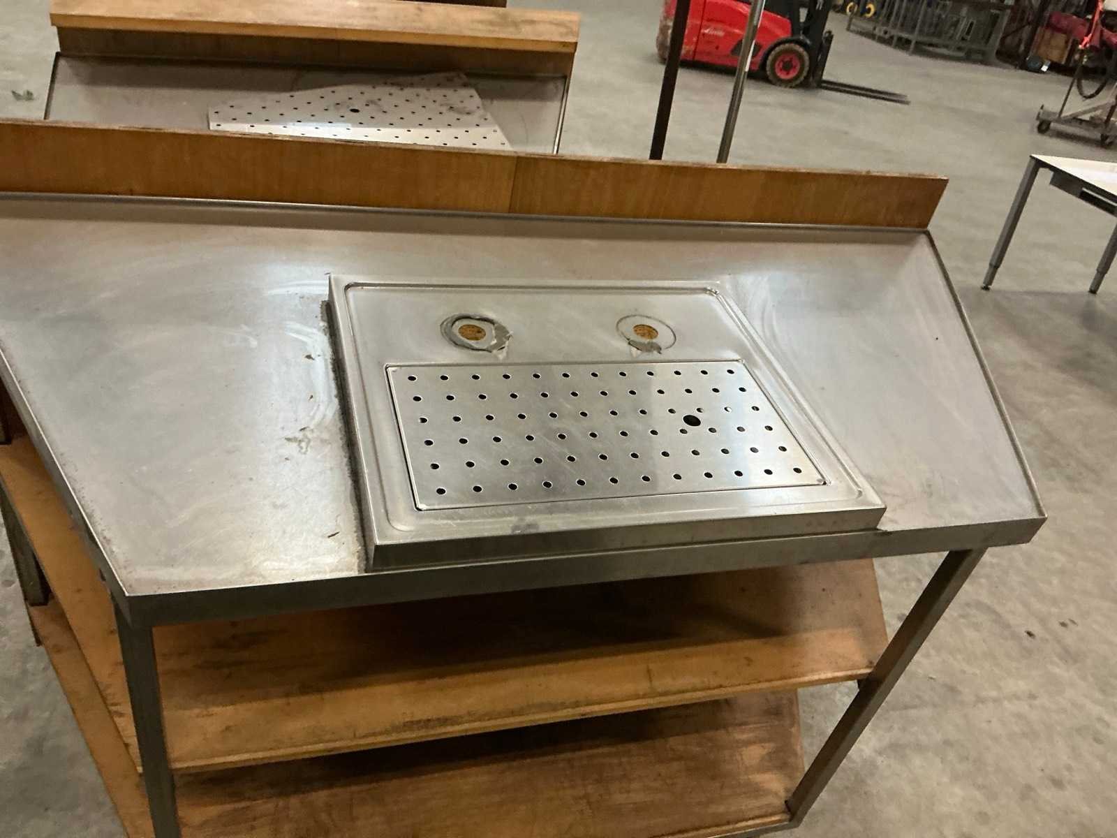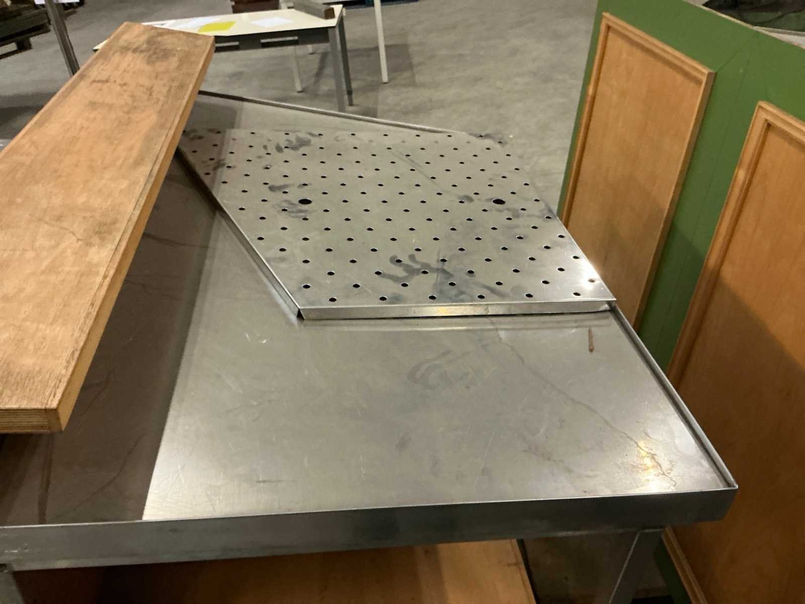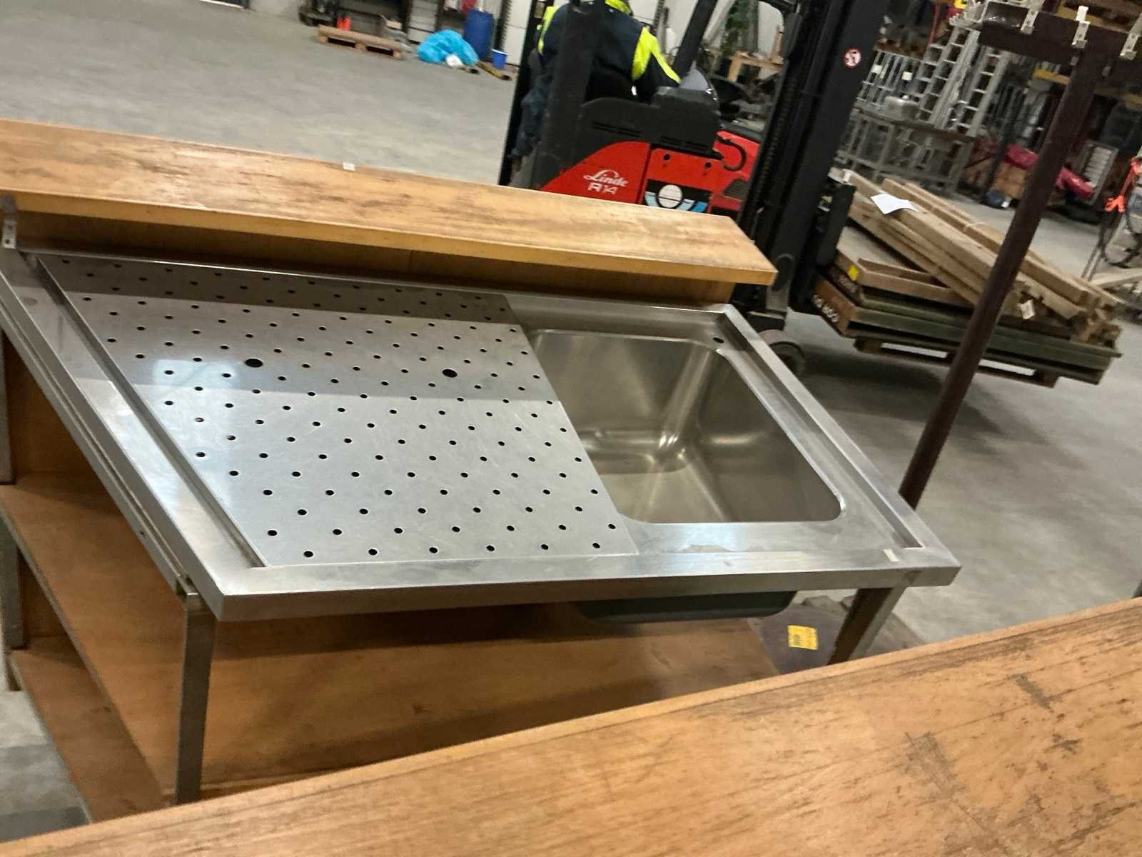 Verrijdbaar; 3-delig; 1x spoelbak; 1x rvs druiprek voorzien van 2x doorvoer voor tapkraan; zonder tapkraan Totale afmeting L: 430cm Totale afmeting Hoogte: 120cm Hout: true Rvs: true