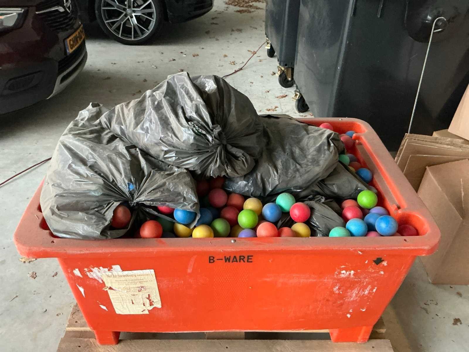 Met partij ballen in kunststof krat; Binnendiameter 210 cm; met blower Model: Verjaardagstaart Breedte: 370cm Hoogte: 300cm