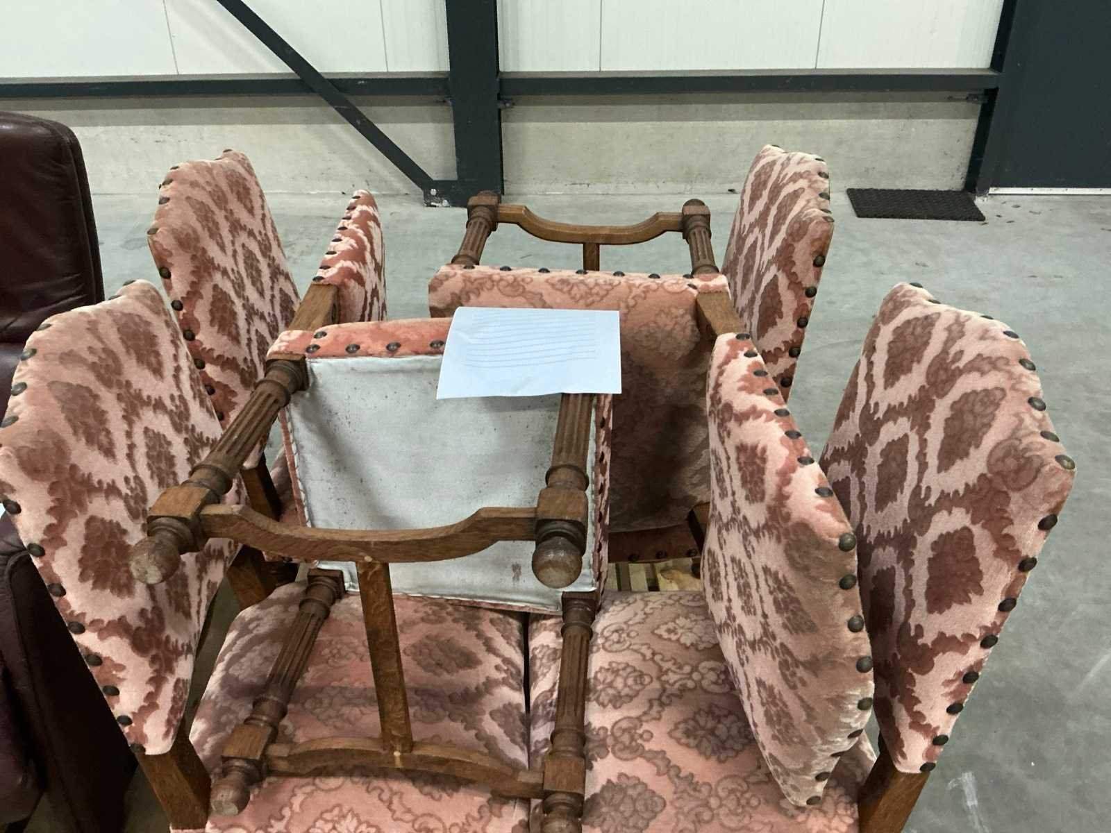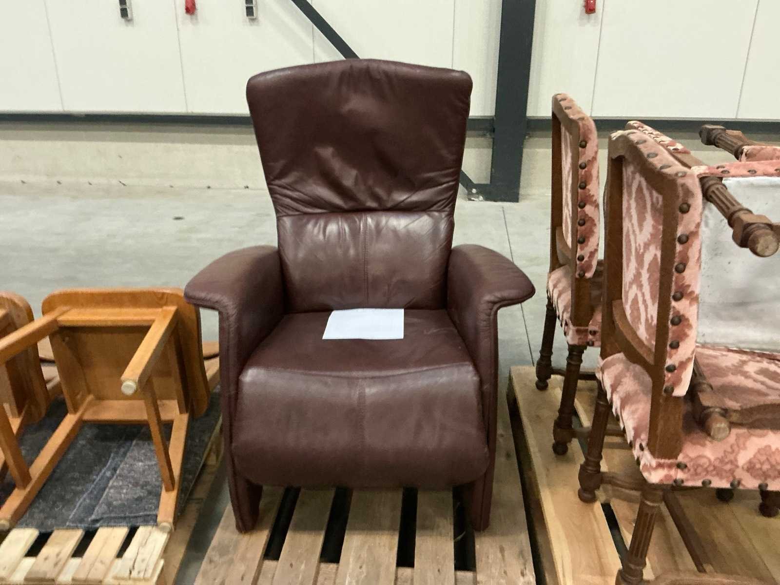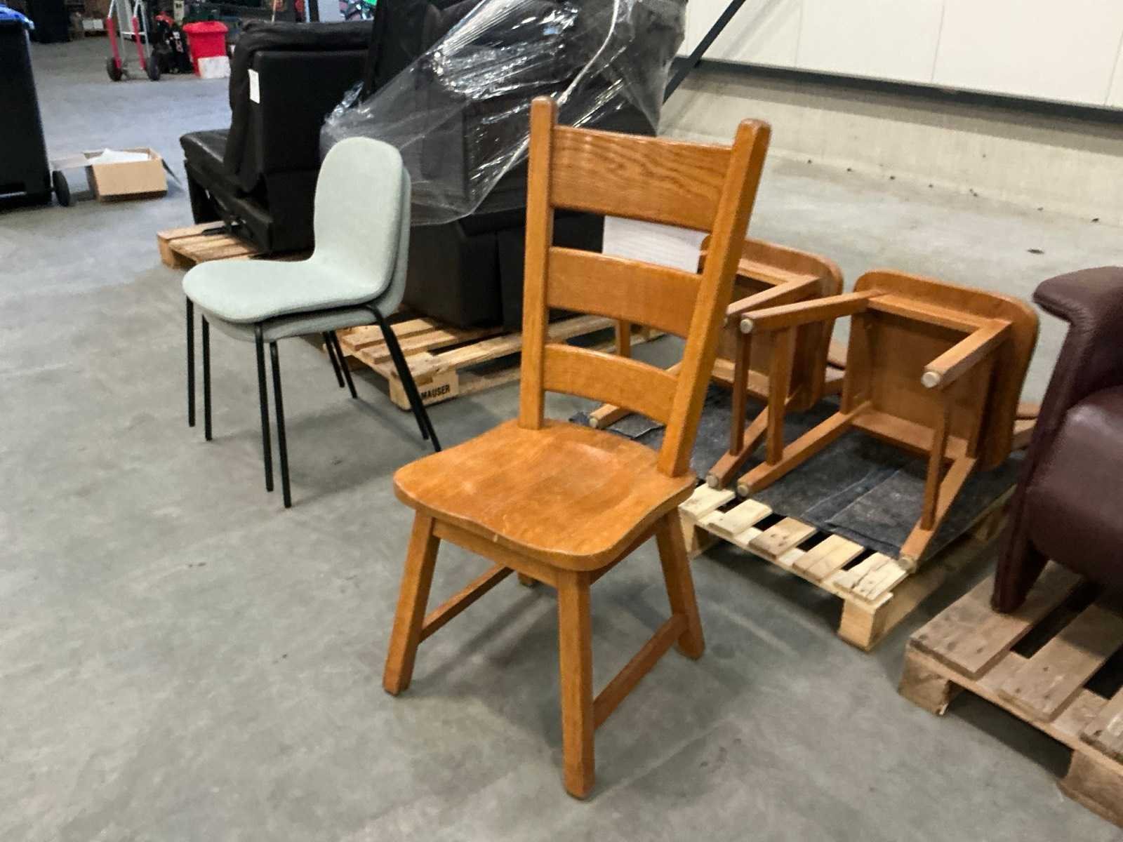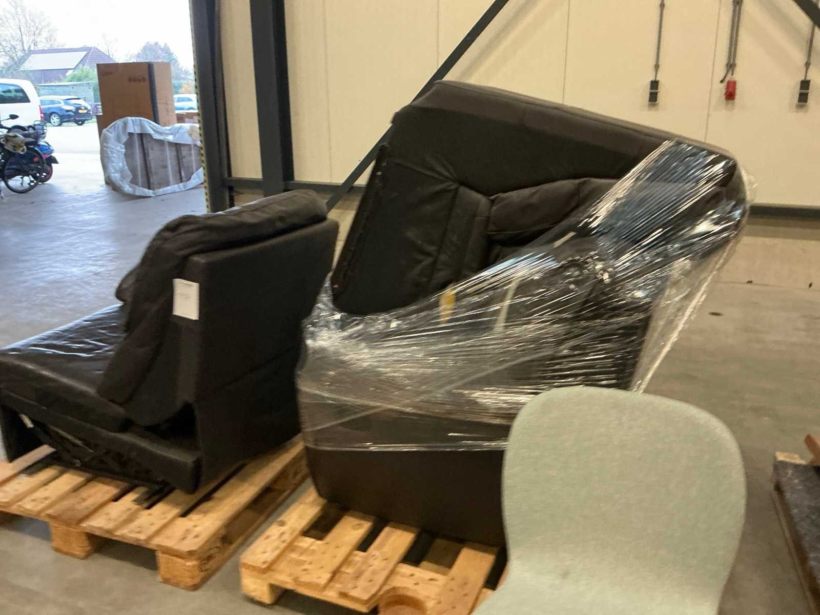 Bestaande uit 6x vintage stoel waarvan 1x beschadigde rugleuning; stofbekleed; 1x lederen relaxstoel; 3x houten eetkamerstoel; 2x stofbeklede stoel; 1x lederen 3-persoons zitbank