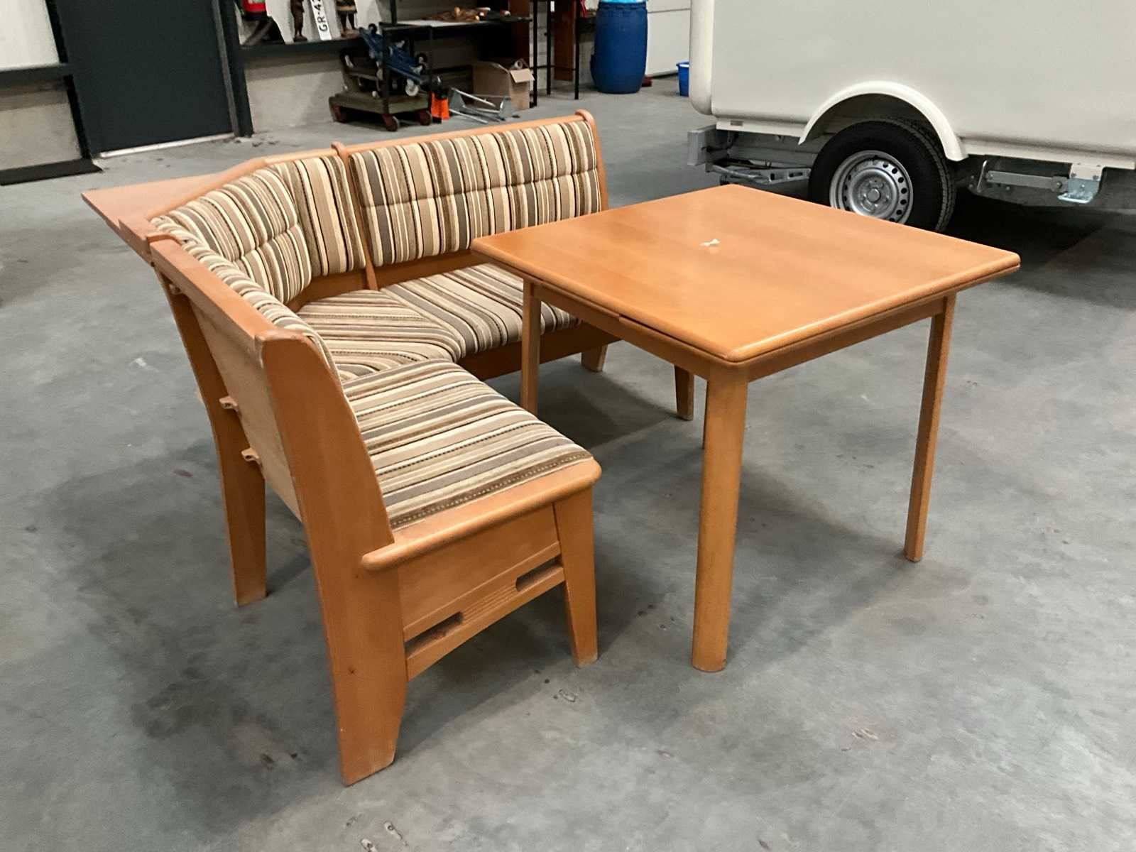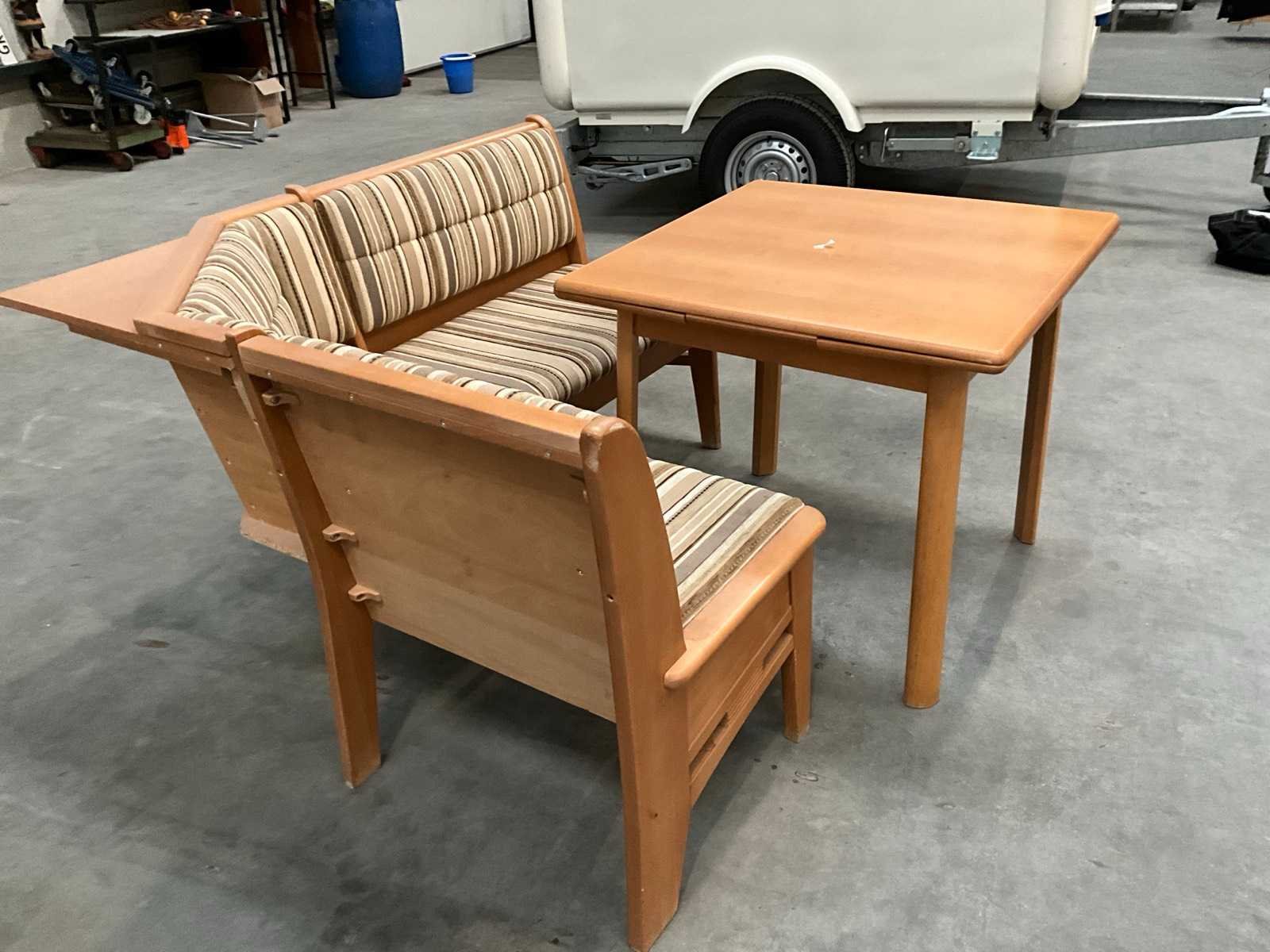Bank 1270x1470 mm, tafel 800x800 mm (uitschuifbaar tot 1400 mm)