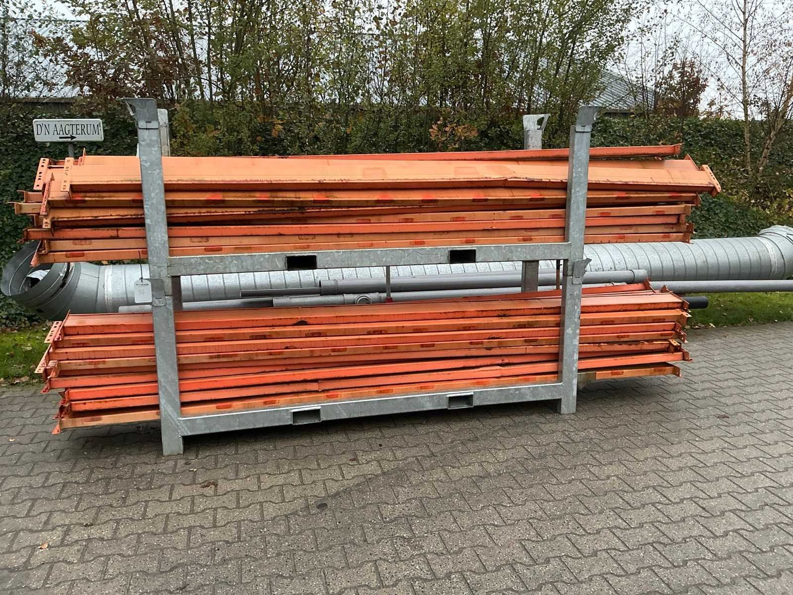 Voorzien van ca. 80 legroosters 110x90 cmReeds gedemonteerd Sectie afm. b: 3600mm Sectie diepte: 1100mm Aantal staanders: 6 Aantal liggers: 37