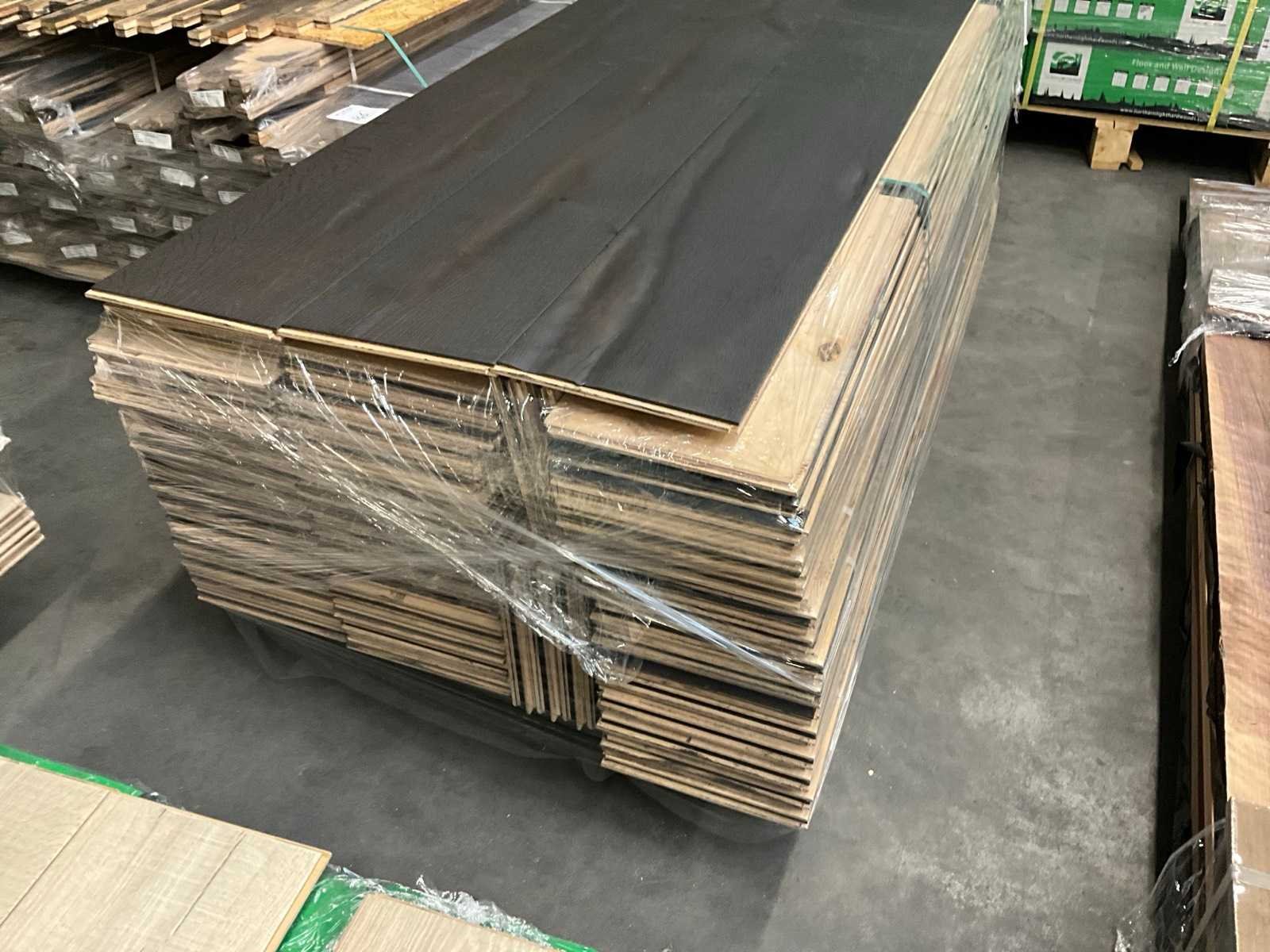 Dikte*breedte*lengte: 15 x 220 x 2200mm. Product type: Multiplank Europees Eiken Antiek Oppervlakte: 47m² Afwerking: Geborsteld + Gerookt + MC Charcoal ( zwart geolied) Gewicht: 750kg Lengte: 2200mm Breedte: 900mm Hoogte: 600mm
